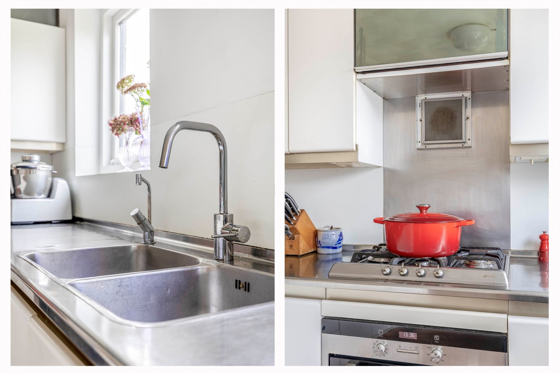 De keuken bevindt zich aan de achterzijde van de woning en is voorzien van diverse inbouwapparatuur. Hoewel functioneel, biedt deze ruimte de mogelijkheid om te moderniseren en naar eigen smaak aan te passen.
