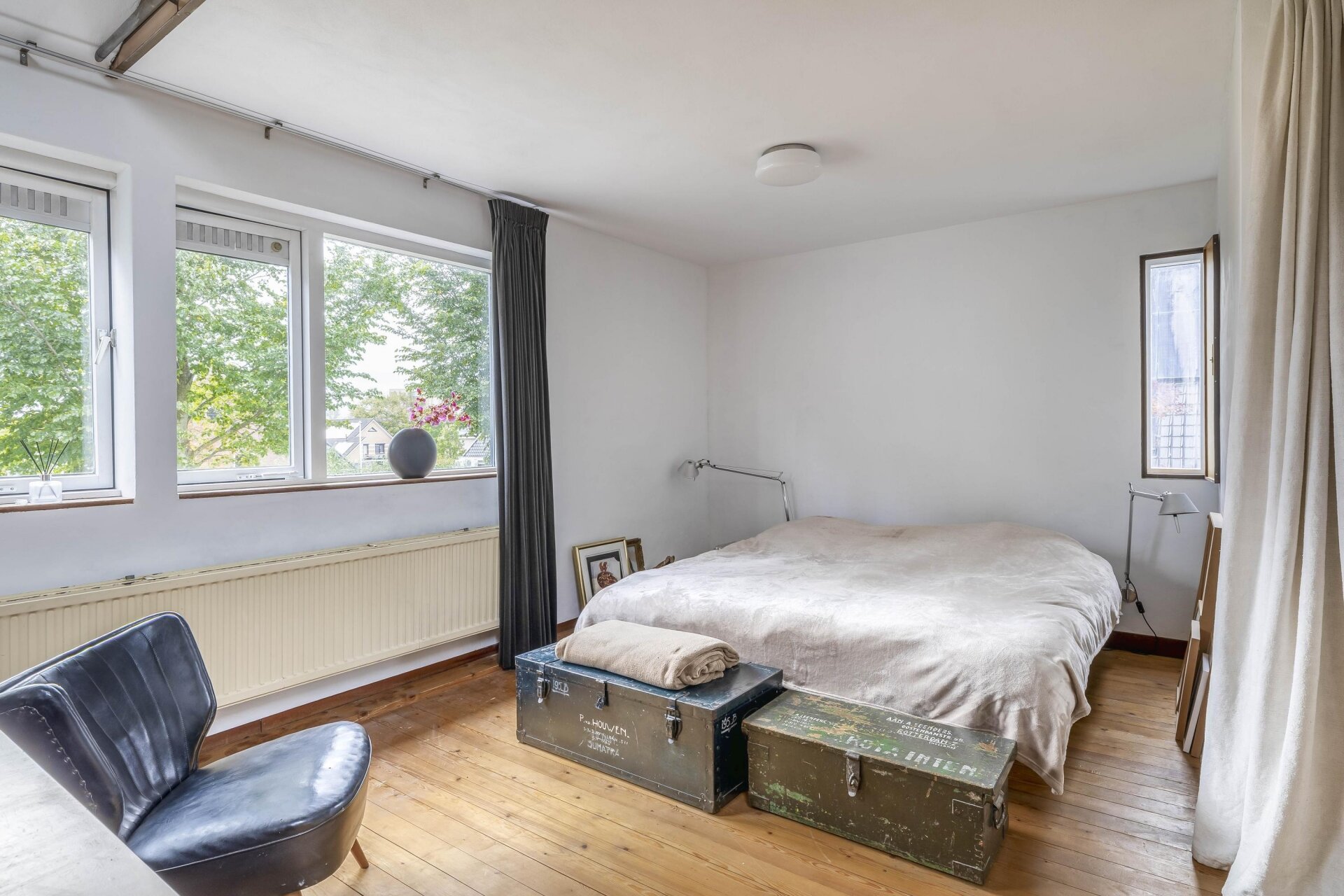 Op de eerste verdieping bevinden zich drie slaapkamers, elk met een prettige afmeting en veel lichtinval. De master bedroom beschikt over extra kastruimte én een vliering, ideaal als extra berging.