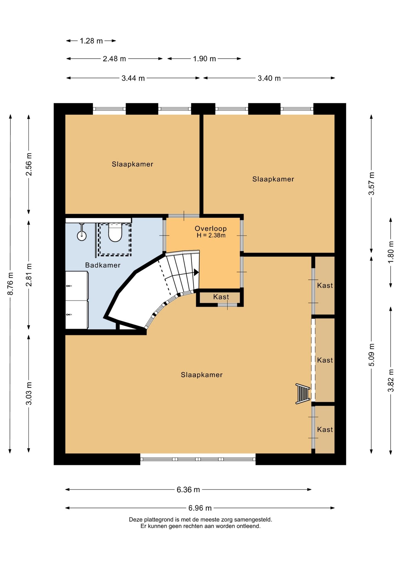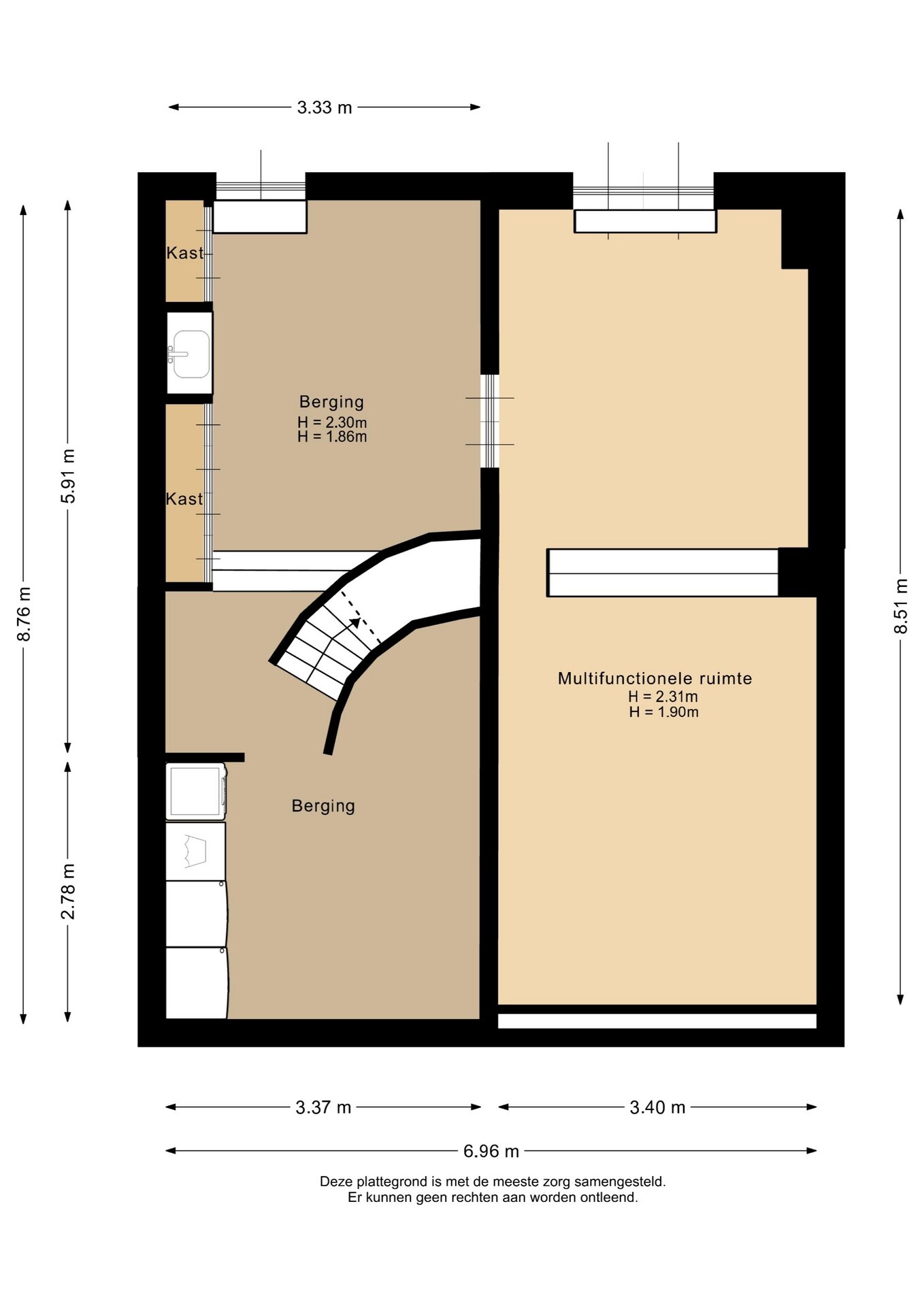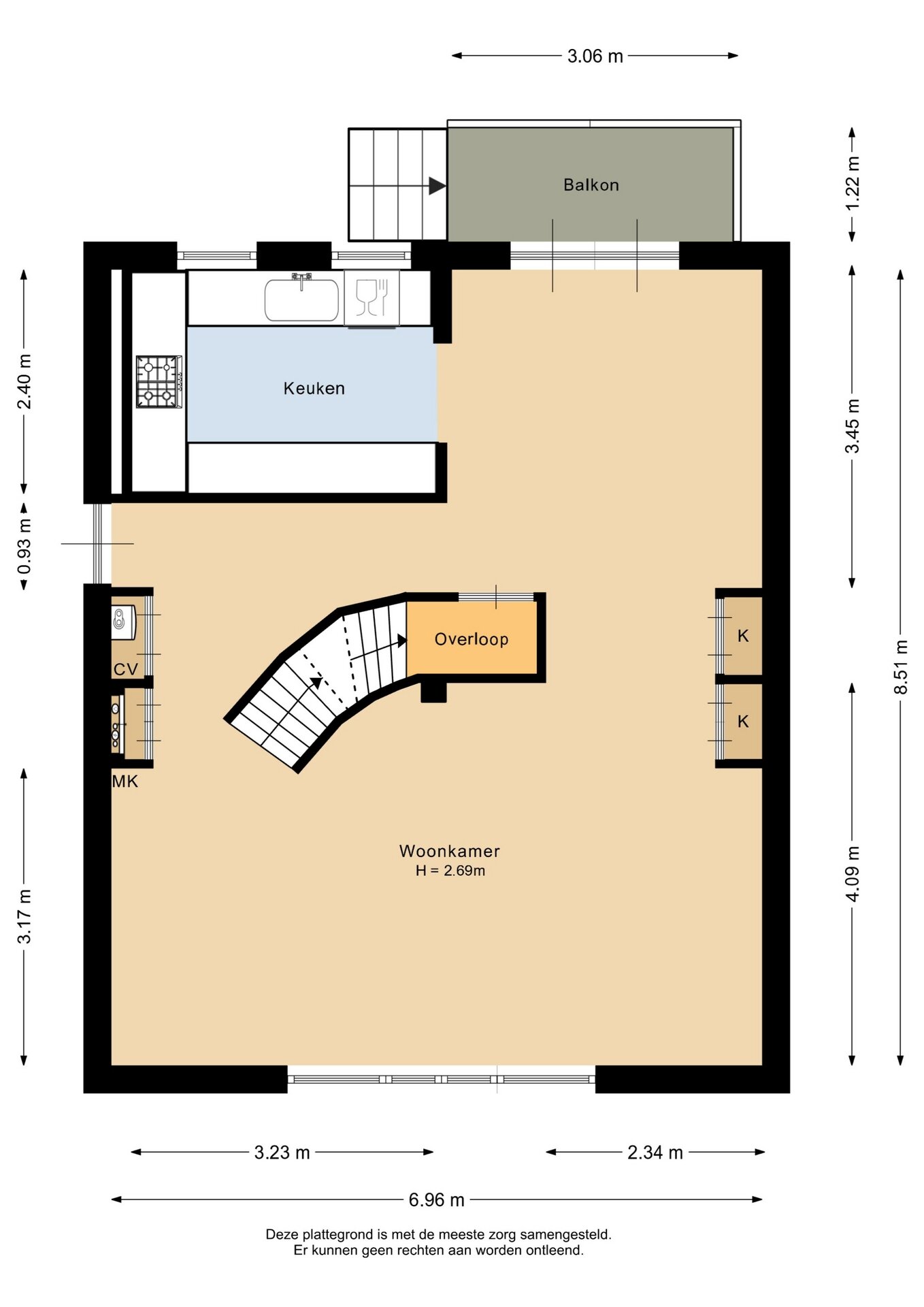 “Deze informatie is door ons met de nodige zorgvuldigheid samengesteld. Onzerzijds wordt echter geen enkele aansprakelijkheid aanvaard voor enige onvolledigheid, onjuistheid of anderszins, dan wel de gevolgen daarvan. Alle opgegeven maten en oppervlakten zijn indicatief.”