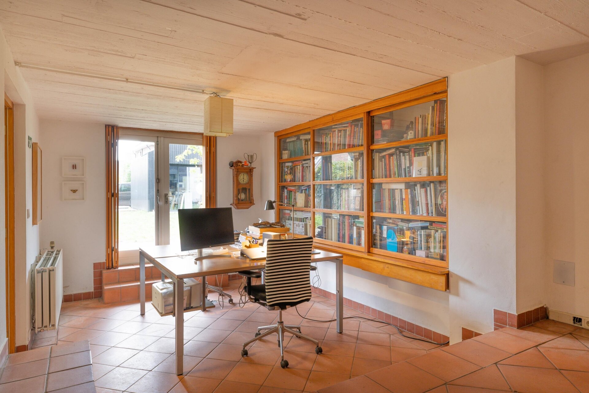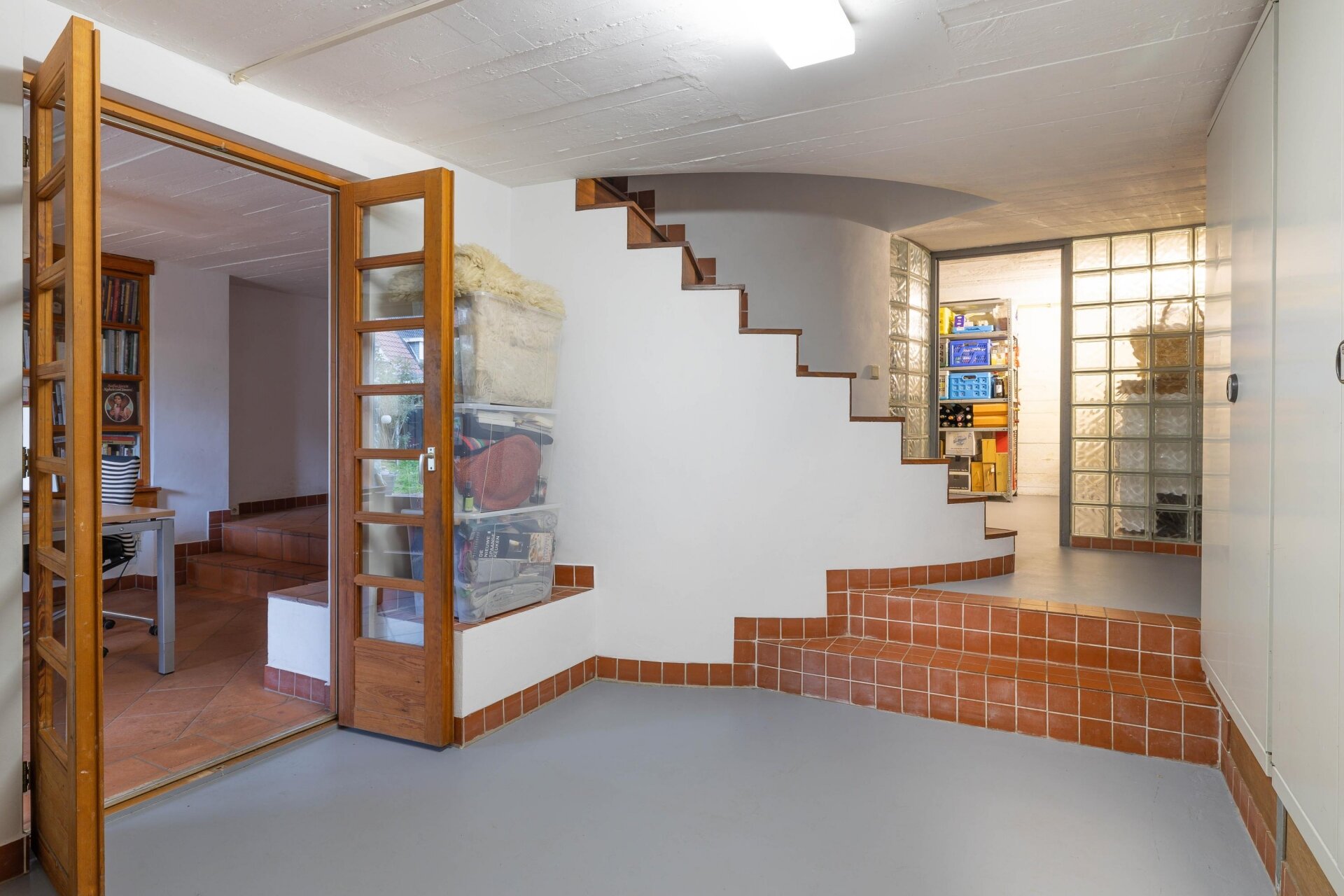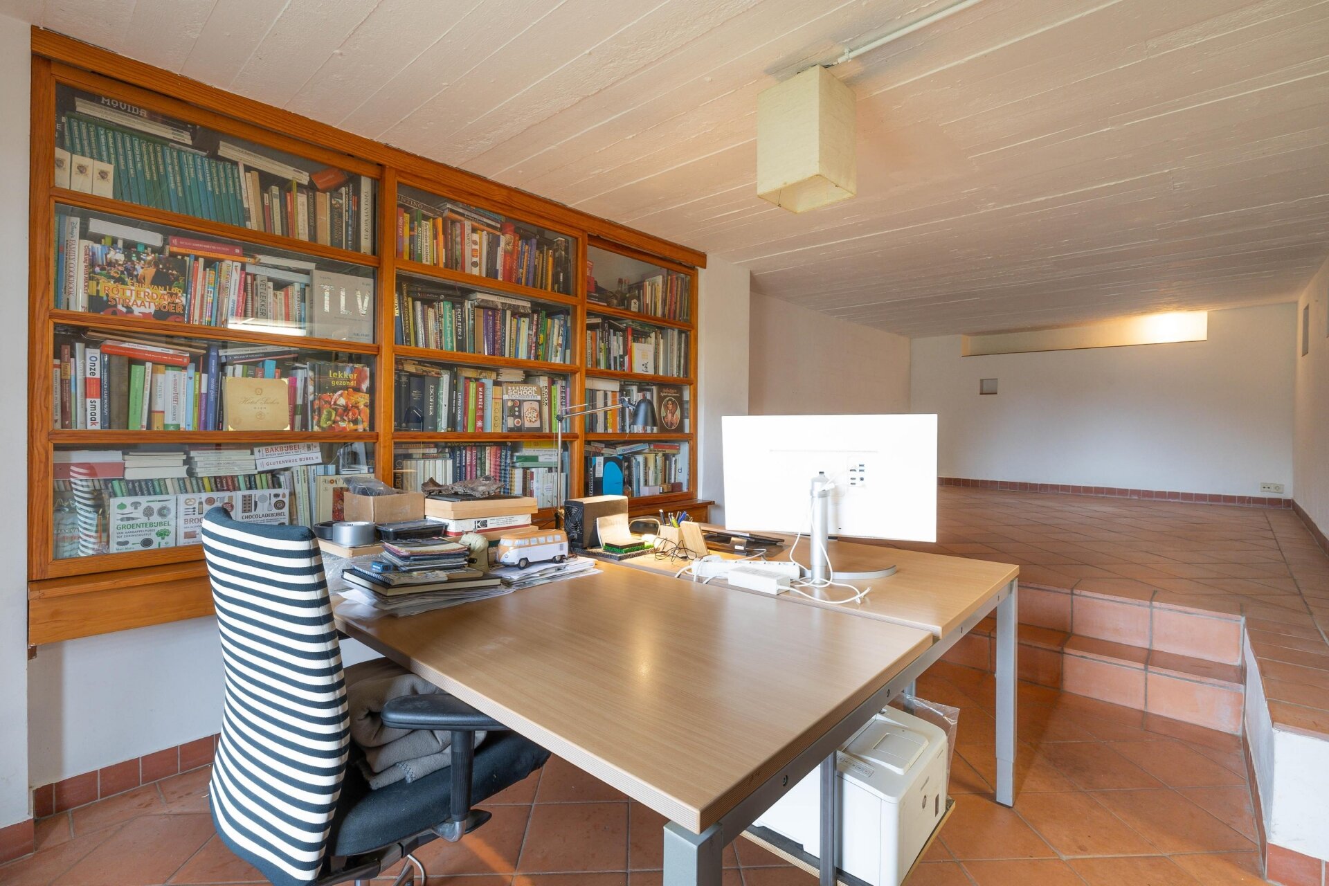 In het souterrain bevindt zich een royale multifunctionele ruimte die zich uitstekend leent voor verschillende doeleinden: een kantoor of praktijk aan huis, een hobby- of muziekruimte, of bijvoorbeeld een atelier. Dankzij de raampartijen aan de tuinzijde is er prettig daglicht aanwezig, wat dit een volwaardige leefruimte maakt.