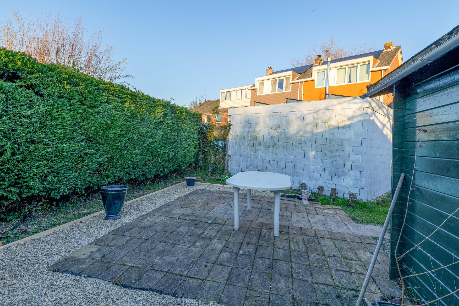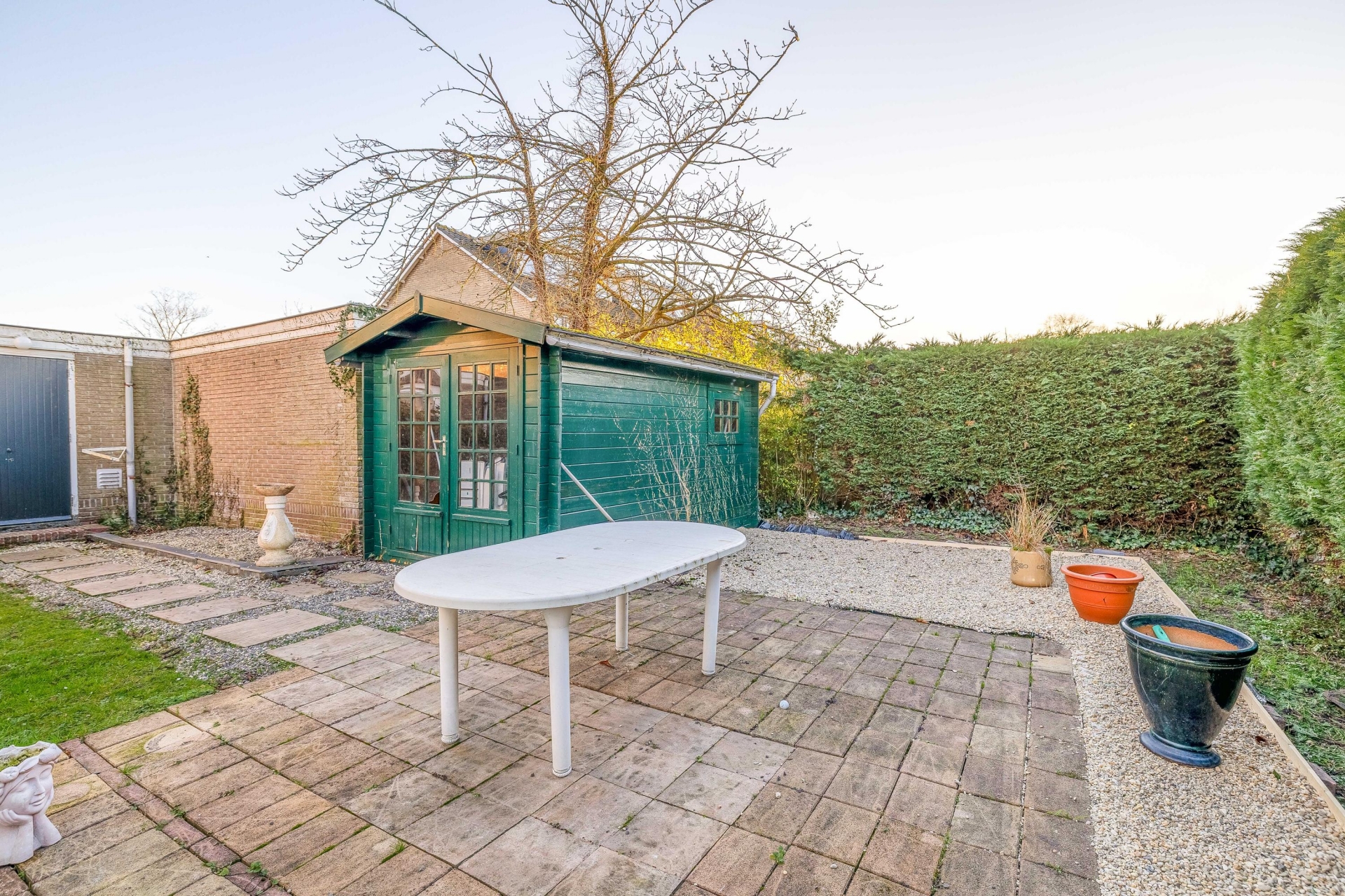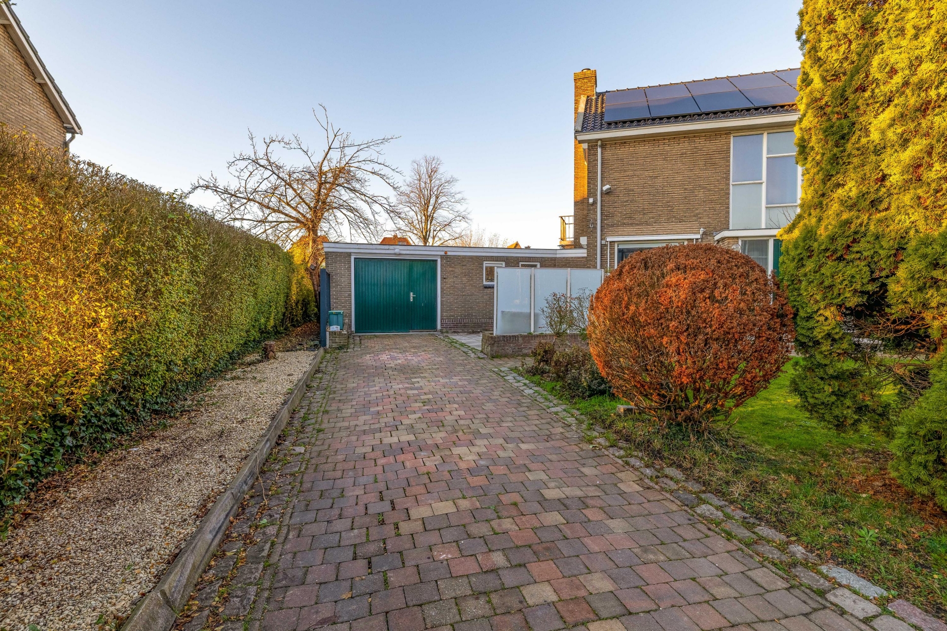Wat dit huis écht uniek maakt, is de tuin rondom. De achtertuin is gelegen op het noordwesten, waardoor je vooral in de middag en avond kunt genieten van de zon. Er is voldoende ruimte om meerdere zitplekken te creëren of om lekker te tuinieren. Aan de voorzijde beschikt de woning over een eigen oprit met plek voor zeker drie auto’s, en daarnaast is er een vrijstaande garage aanwezig. Ideaal voor het stallen van fietsen, opslag of het klussen aan huis. De tuin aan de zijkant geeft bovendien een vrij gevoel en biedt veel privacy.