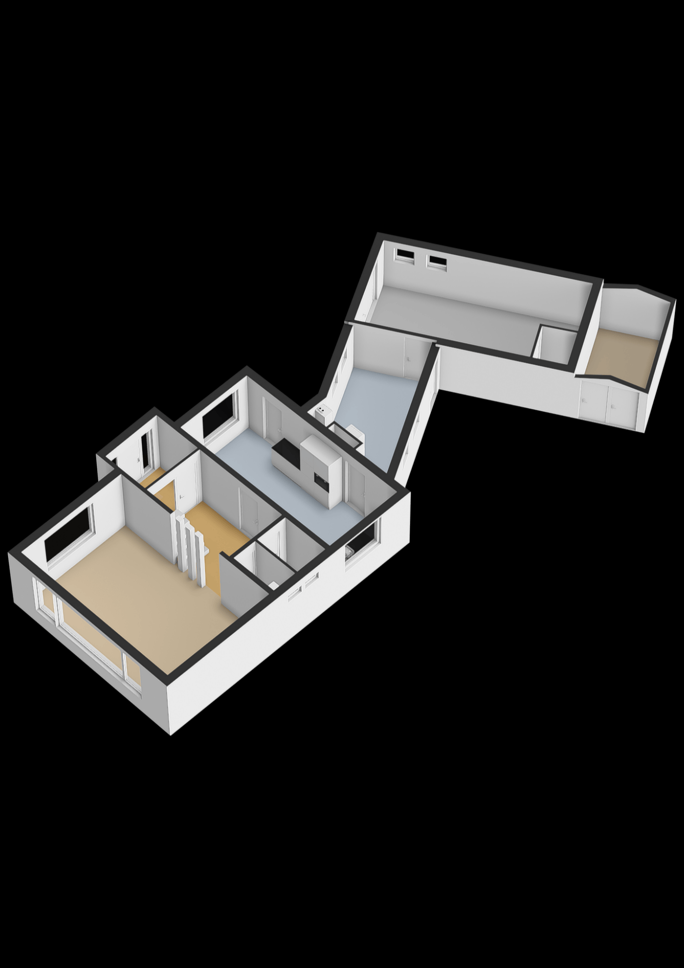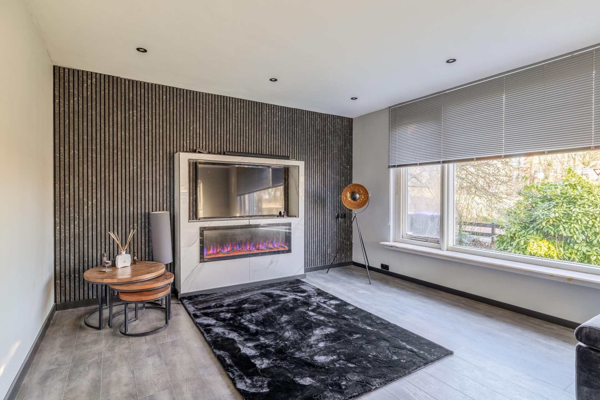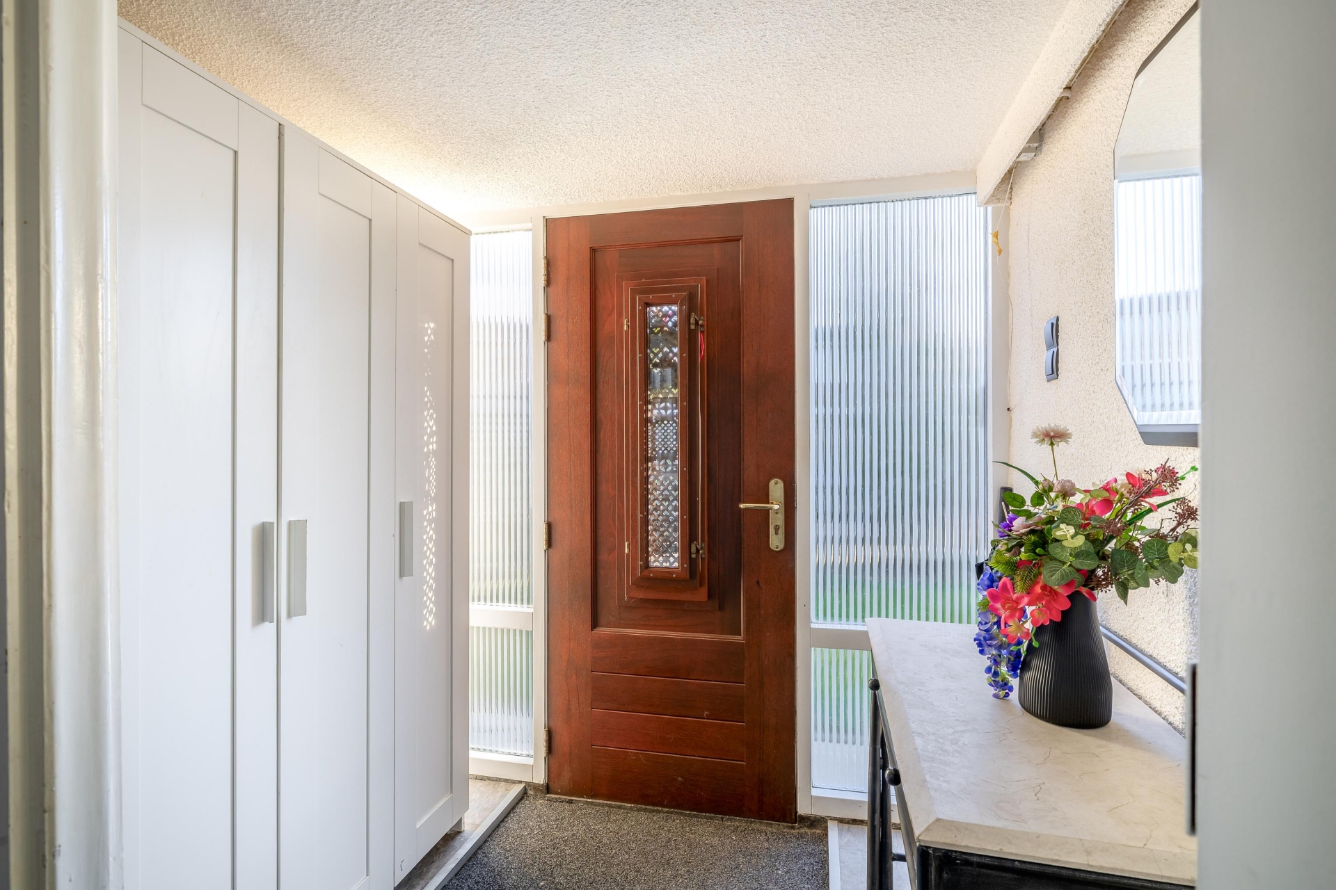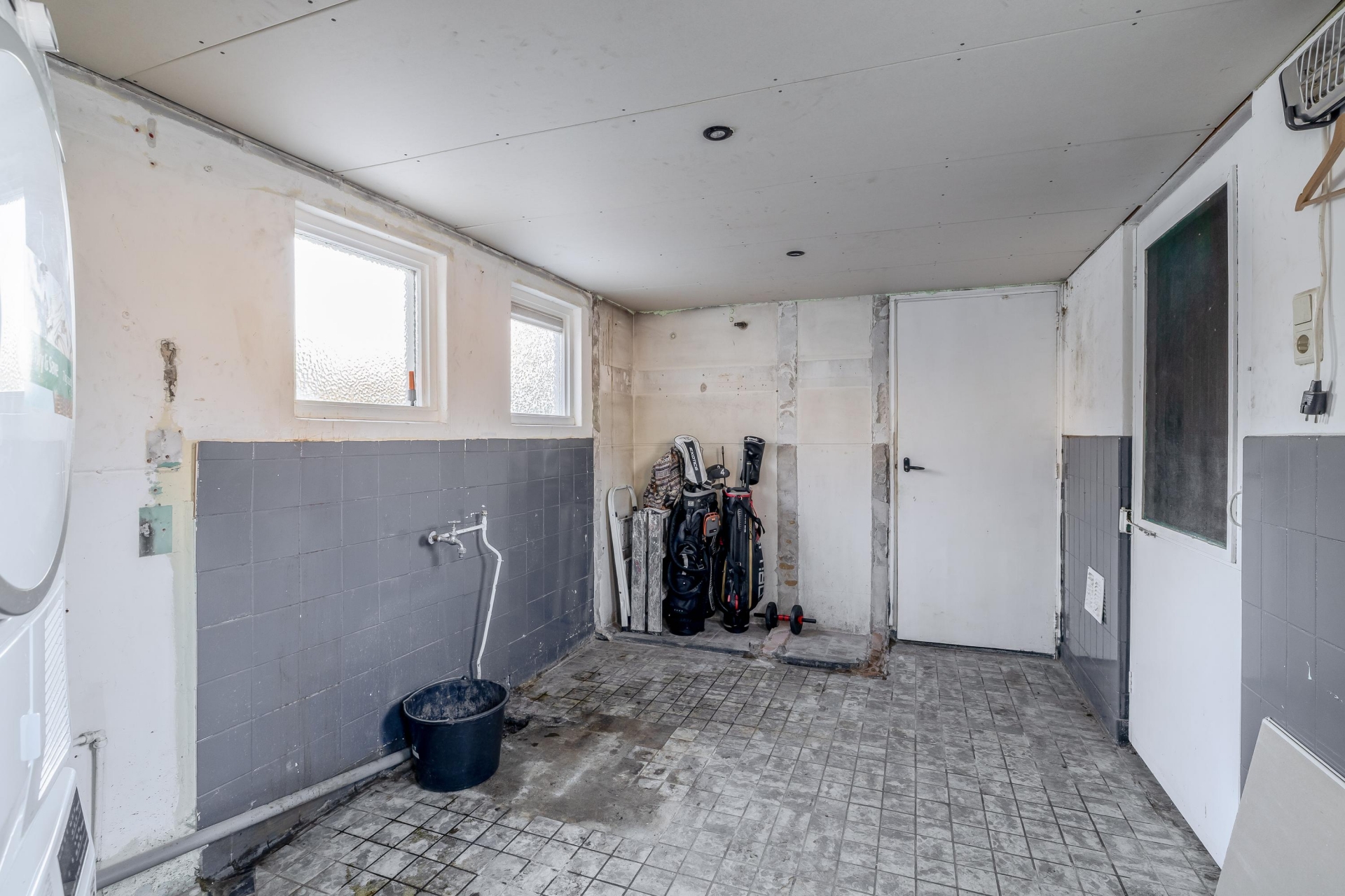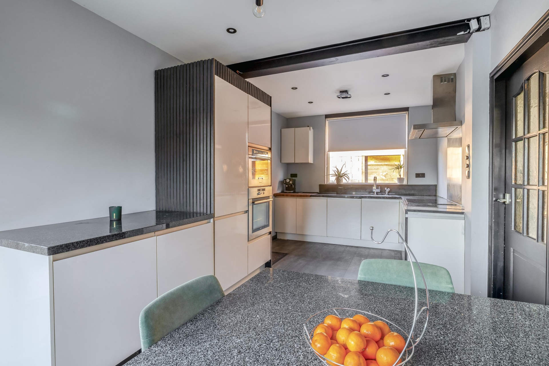 Bij binnenkomst valt meteen op hoe ruim en licht de woonkamer is. Dankzij de grote raampartijen aan twee zijden geniet je hier de hele dag van natuurlijk licht. Er is meer dan genoeg plek voor een royale zithoek en een flinke eettafel. De vloer is neutraal uitgevoerd en de wanden zijn strak afgewerkt, dus je kunt hier vrij snel je eigen stijl doorvoeren. Vanuit de woonkamer kijk je uit over de groene tuin rondom het huis – een fijne plek om tot rust te komen. Via de hal bereik je de gesloten keuken, die praktisch is ingedeeld en voorzien is van diverse inbouwapparatuur. De keuken biedt zicht op de achtertuin en directe toegang tot buiten, wat het praktisch maakt voor wie graag buiten eet of tuiniert.
