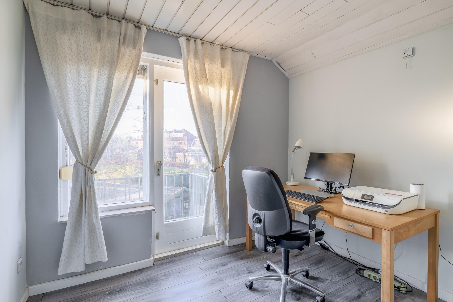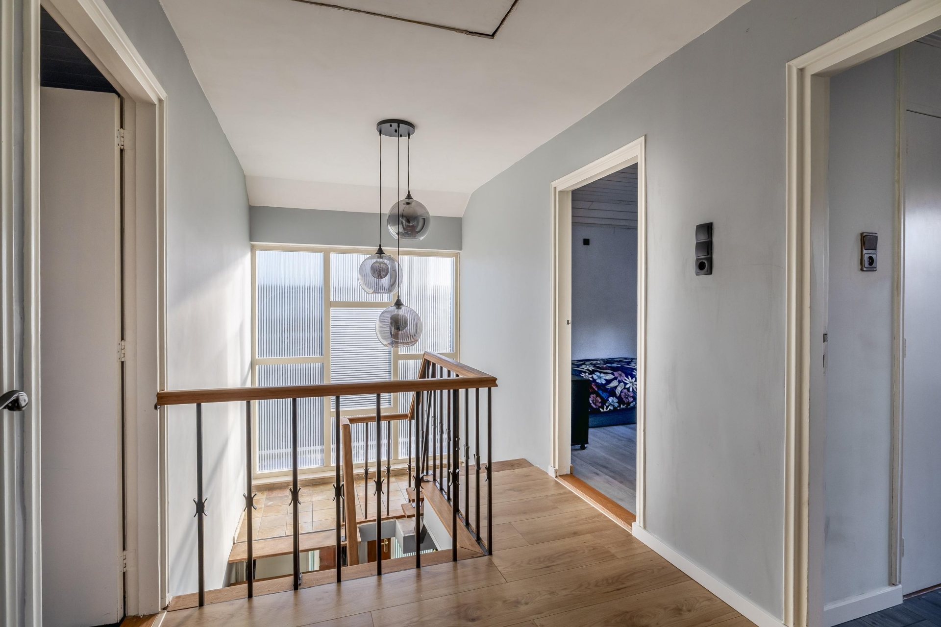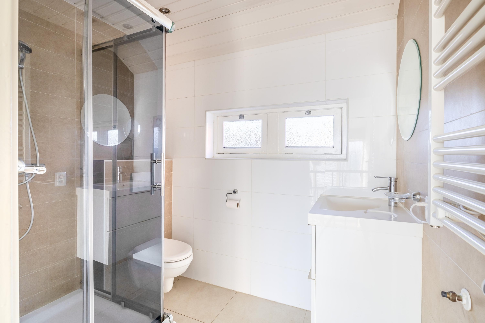 Op de eerste verdieping vind je in totaal vier slaapkamers, verdeeld over twee ruime hoofdslaapkamer en twee kleinere kamers. Ook hier valt weer op hoeveel licht er naar binnen komt. De kamers zijn functioneel en naar wens in te richten als kinderkamer, werkkamer of logeerkamer. De badkamer is in lichte kleurstelling uitgevoerd, met een moderne douche, hangend toilet, wastafelmeubel en designradiator. Dankzij het raam kun je hier goed ventileren en profiteer je van daglicht.