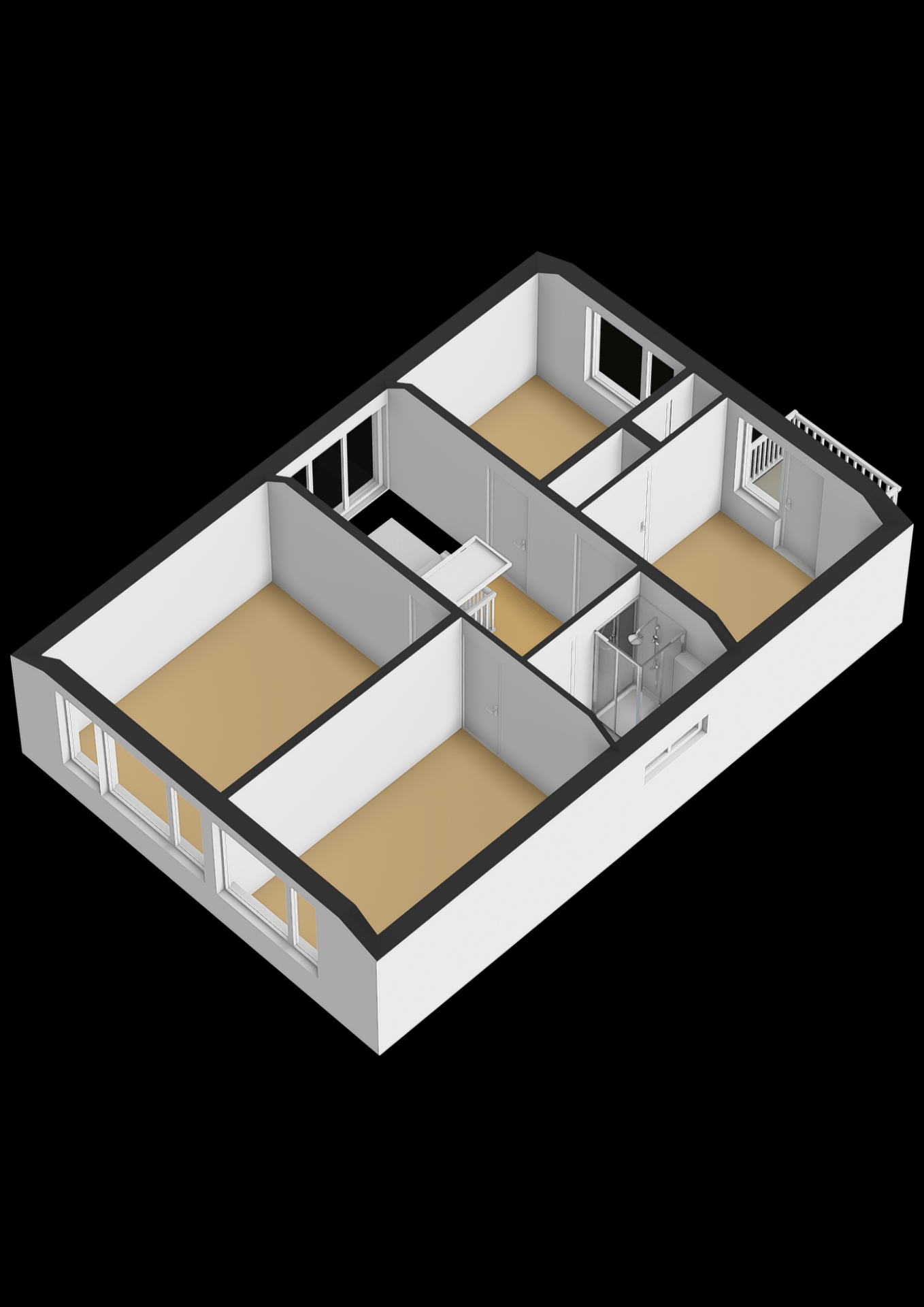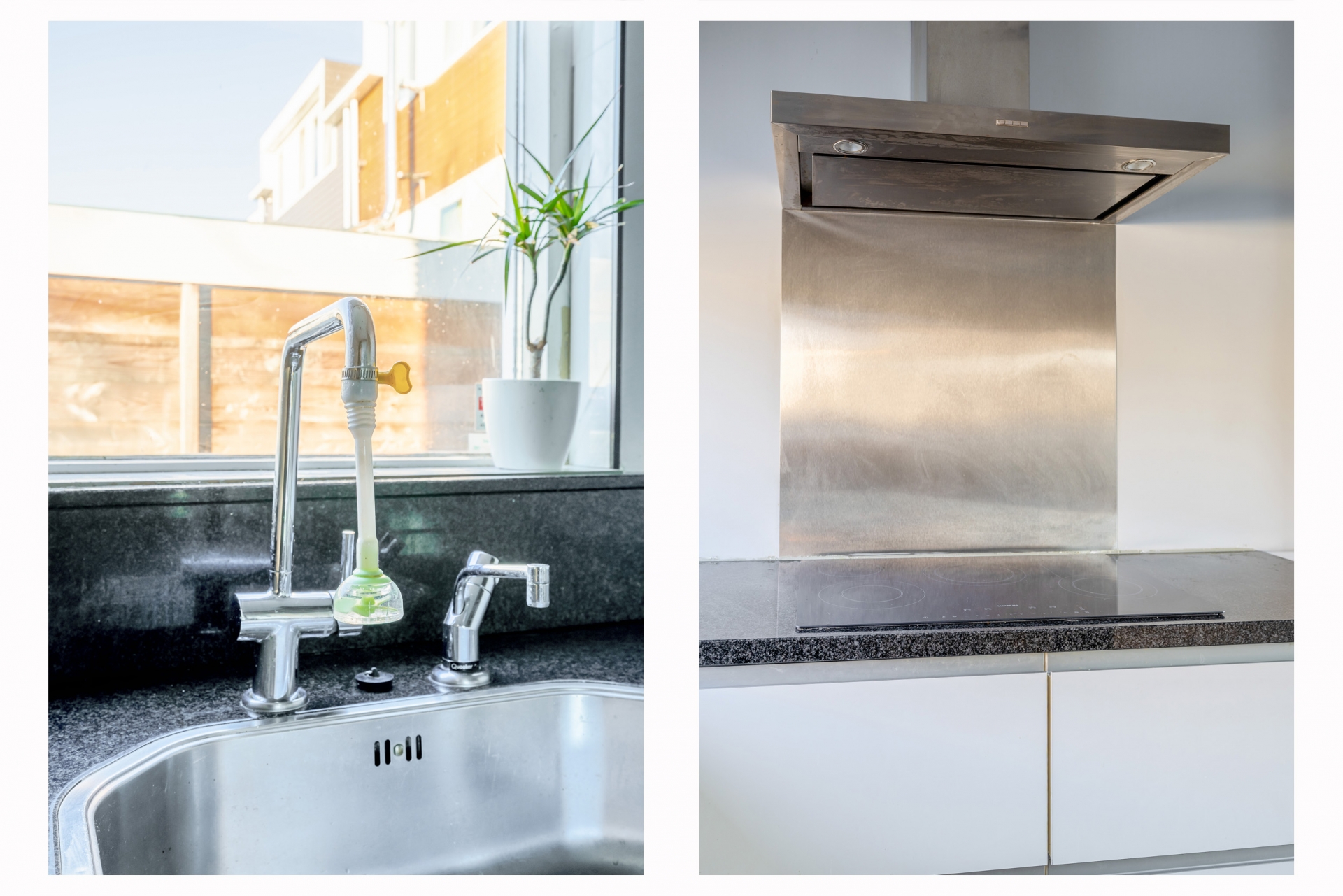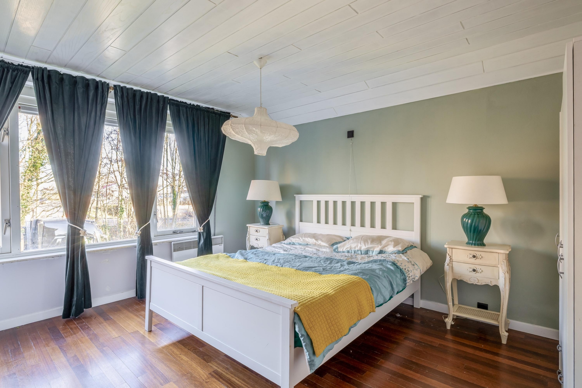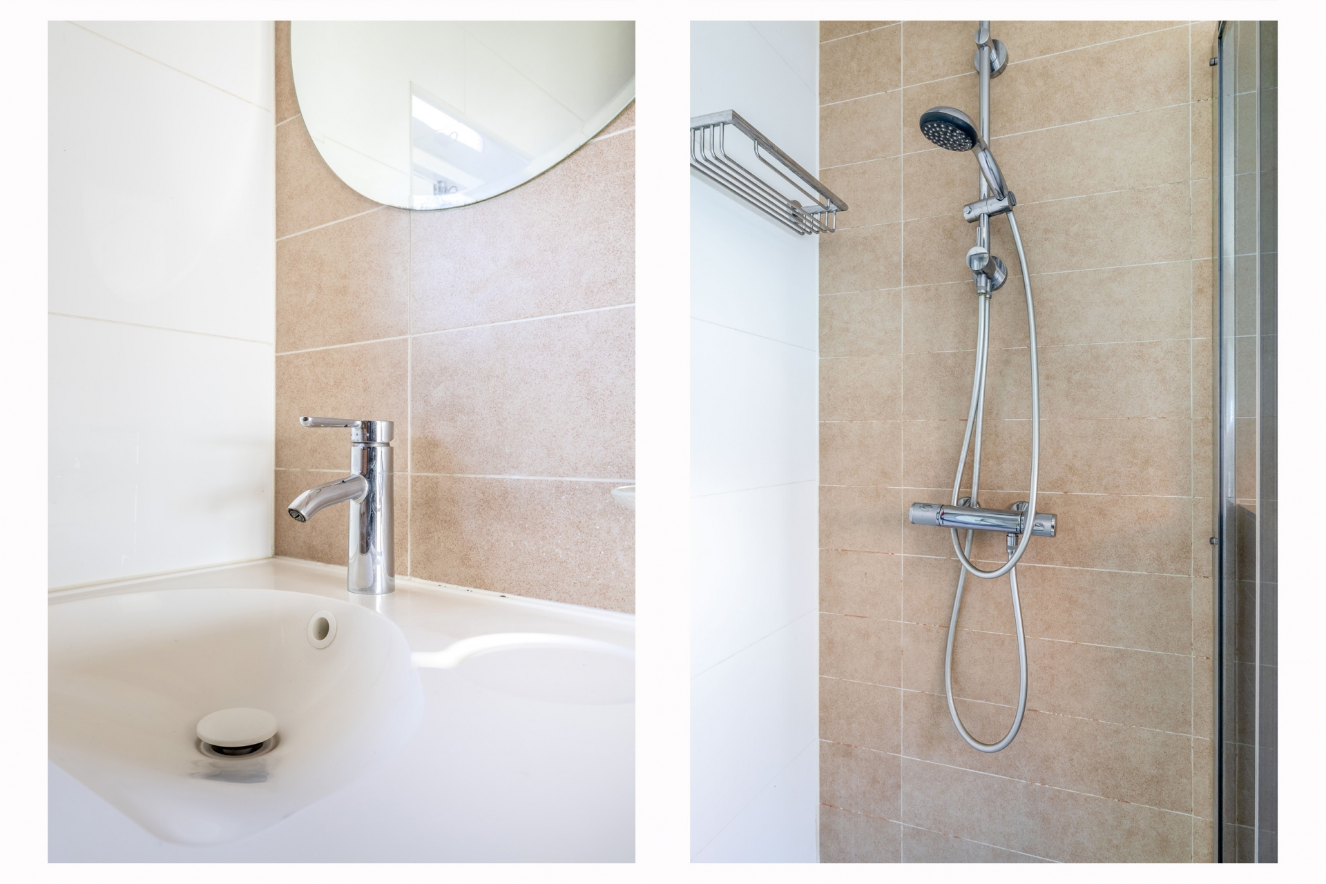Op de eerste verdieping vind je in totaal vier slaapkamers, verdeeld over twee ruime hoofdslaapkamer en twee kleinere kamers. Ook hier valt weer op hoeveel licht er naar binnen komt. De kamers zijn functioneel en naar wens in te richten als kinderkamer, werkkamer of logeerkamer. De badkamer is in lichte kleurstelling uitgevoerd, met een moderne douche, hangend toilet, wastafelmeubel en designradiator. Dankzij het raam kun je hier goed ventileren en profiteer je van daglicht.