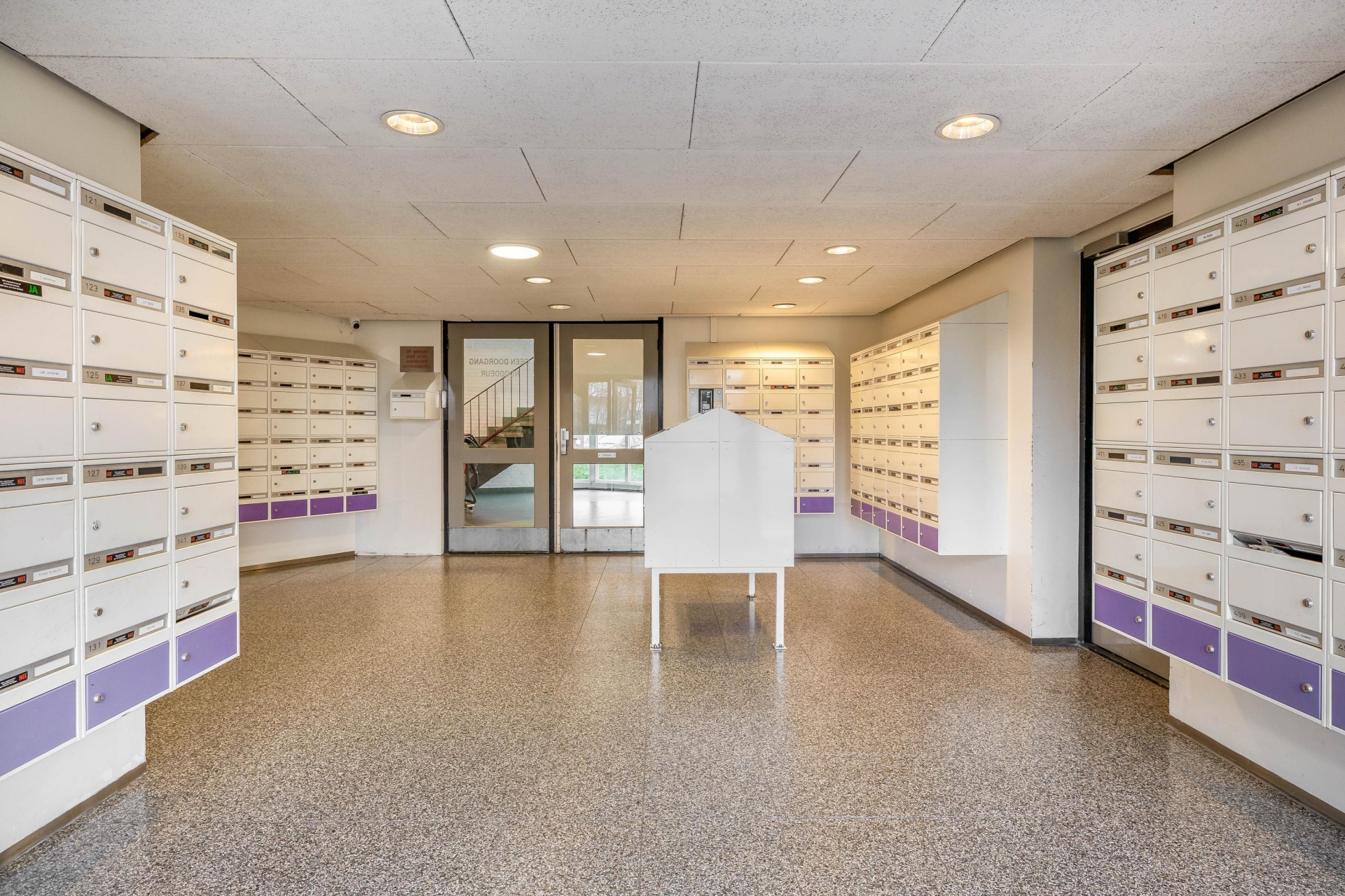 Het ruime balkon van circa 8 m² is gelegen op het zuiden en biedt volop ruimte om te ontspannen en te genieten van de zon. Op de begane grond beschikt het appartement over een eigen privéberging van ca. 4 m² – ideaal voor fietsen en extra opslag.