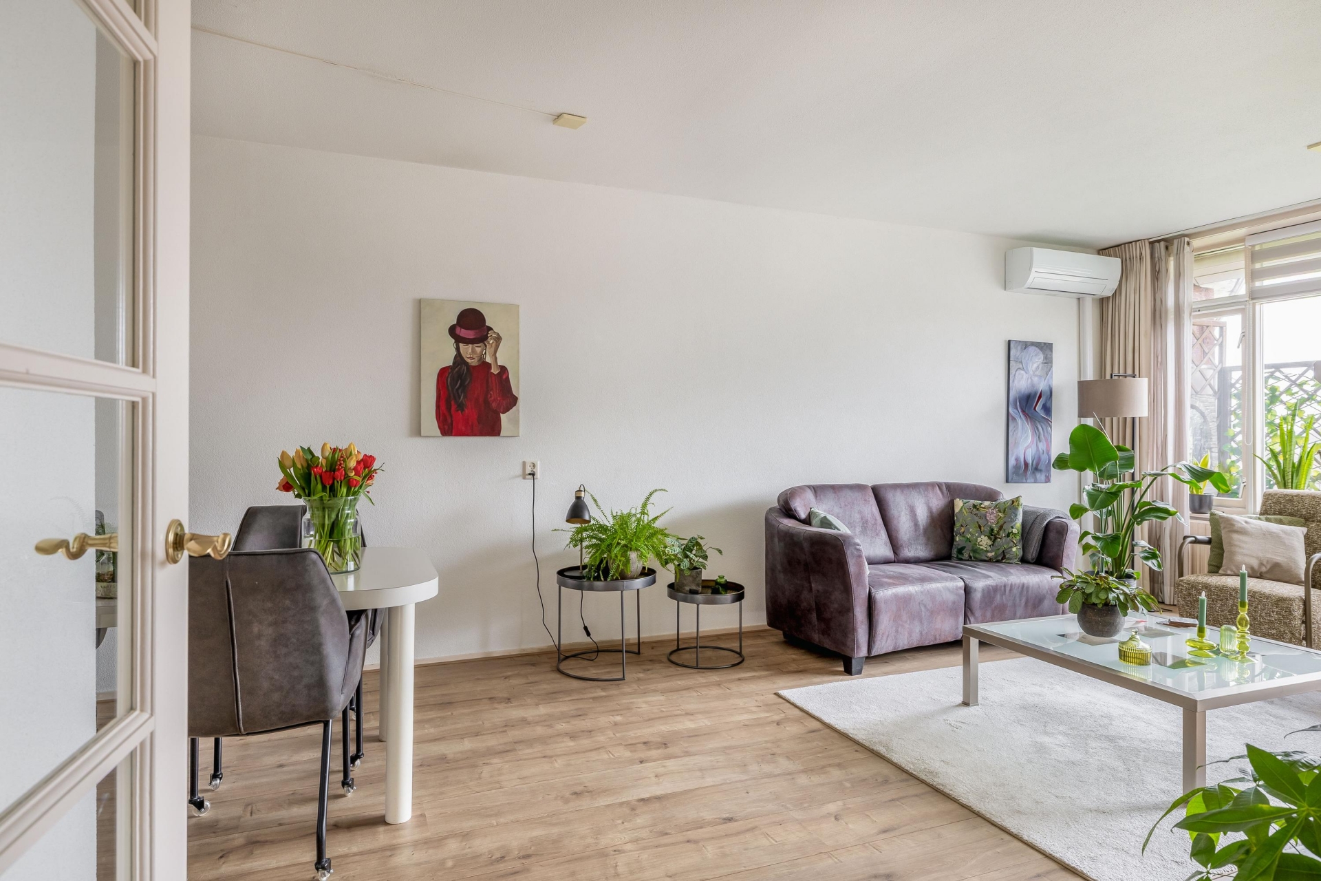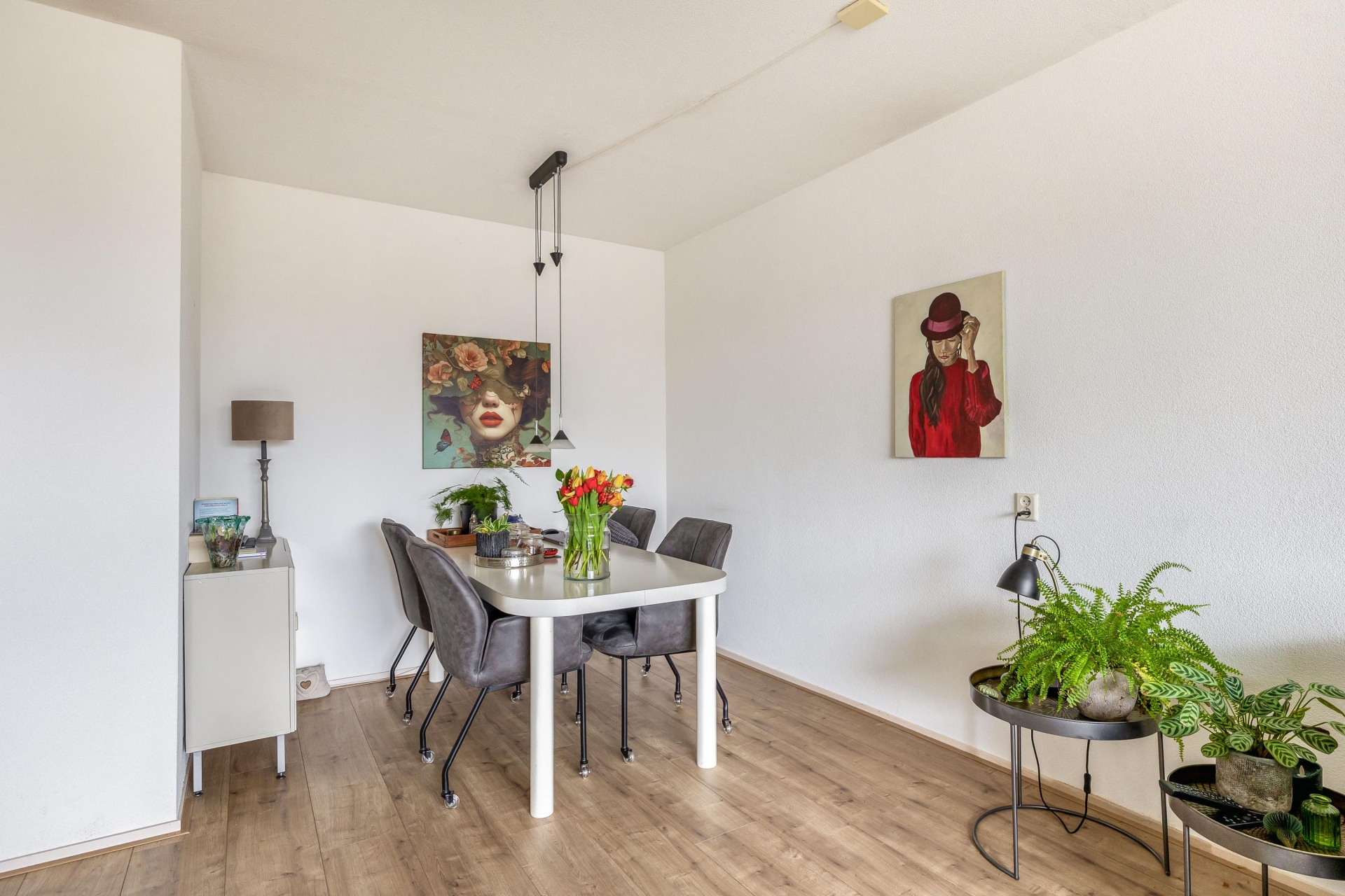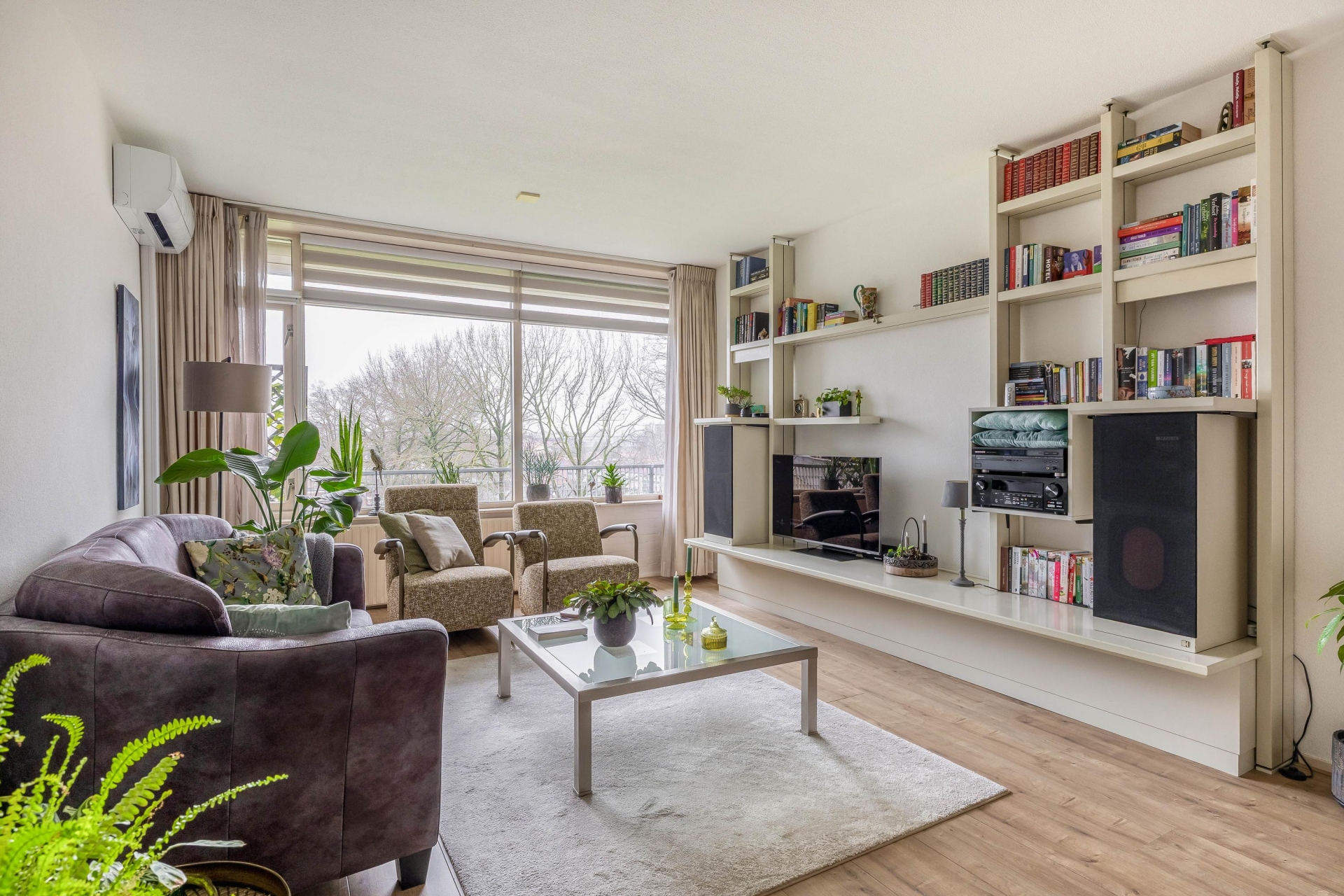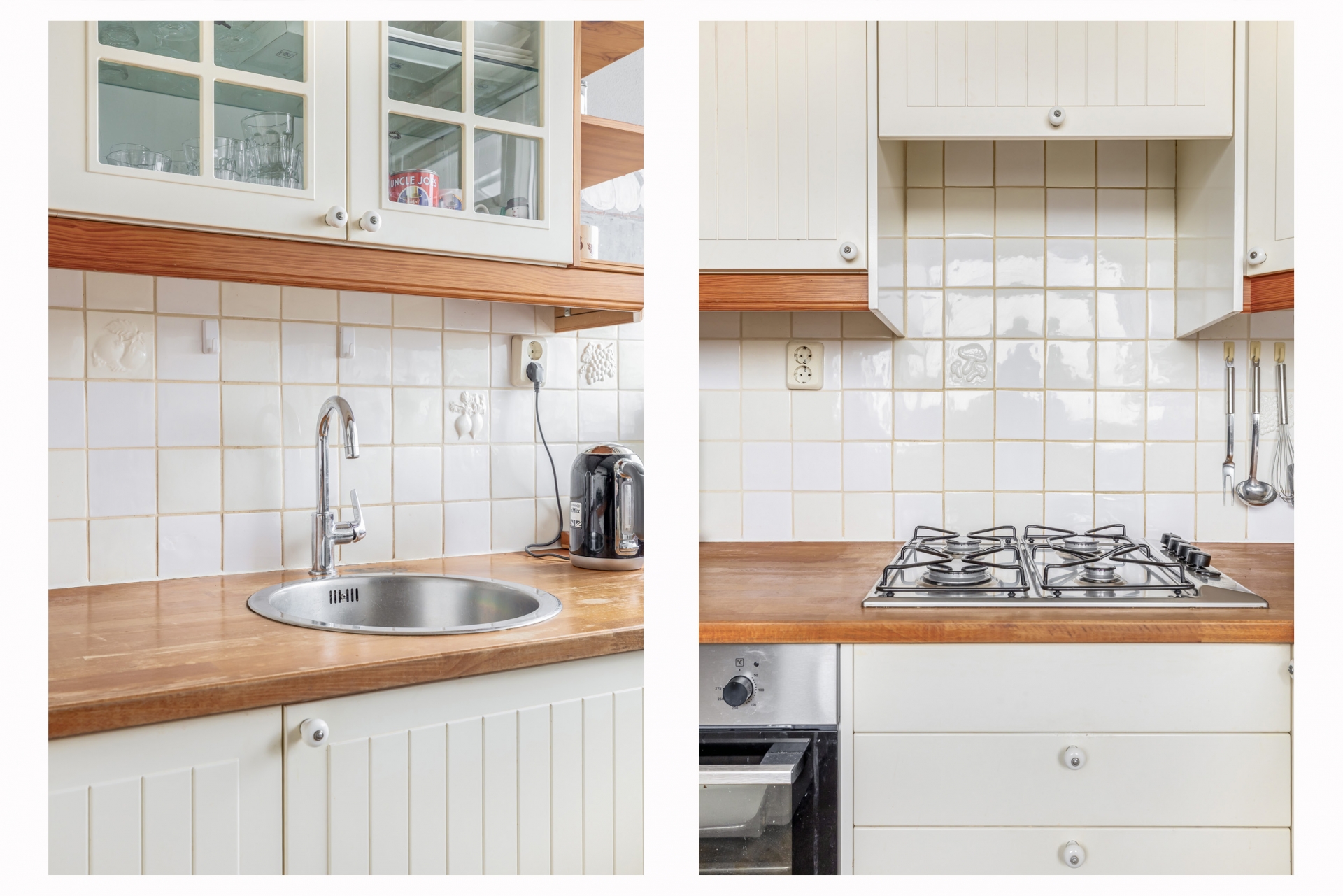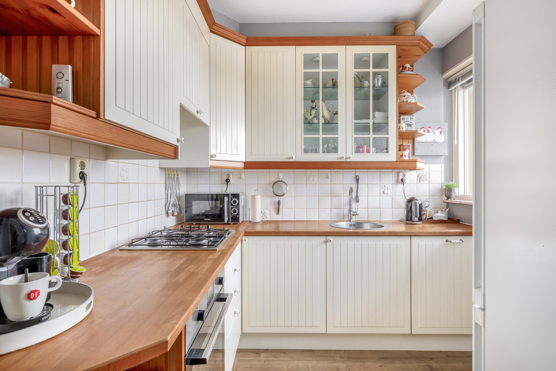 De lichte woonkamer heeft grote raampartijen en biedt een prettig uitzicht en veel daglicht. De keuken bevindt zich aan de galerijzijde en is uitgevoerd in een praktische hoekopstelling met diverse inbouwapparatuur.