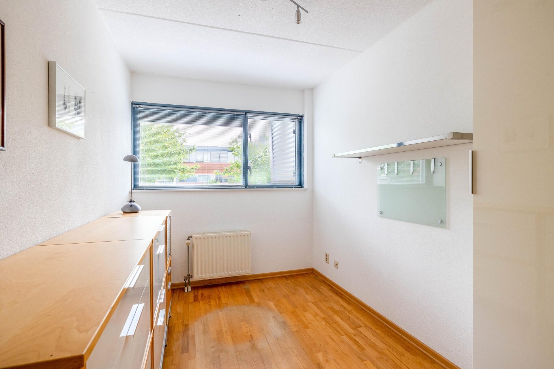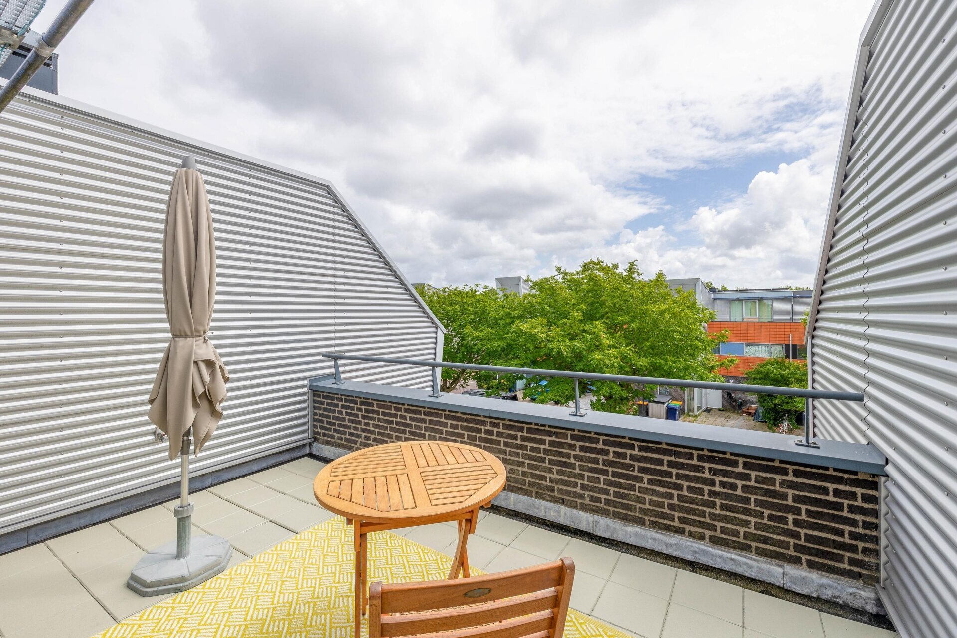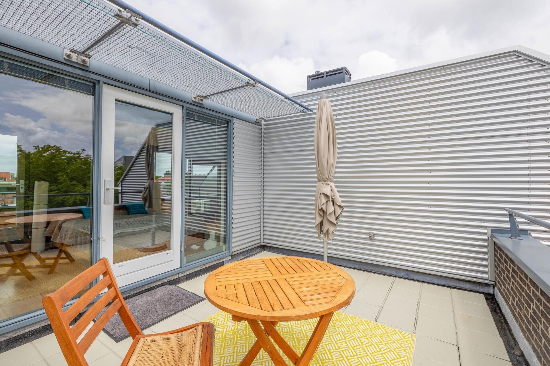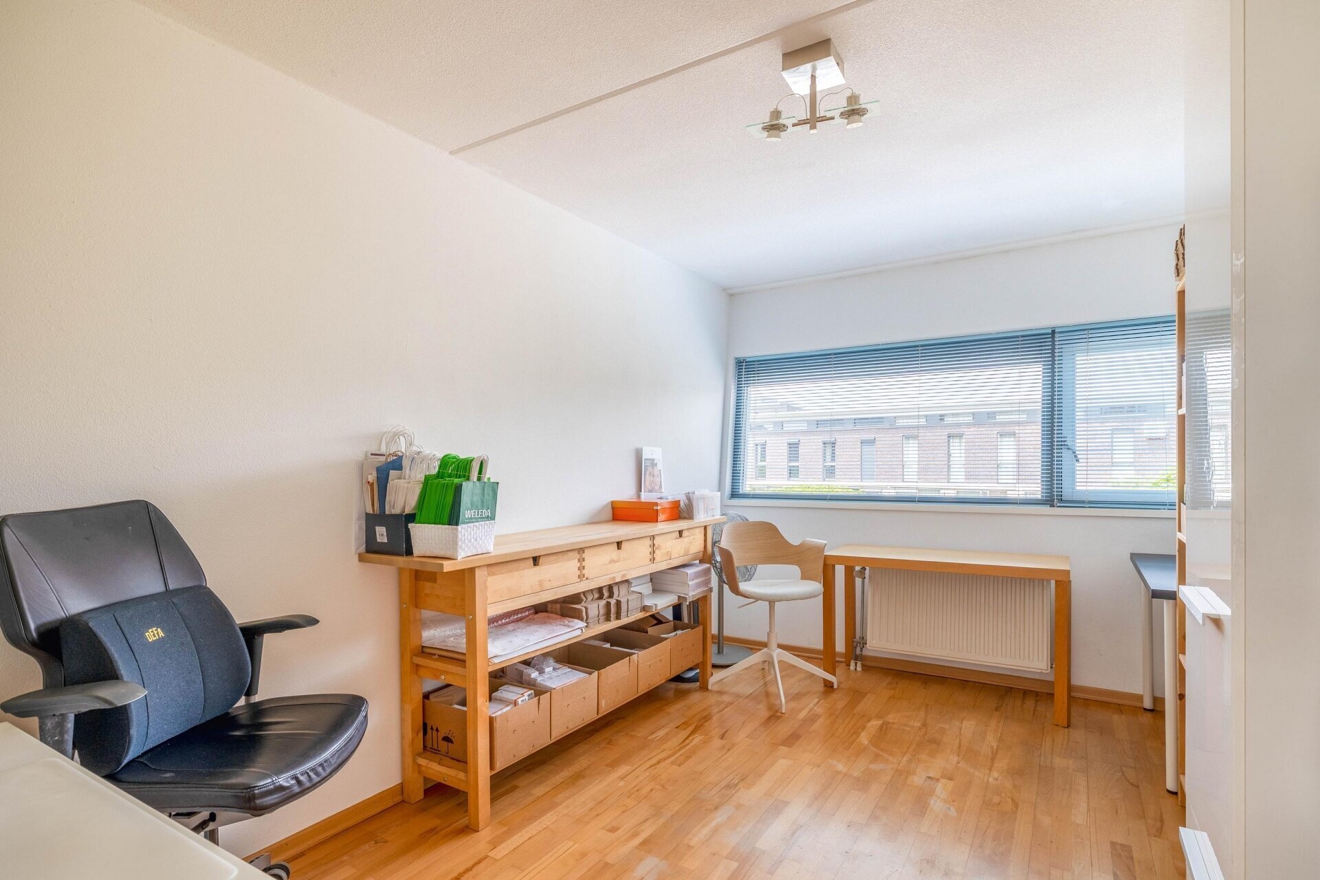 Overloop met vide en 2e opstelplaats voor wasmachine en droger, omvormer van de zonnepanelen. Zeer ruime en lichte 4e slaapkamer over de volle breedte, voorzien van kastenwand, airco en toegang naar riante zonneterrassen aan de voor- en achterzijde (buitenkraan), met veel privacy en schitterend vrij uitzicht op het groen en water. De vloer is voorzien van licht parket. Onder de wasmachine-opstelling betegeld.