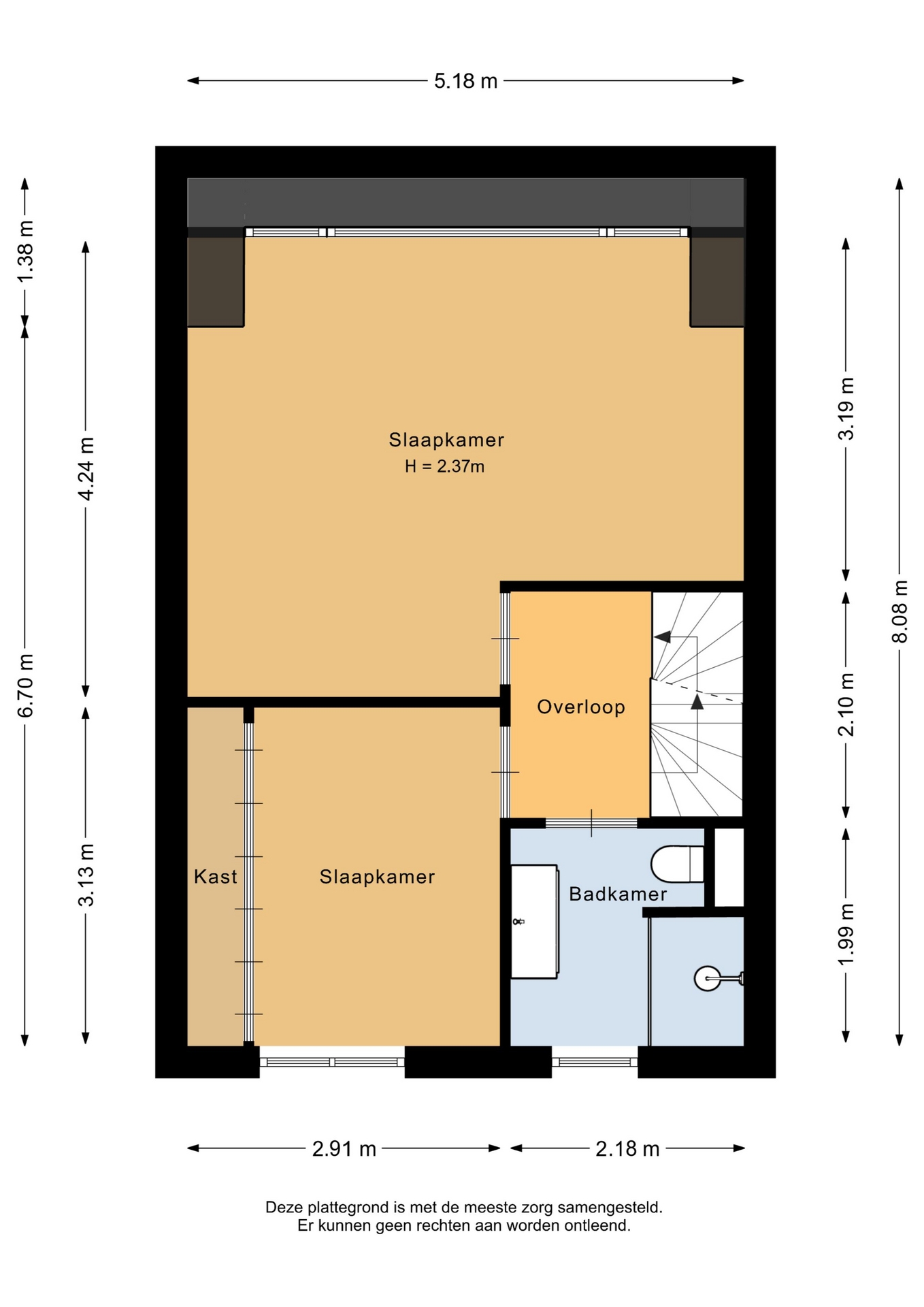 “Deze informatie is door ons met de nodige zorgvuldigheid samengesteld. Onzerzijds wordt echter geen enkele aansprakelijkheid aanvaard voor enige onvolledigheid, onjuistheid of anderszins, dan wel de gevolgen daarvan. Alle opgegeven maten en oppervlakten zijn indicatief.”