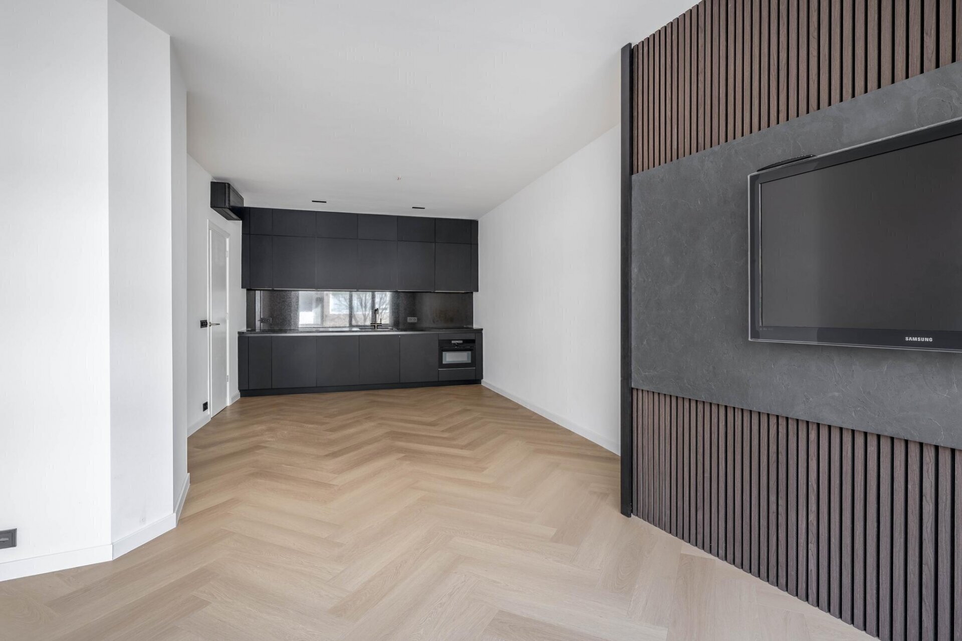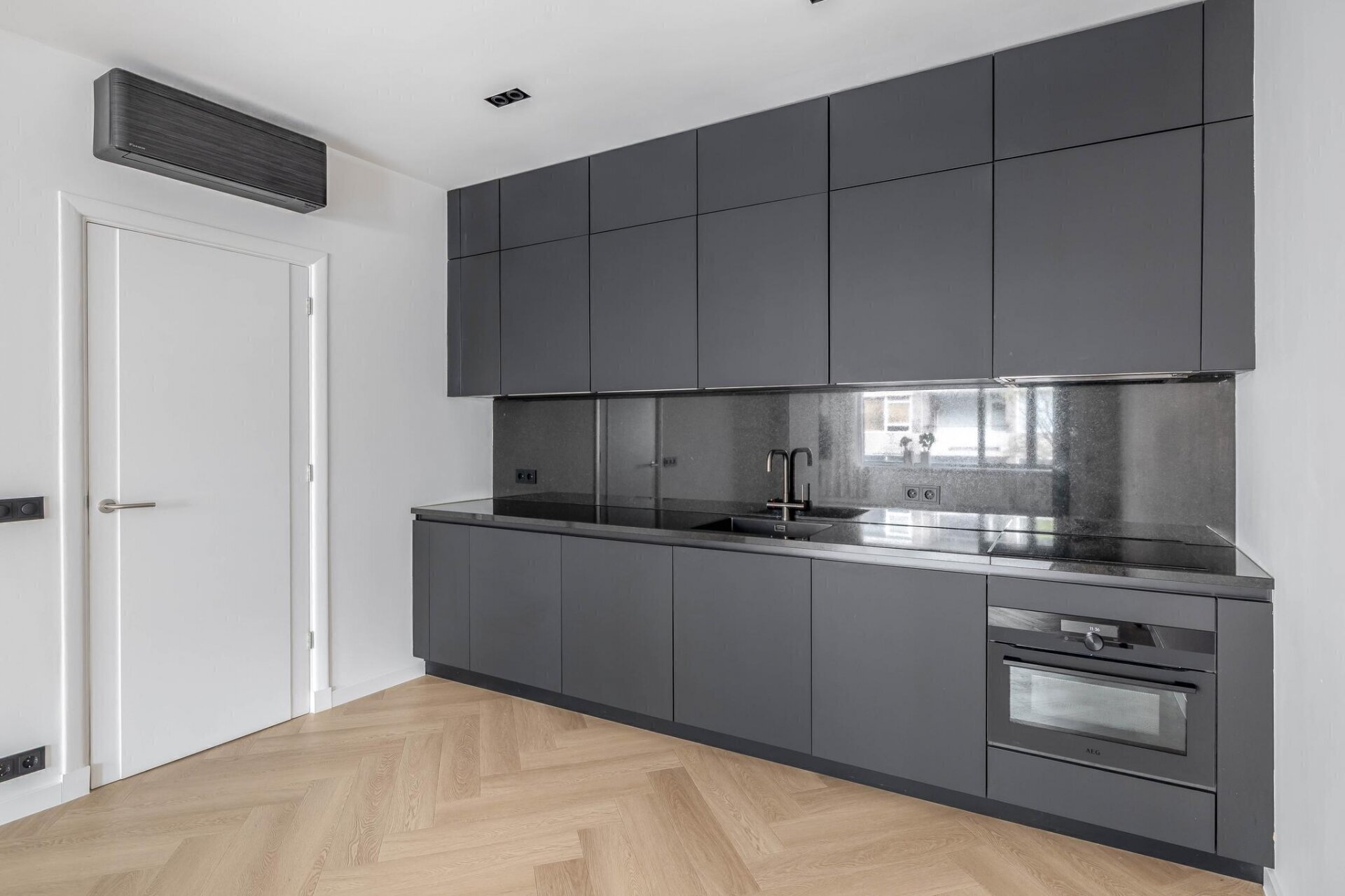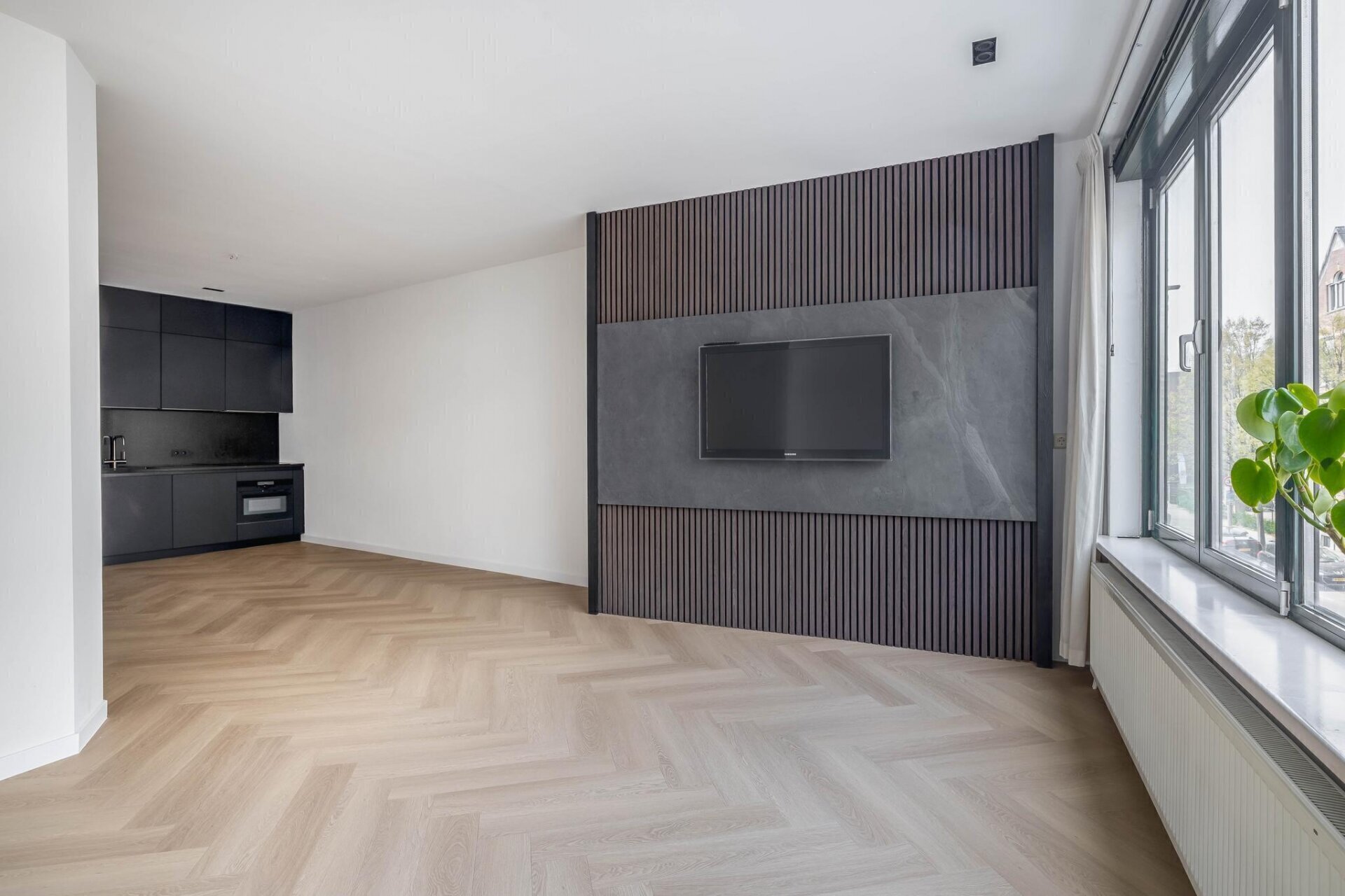 Deze woonkamer biedt een heerlijke leefruimte met volop natuurlijk daglicht dankzij de grote ramen. De open indeling zorgt voor een ruimtelijk gevoel en maakt deze plek perfect om te ontspannen, gasten te ontvangen of gezellig te dineren. Aansluitend vind je de moderne keuken, die helemaal nieuw is en voorzien van luxe AEG-apparatuur.