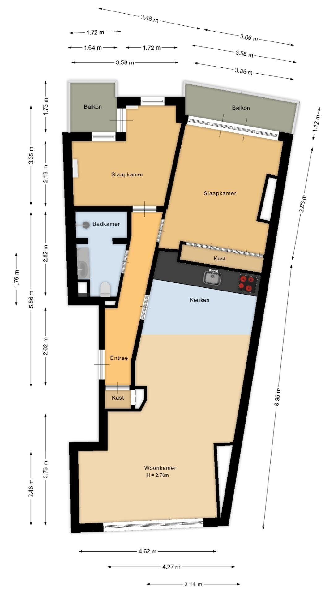 - Twee balkons op het noordwesten;
