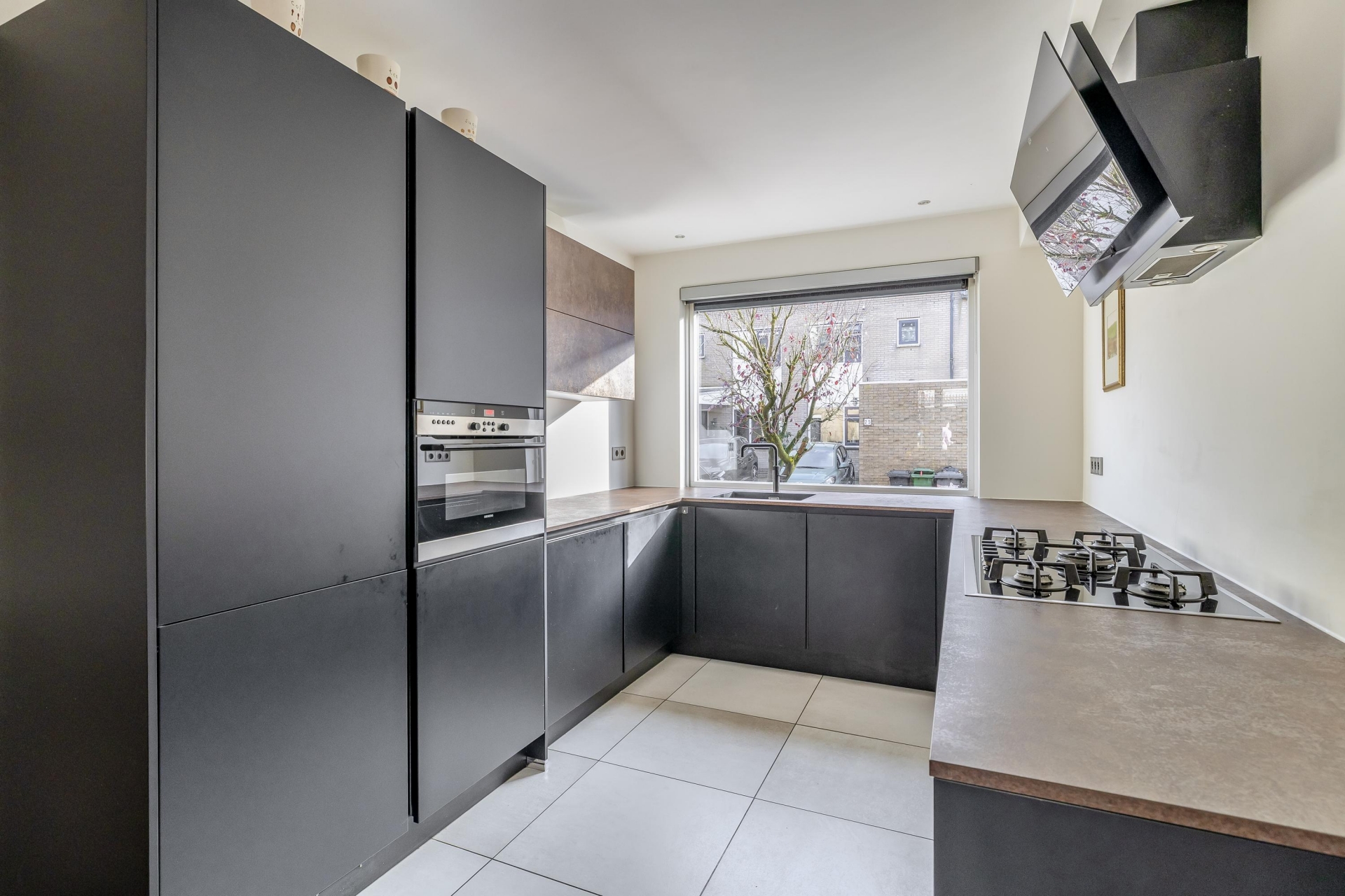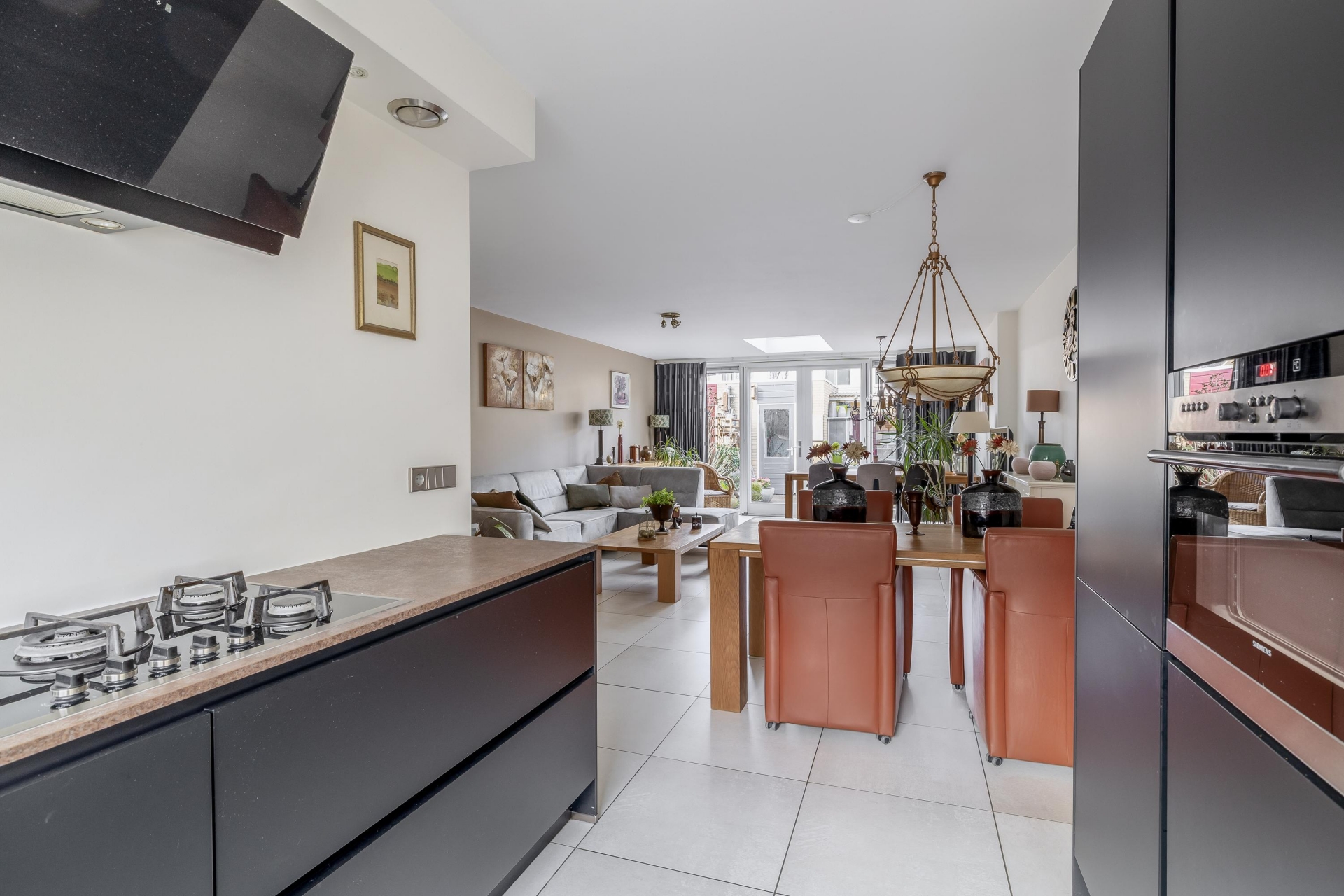 Dit is echt een heerlijk gezinshuis waar je zo in kunt. De woonkamer is een royale leefruimte met strak gestucte wanden en plafond, een lichte tegelvloer met vloerverwarming en een prettige lichtinval dankzij de grote raampartijen. Ook is er in de uitbouw een lichtkoepel geplaatst om nog meer lichtinval te realiseren. De moderne, ruime keuken aan de voorzijde is voorzien is van diverse inbouwapparatuur. De matzwarte afwerking geeft de keuken een luxe uitstraling. Met het parkeren op eigen terrein een een zonnige tuin op het noordwesten is dit een heerlijke plek waar je jarenlang met plezier kunt gaan wonen.