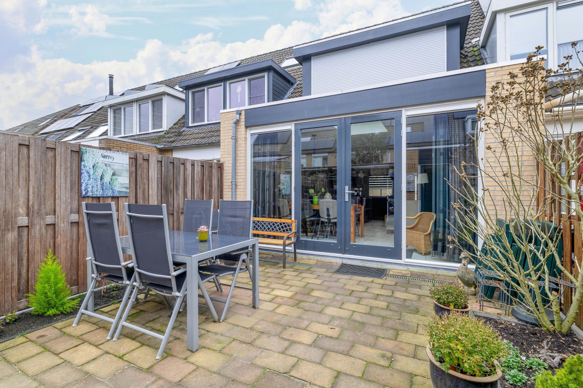 De achtertuin is verzorgd aangelegd, er zijn mooie borders met beplanting geplaatst. De tuin biedt veel privacy en er is voldoende ruimte voor bijvoorbeeld een loungeset. Naast de berging is een overkapping geplaatst, ideaal voor extra opbergruimte of een droge plek voor de fietsen. De achtertuin ligt op het noordwesten, wat betekent dat je hier 's middags en 's avonds volop van de zon kunt genieten! De voortuin is volledig betegeld en hiermee is er parkeergelegenheid voor twee auto’s.