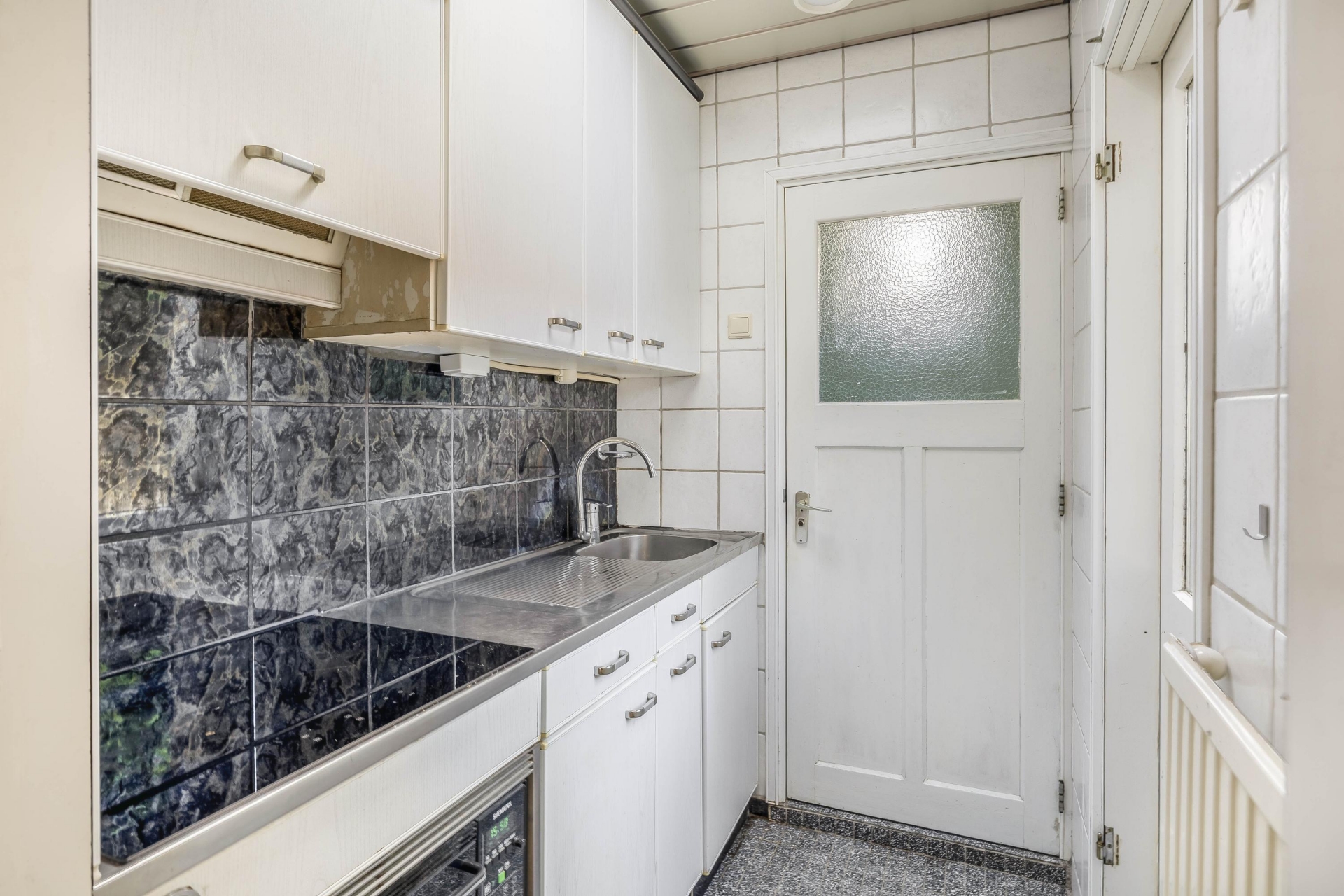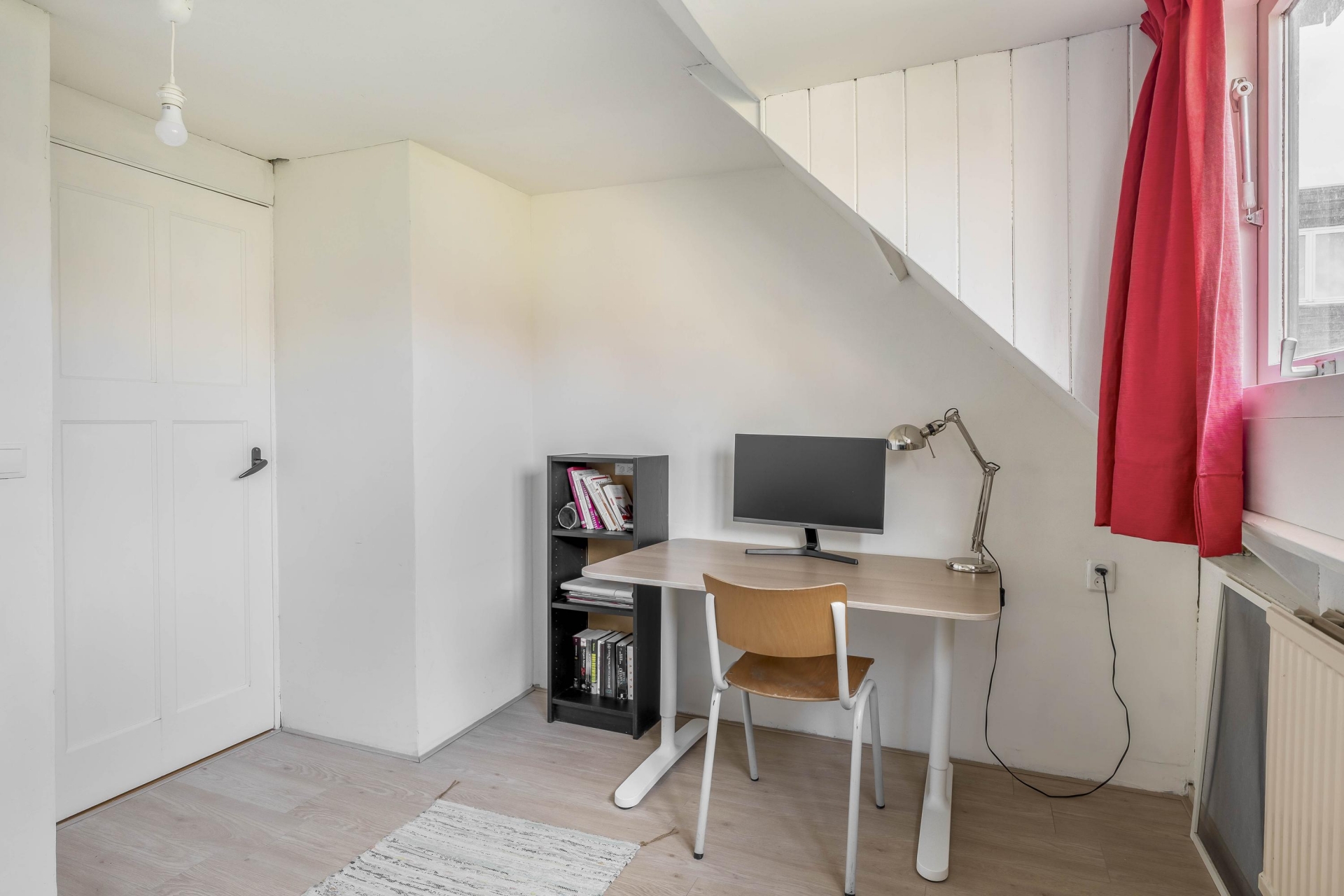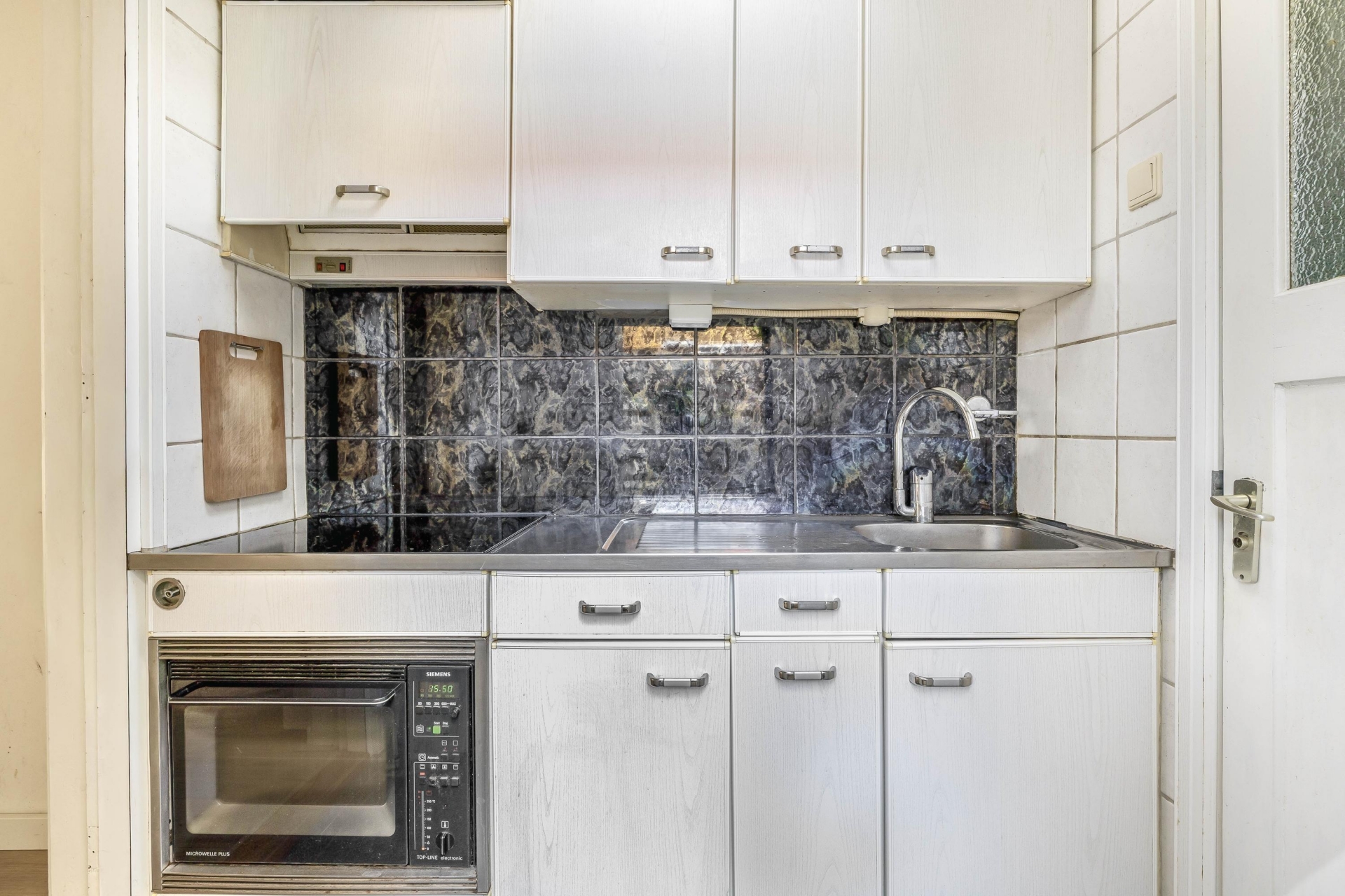 Beneden is er een lichte woonkamer met handige trapkast en toegang tot de eenvoudige, maar functionele keuken. De keuken is voorzien van een inductiekookplaat,een combi oven/magnetron en een (elektrische) keukenboiler, een prima basis, met mogelijkheden om naar eigen smaak te moderniseren. Naast de keuken is het toilet separaat.