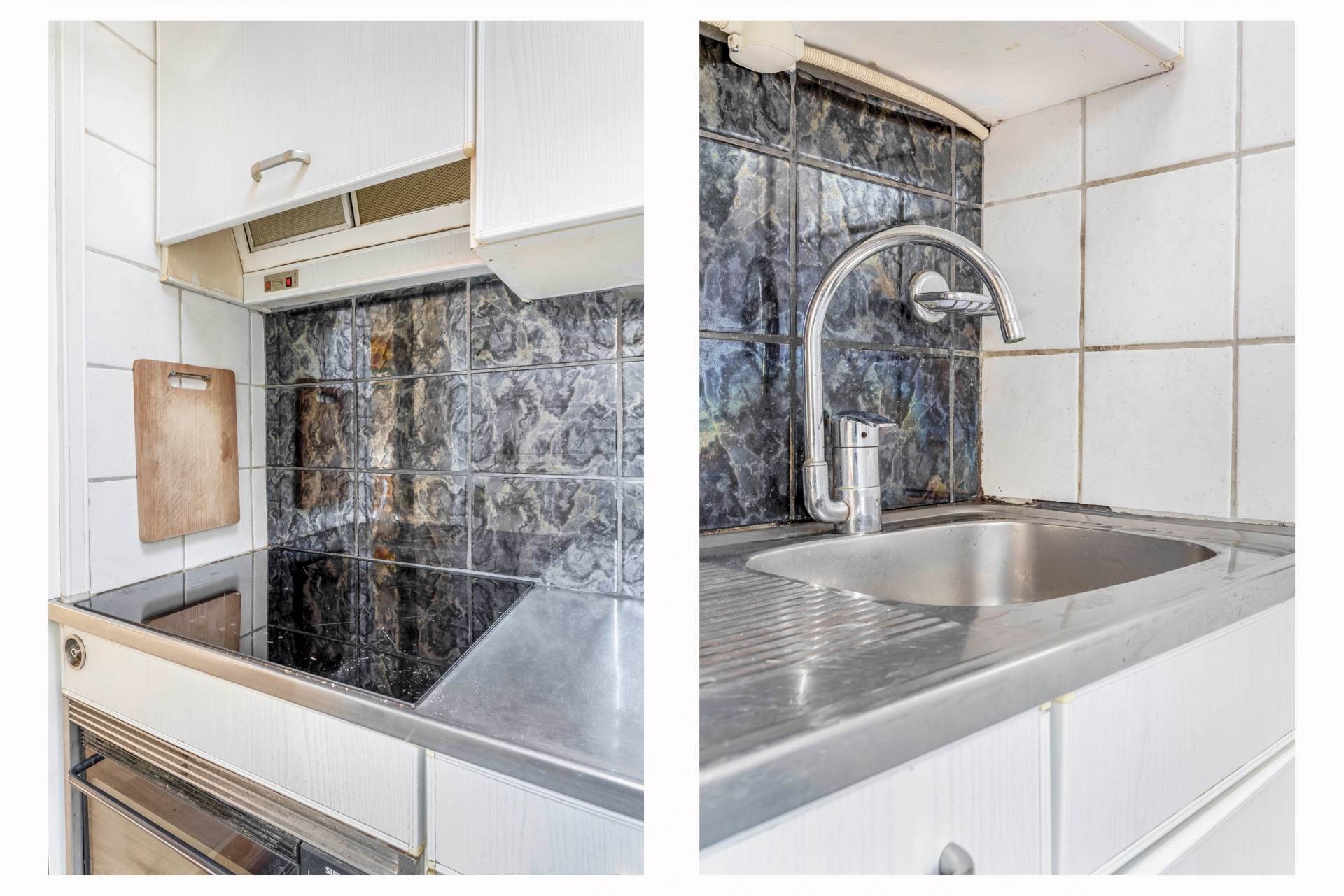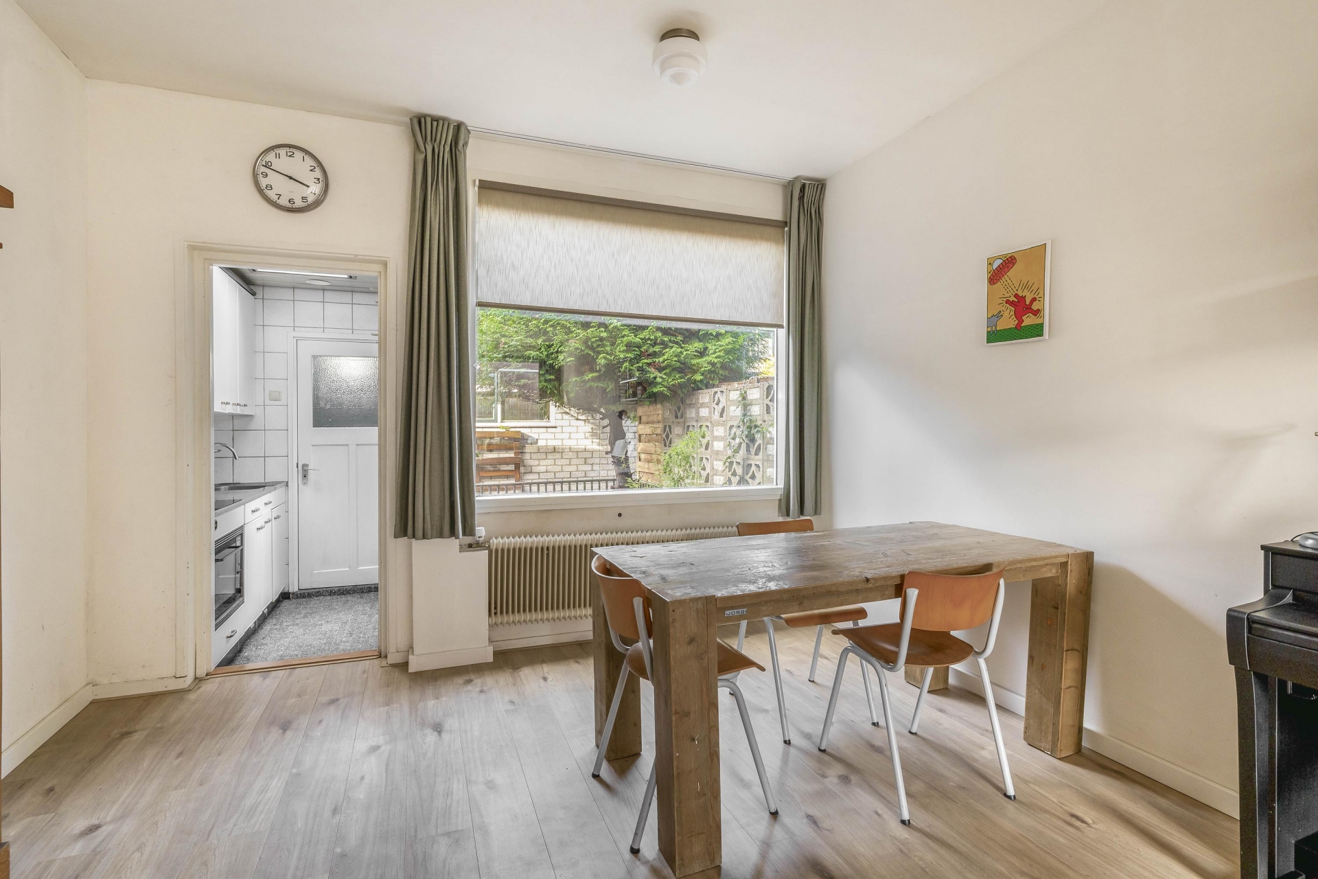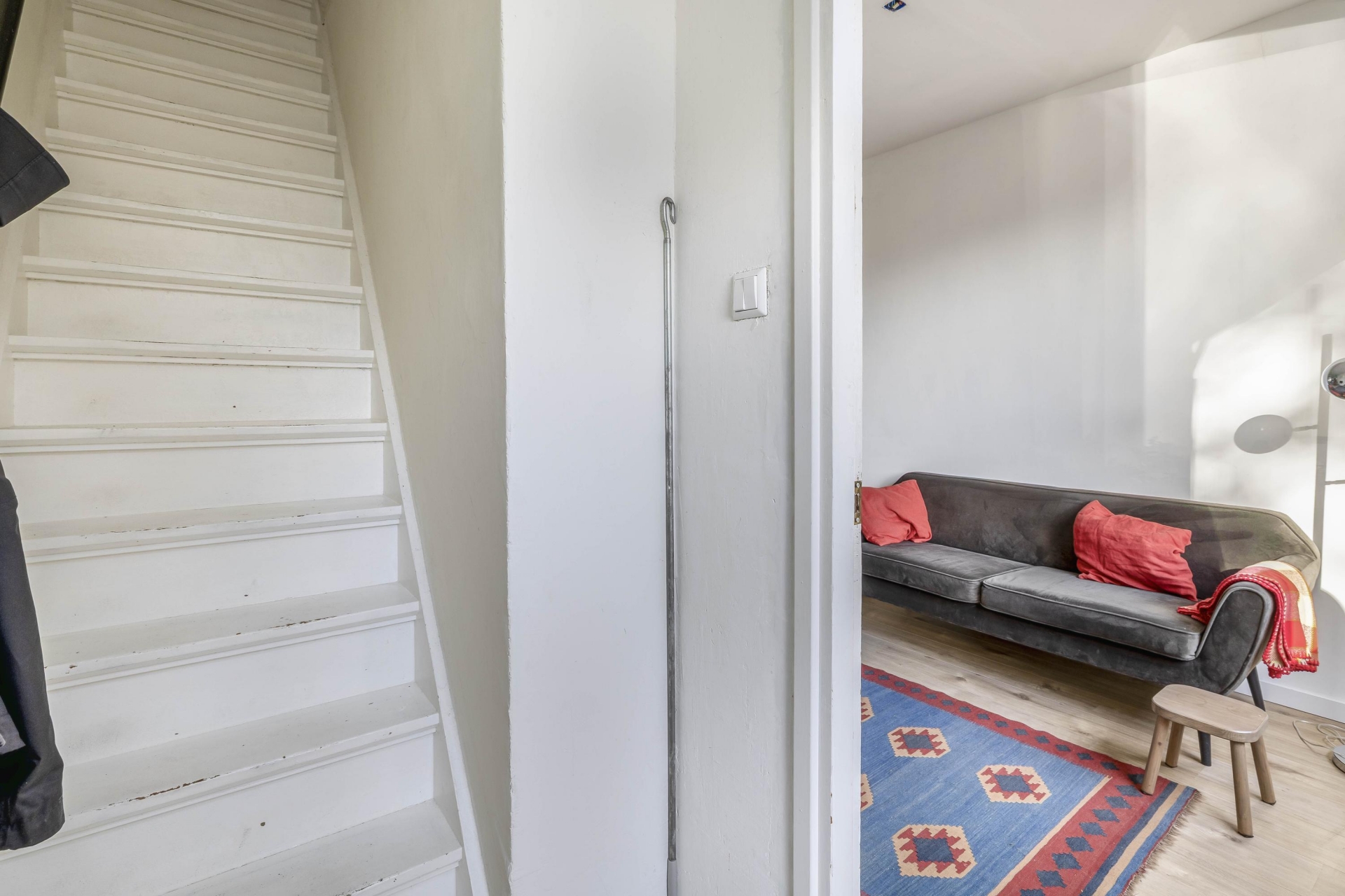 Beneden is er een lichte woonkamer met handige trapkast en toegang tot de eenvoudige, maar functionele keuken. De keuken is voorzien van een inductiekookplaat,een combi oven/magnetron en een (elektrische) keukenboiler, een prima basis, met mogelijkheden om naar eigen smaak te moderniseren. Naast de keuken is het toilet separaat.