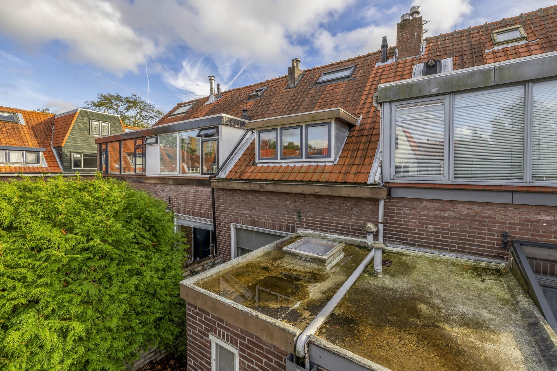 Aan de voorzijde van het huis zijn op zowel de begane grond als de eerste verdieping handmatige markiezen geplaatst, ideaal tegen de zon in de zomer.