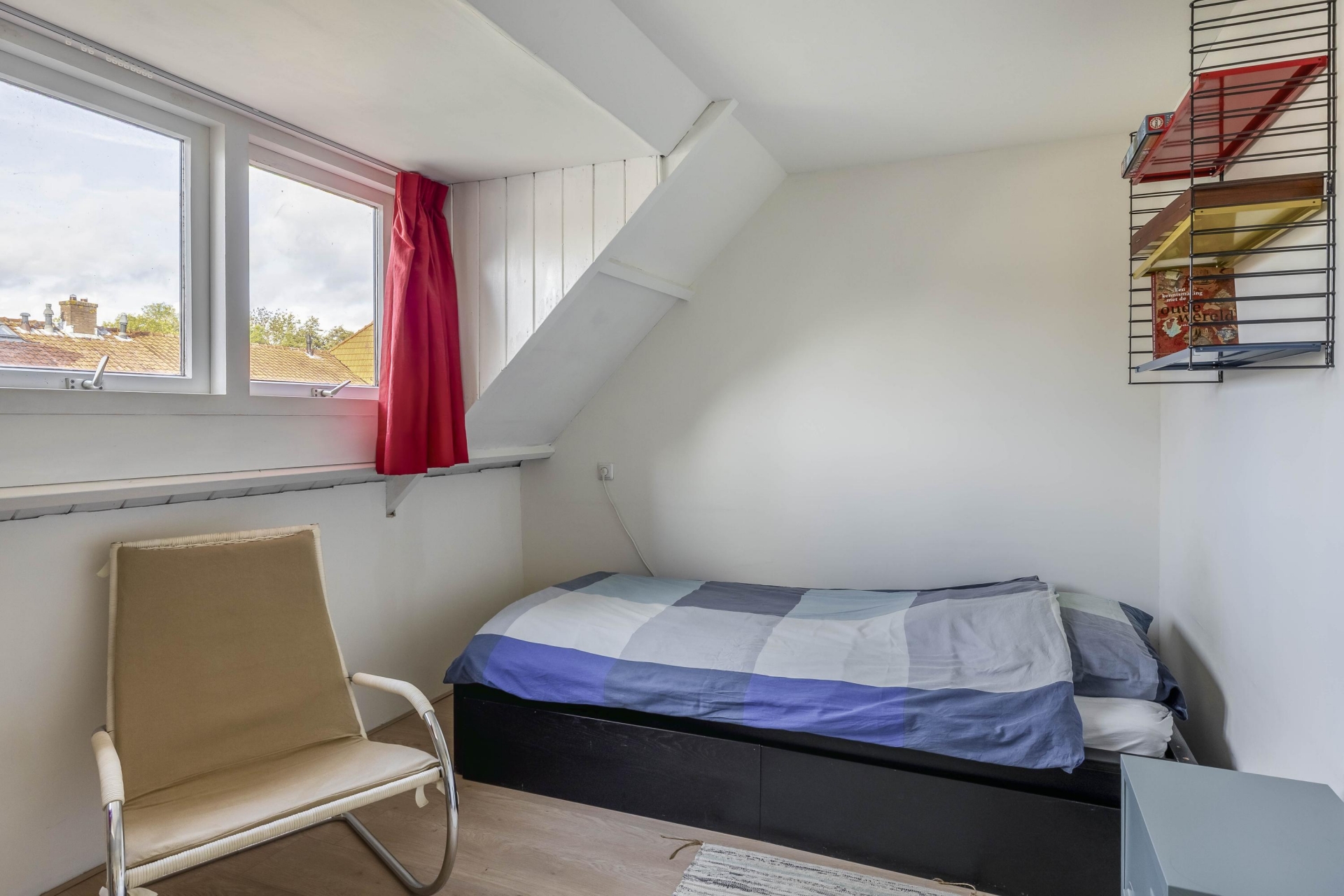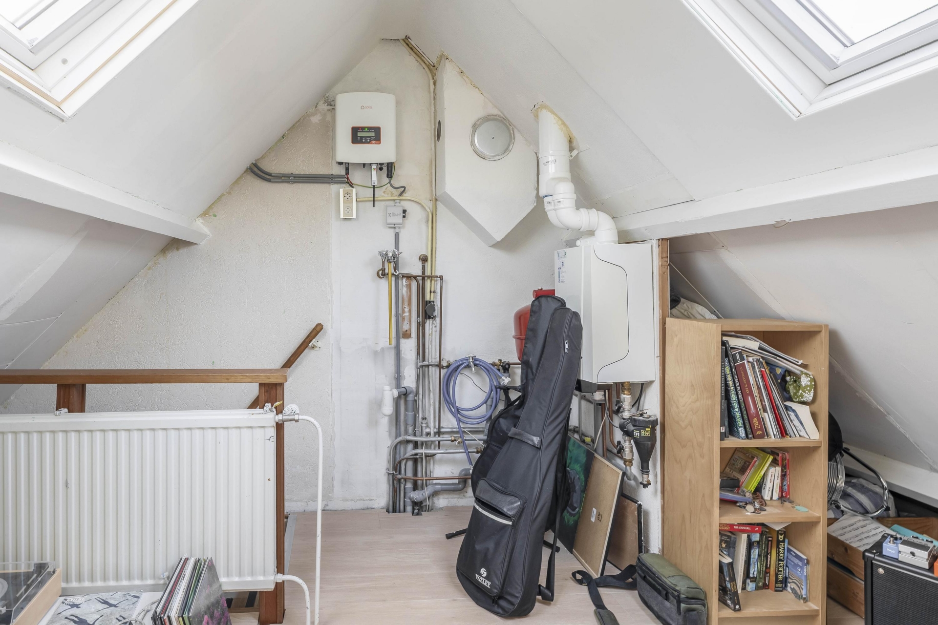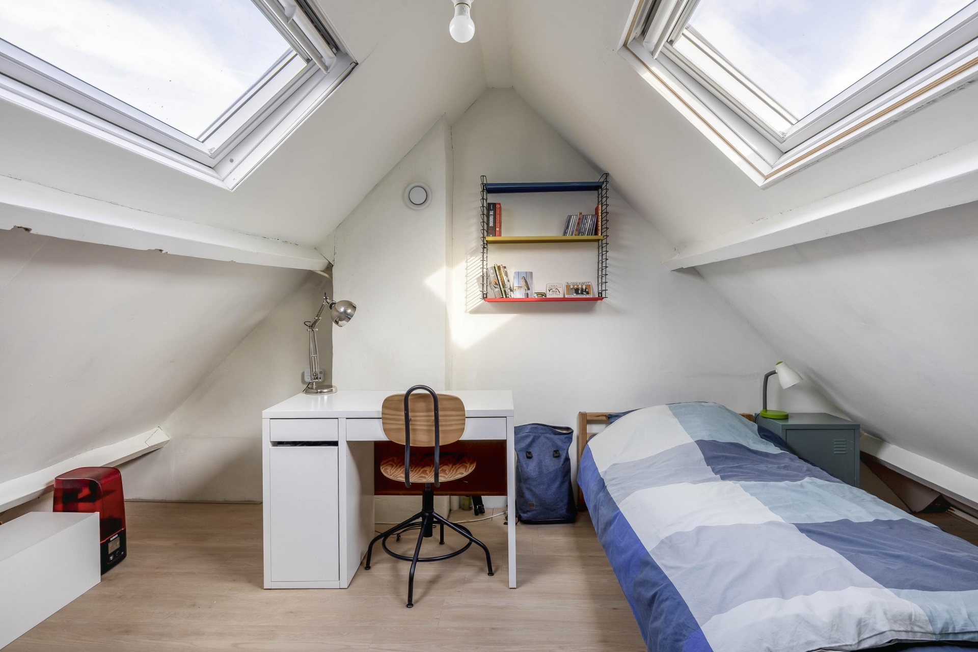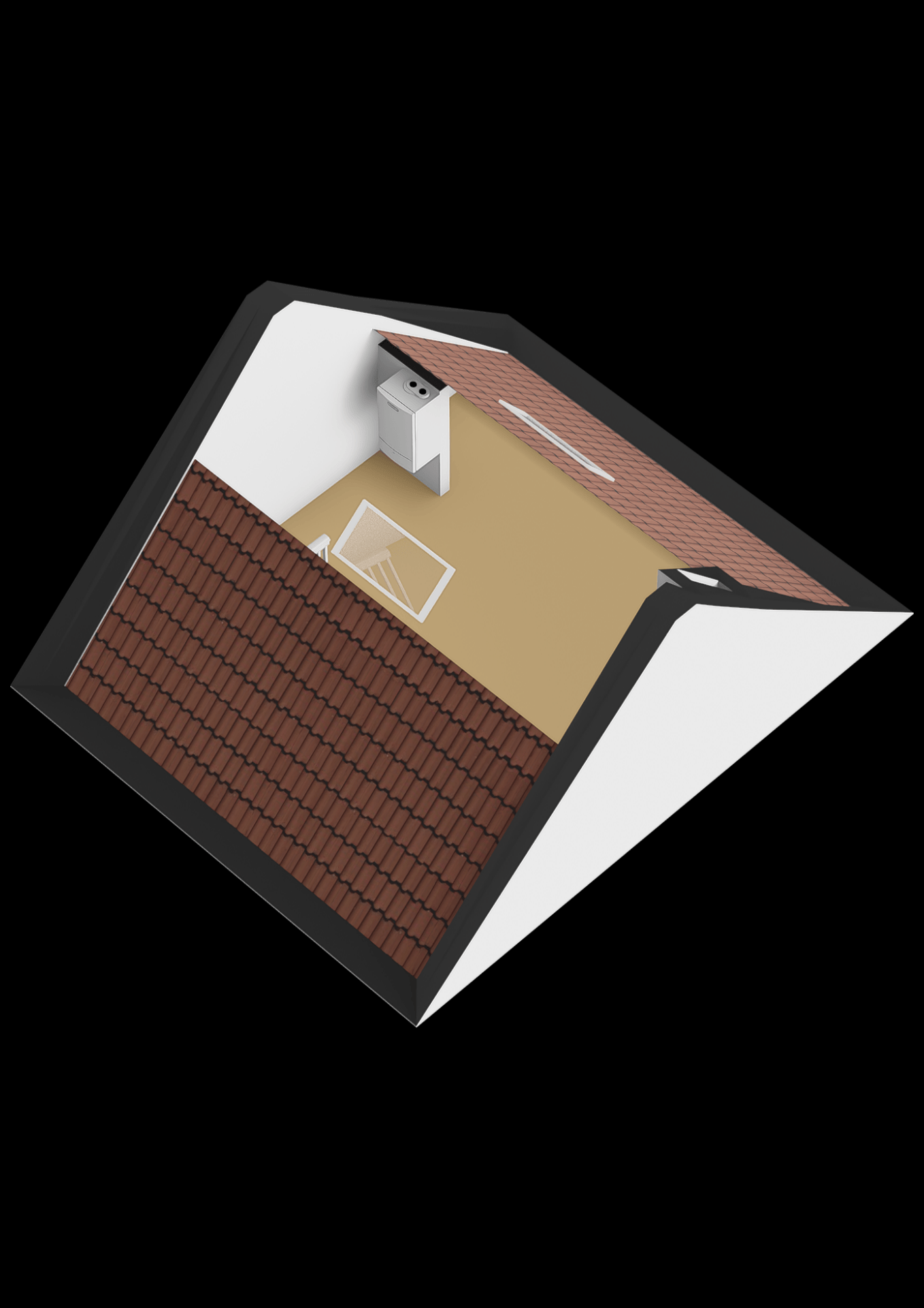 De tweede verdieping beschikt ook nog over een slaapkamer met aan beide zijde een Veluxdakraam. In deze kamer bevindt zich ook de cv-ketel en omvormer van de zonnepanelen.
