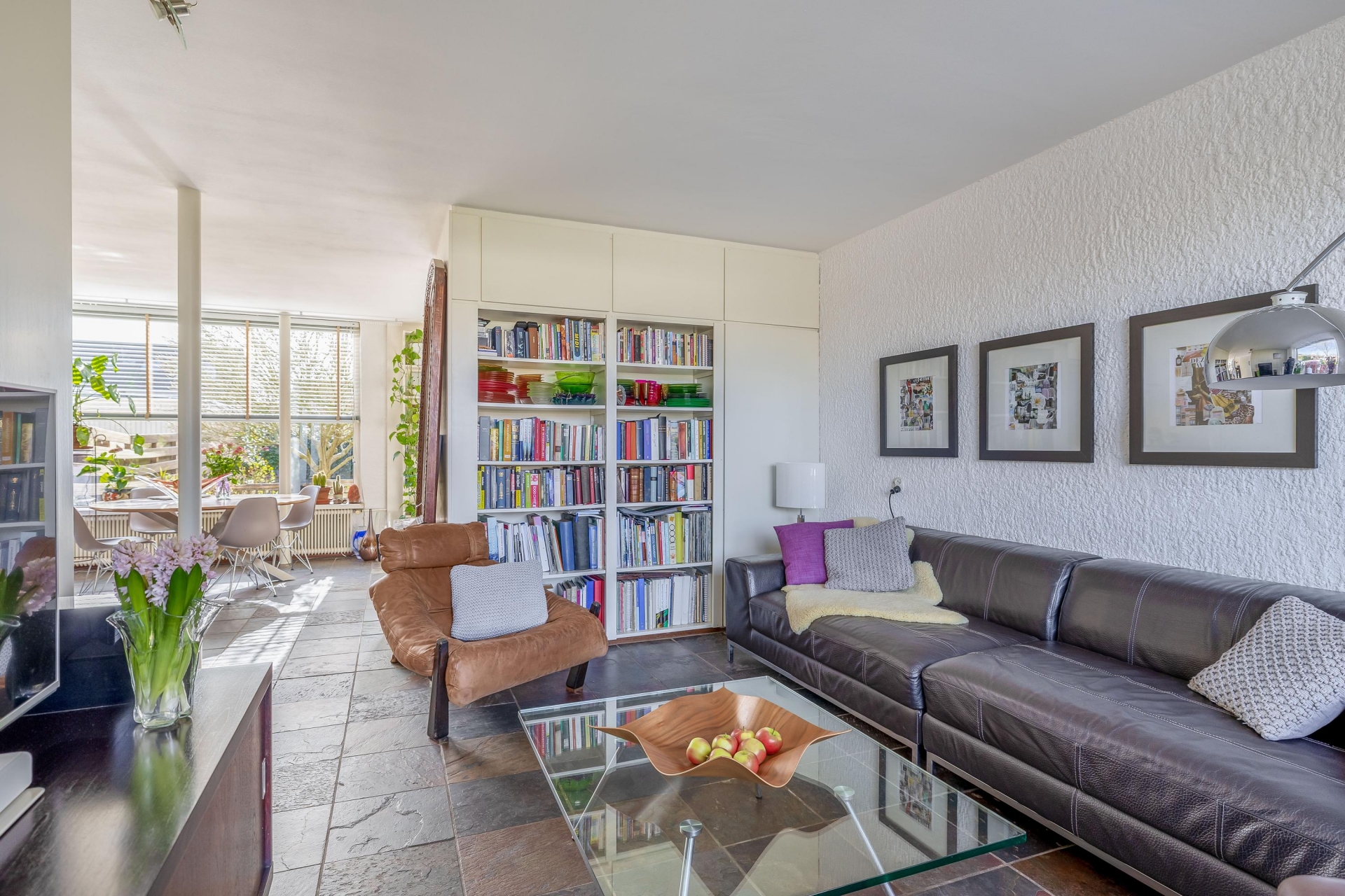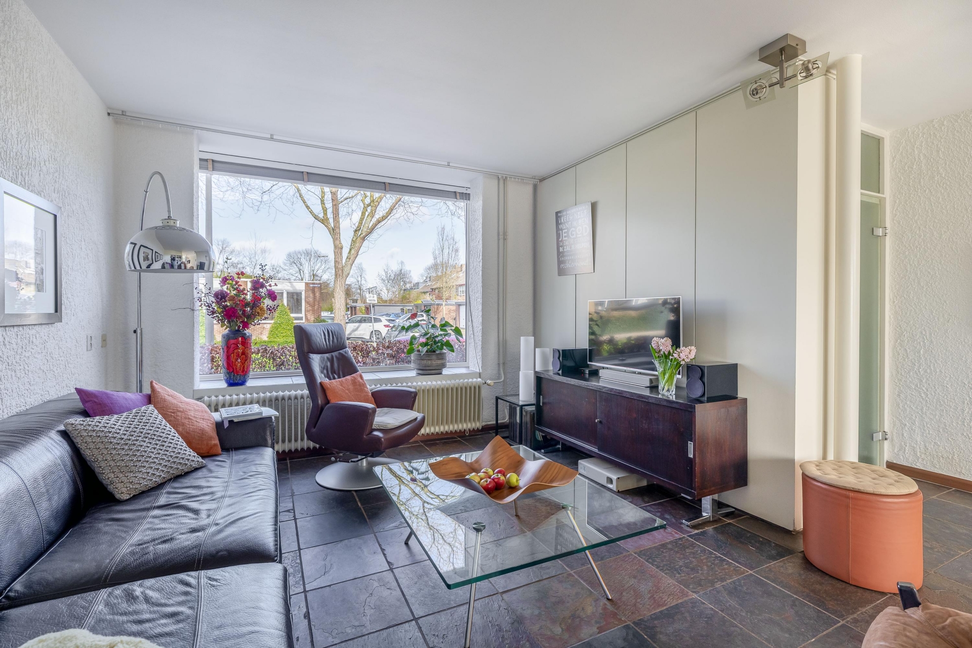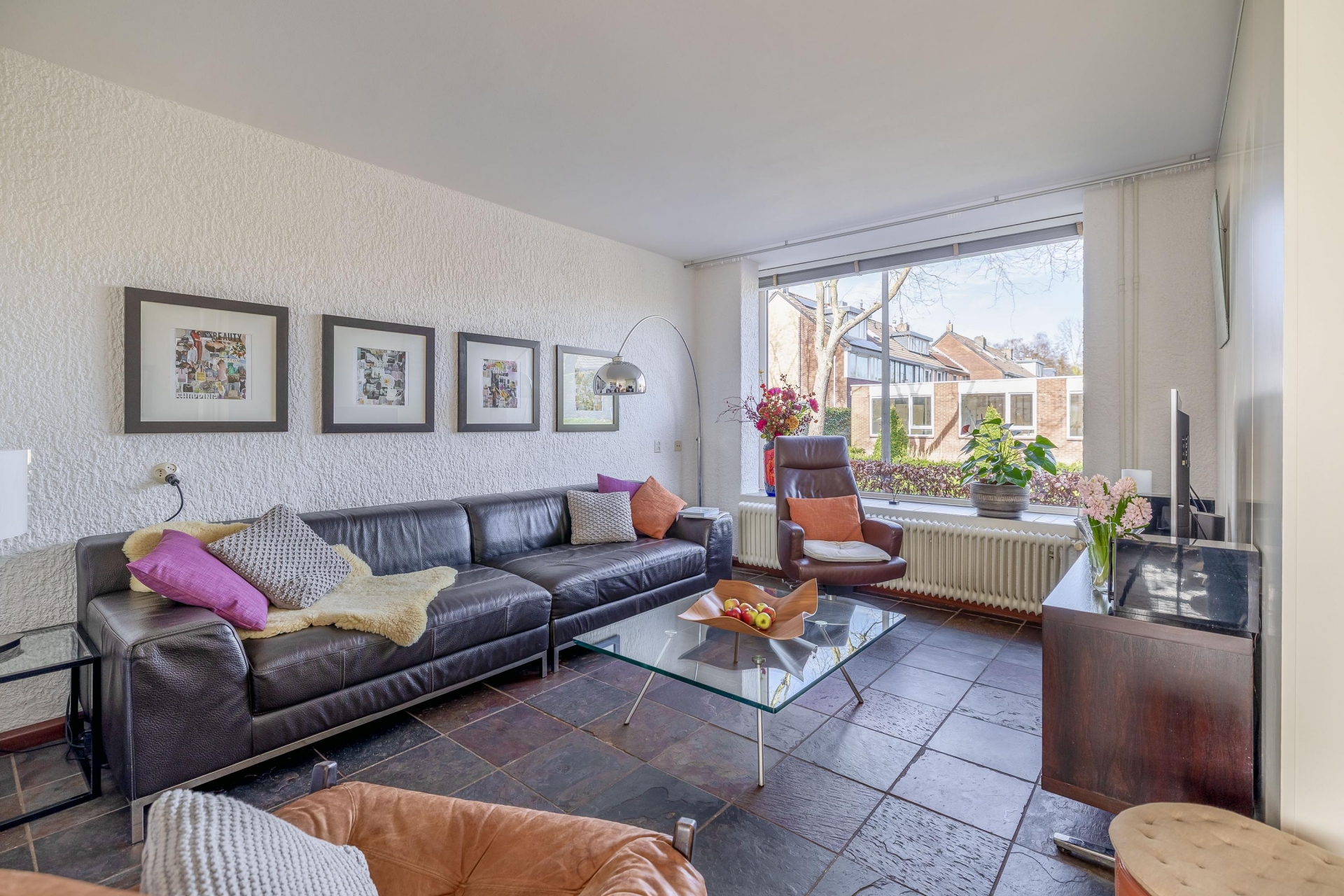 De woonkamer is heerlijk licht dankzij de grote raampartijen aan zowel de voor- als achterzijde. Hierdoor heb je niet alleen veel daglicht, maar ook een prettig zicht op de straat en de tuin. Wat direct opvalt is de karaktervolle vloer van Noord-Afrikaans leisteen, die de ruimte een warme en unieke uitstraling geeft. De ruimte is groot genoeg voor een comfortabele zithoek en een gezellige eethoek, waardoor dit echt het hart van het huis is.