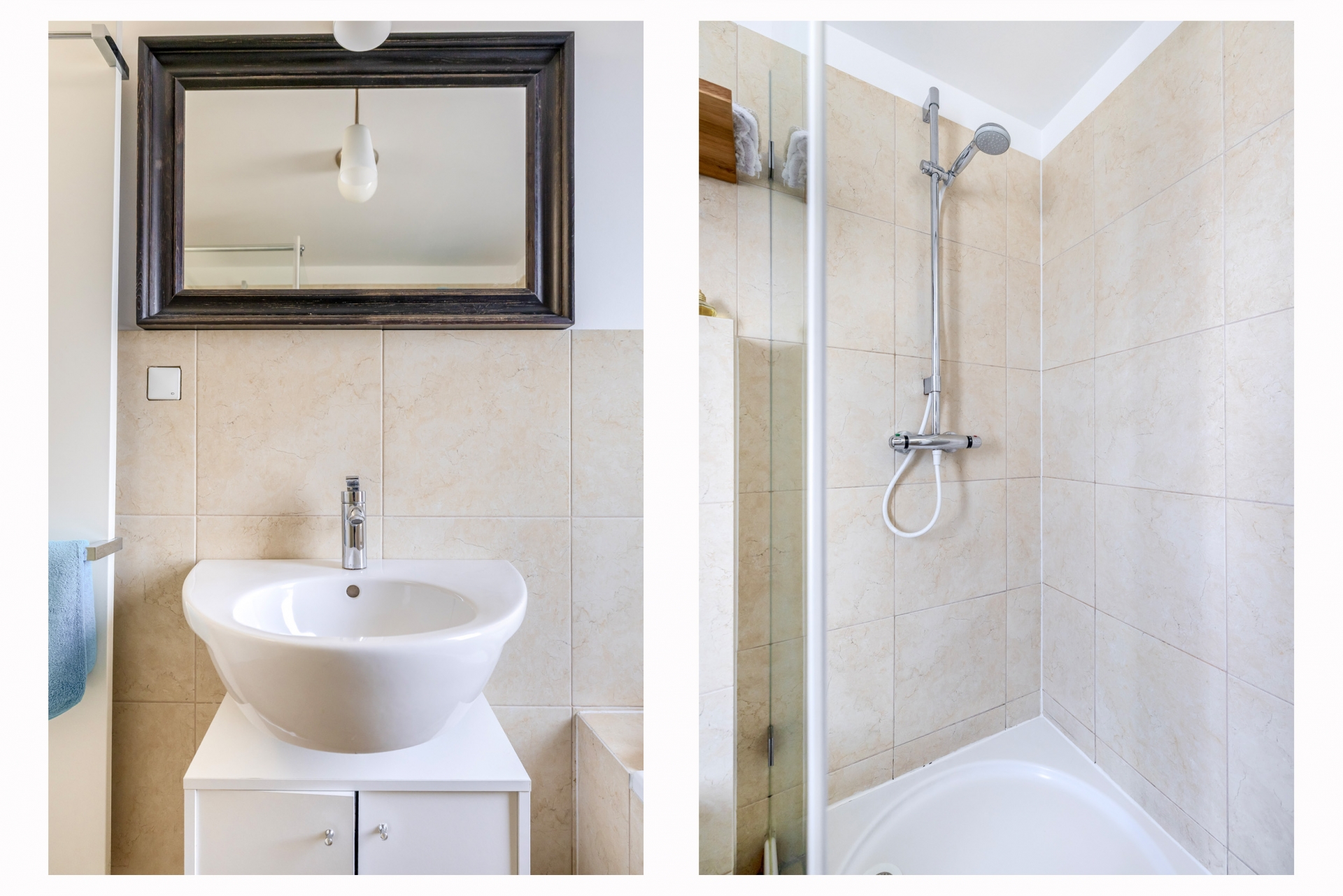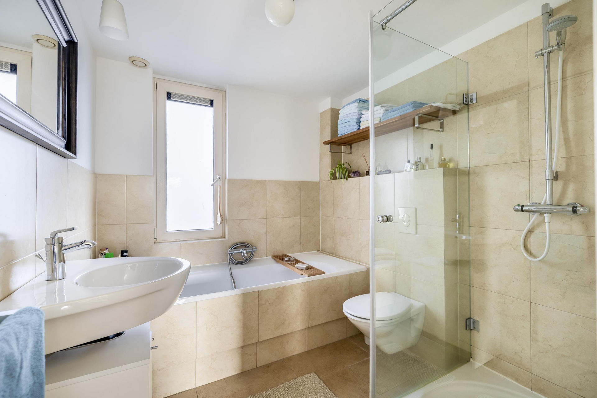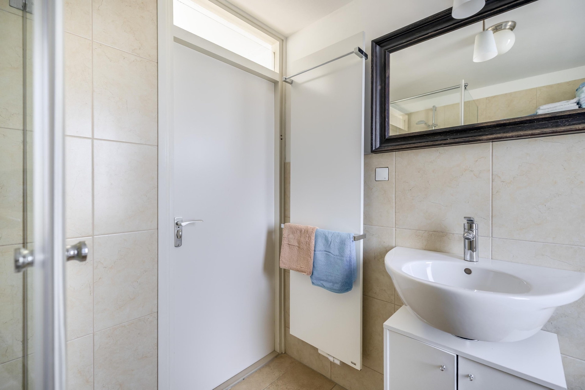 Naast de 3 slaapkamers op de 1e verdieping vind je hier de keurige en ruime badkamer in lichte kleurstelling die is voorzien van ligbad, douche, 2e toilet en design radiator.