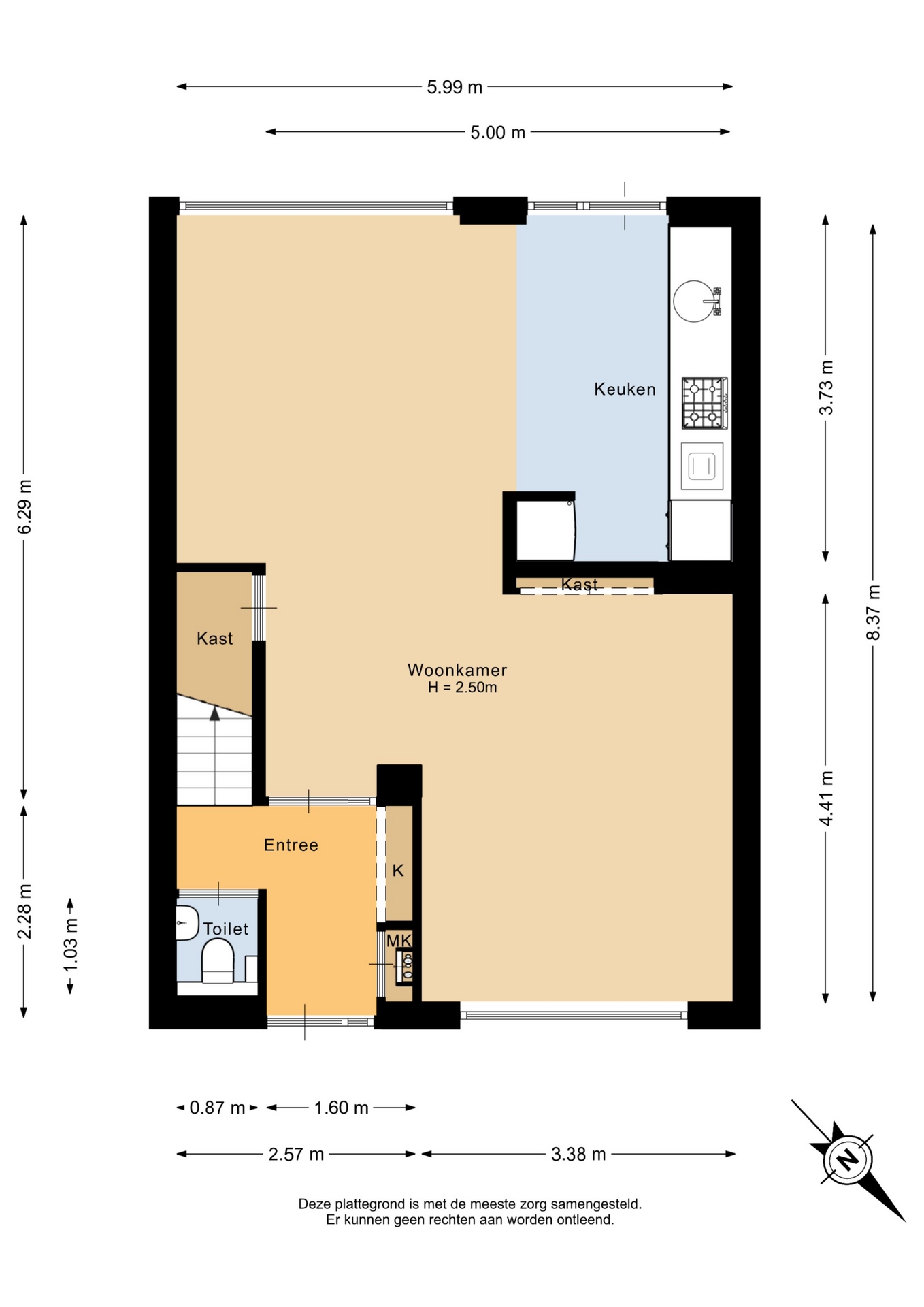 “Deze informatie is door ons met de nodige zorgvuldigheid samengesteld. Onzerzijds wordt echter geen enkele aansprakelijkheid aanvaard voor enige onvolledigheid, onjuistheid of anderszins, dan wel de gevolgen daarvan. Alle opgegeven maten en oppervlakten zijn indicatief.”