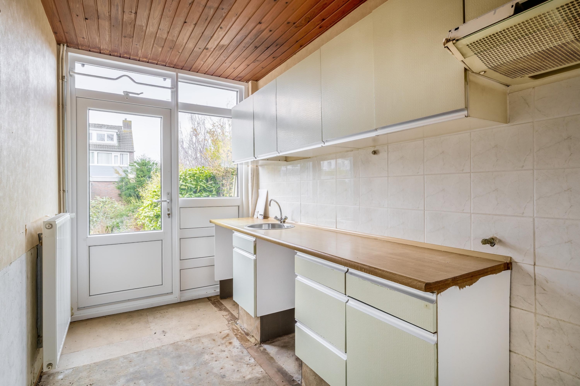 Entree van de woning via de voortuin; hal met meterkast, trapkast, toilet. Lichte doorzoon woonkamer en gesloten keuken voorzien van een eenvoudig keukenblok. Via de keuken toegang tot de ruime zonnige achtertuin met aan de achterzijde een stenen berging met elektra en achterom.