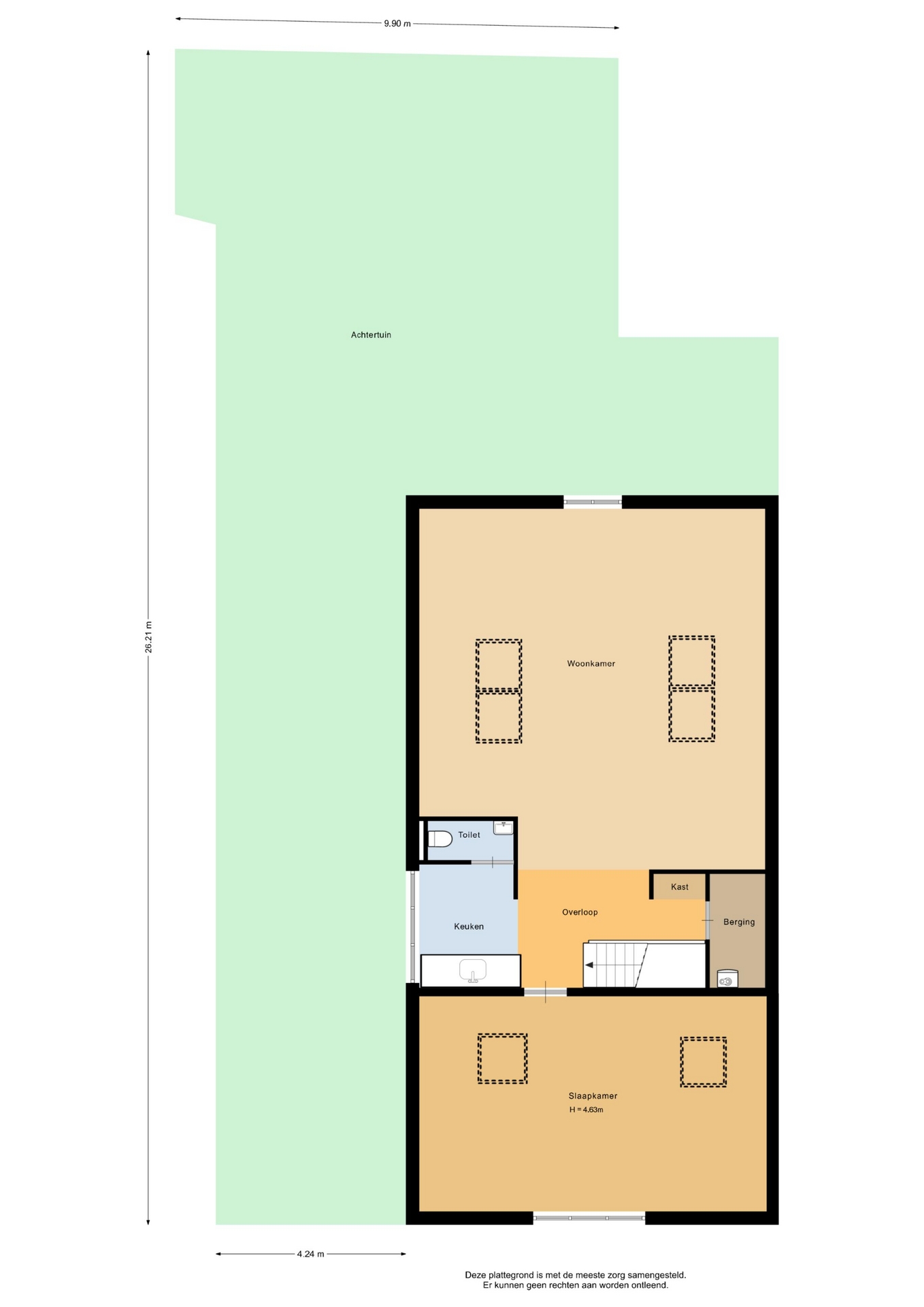 “Deze informatie is door ons met de nodige zorgvuldigheid samengesteld. Onzerzijds wordt echter geen enkele aansprakelijkheid aanvaard voor enige onvolledigheid, onjuistheid of anderszins, dan wel de gevolgen daarvan. Alle opgegeven maten en oppervlakten zijn indicatief.”