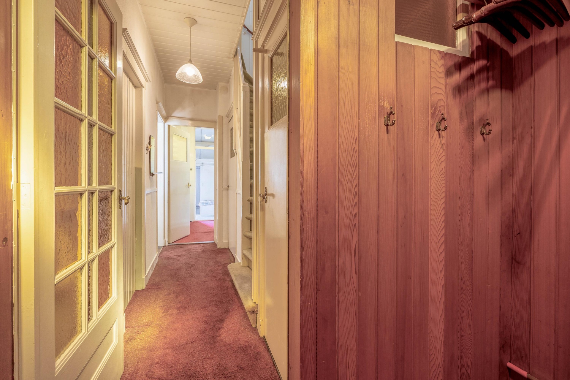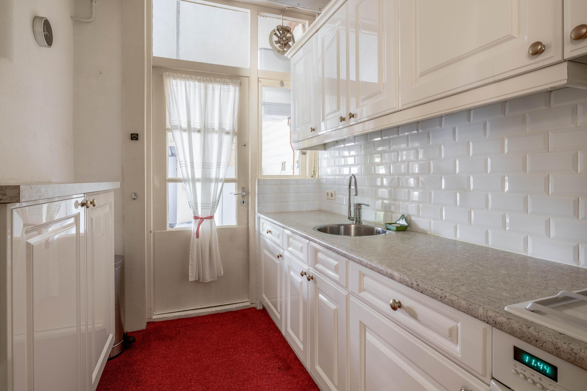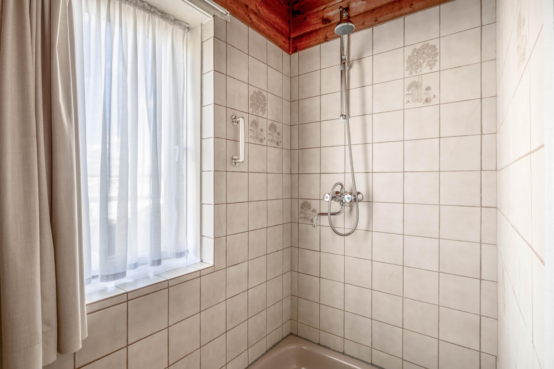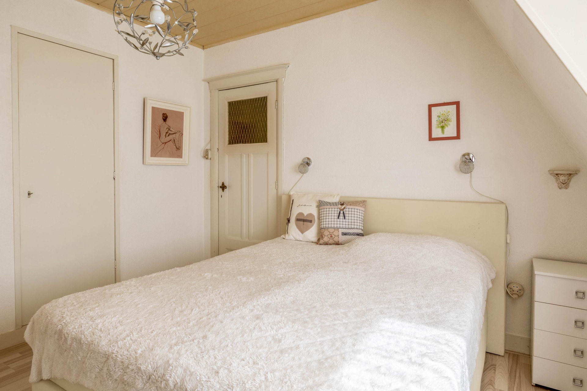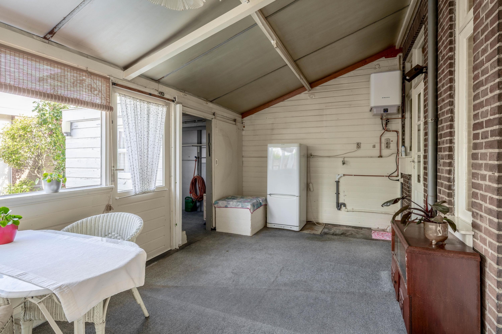 Bij binnenkomst in de hal voel je direct de sfeer van het huis. De woonkamer is licht en heeft nog originele elementen, zoals de erker aan de voorzijde die zorgt voor extra lichtinval en karakter. Er is plek voor een comfortabele zithoek en eettafel, en via de keuken met een verzorgde keukeninrichting loop je zo naar de serre aan de achterzijde met toegang tot de tuin. De afwerking is gedateerd, maar wie hier doorheen kijkt ziet meteen het potentieel: een lichte leefruimte met mooie basis.