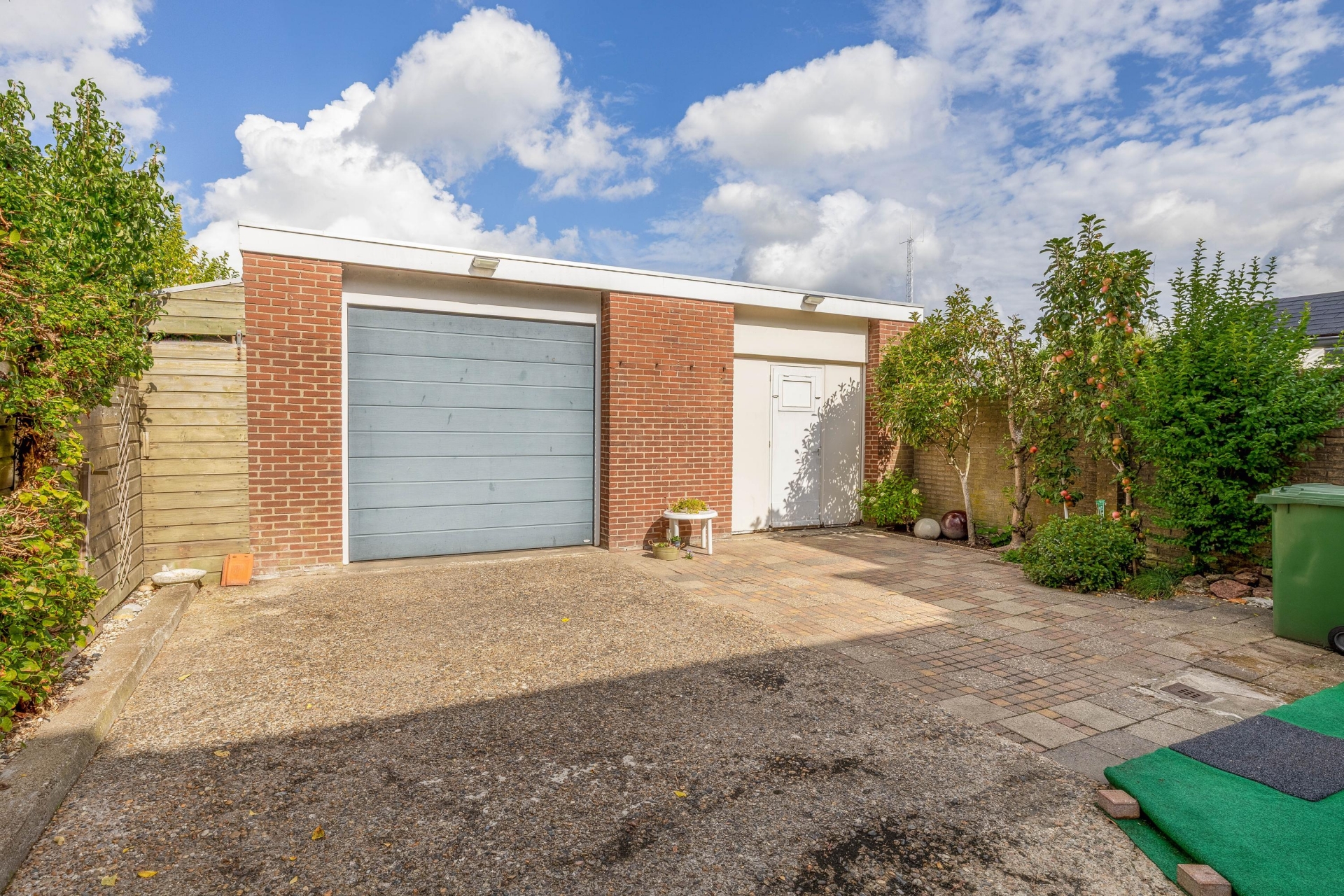 Achter het huis ligt een verzorgde achtertuin met volop mogelijkheden voor vergroening, een veranda of speelplek. Uniek is de dubbele garage aan de achterzijde met een elektrische sectionaldeur: ideaal voor wie extra opslag, een hobbyruimte of een werkplaats zoekt. De beide garages zijn bereikbaar via de zijkant van de woning aan de achterzijde van het perceel, waardoor je ook qua parkeren en bereikbaarheid goed zit.