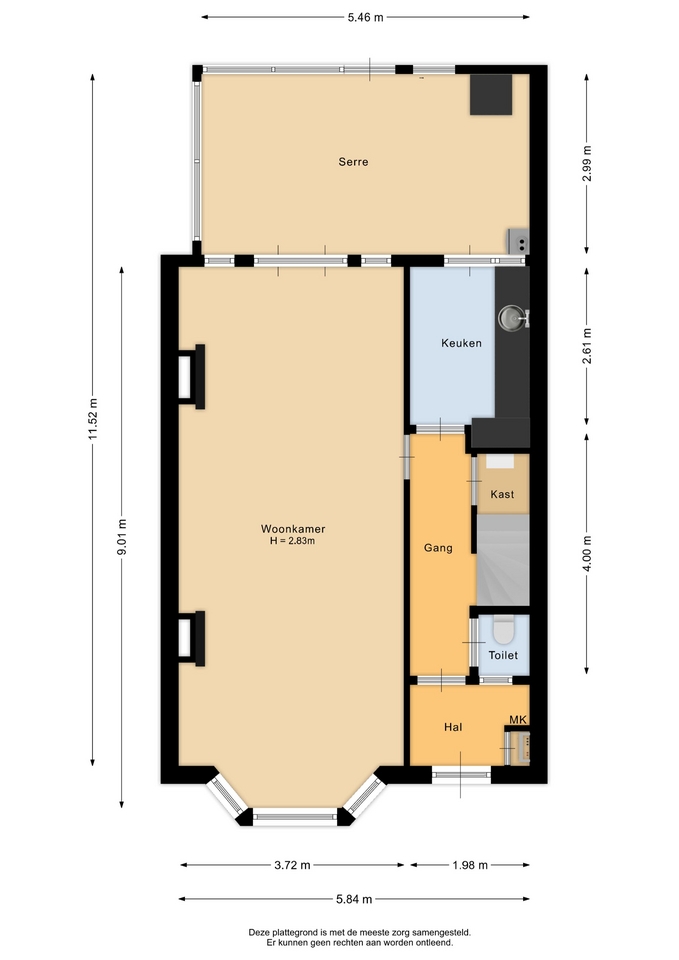 "Deze informatie is door ons met de nodige zorgvuldigheid samengesteld. Onzerzijds wordt echter geen enkele aansprakelijkheid aanvaard voor enige onvolledigheid, onjuistheid of anderszins, dan wel de gevolgen daarvan. Alle opgegeven maten en oppervlakten zijn indicatief. Van toepassing zijn de NVM voorwaarden".