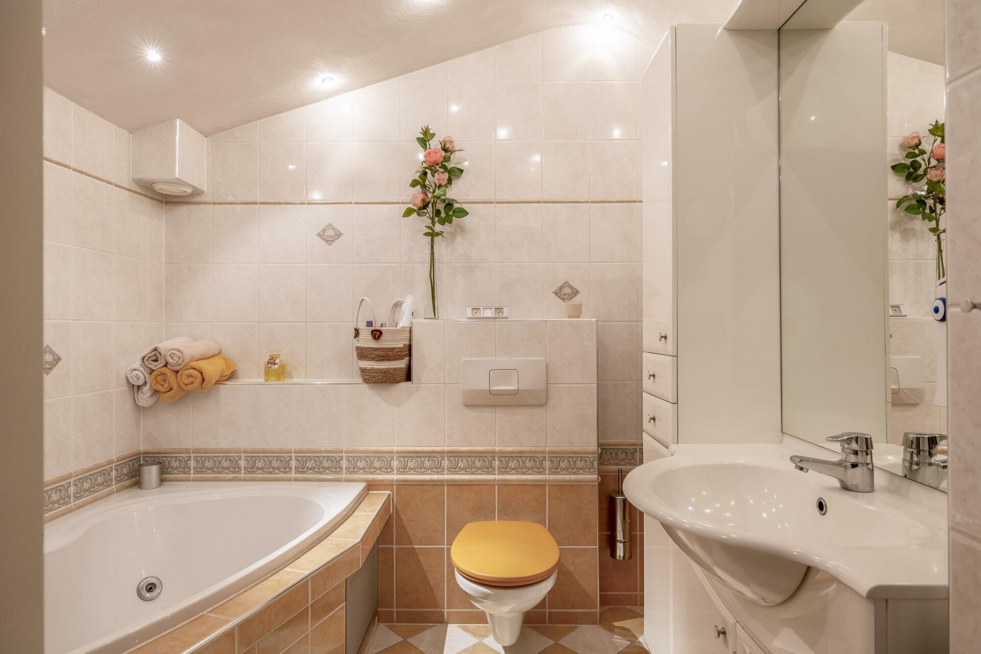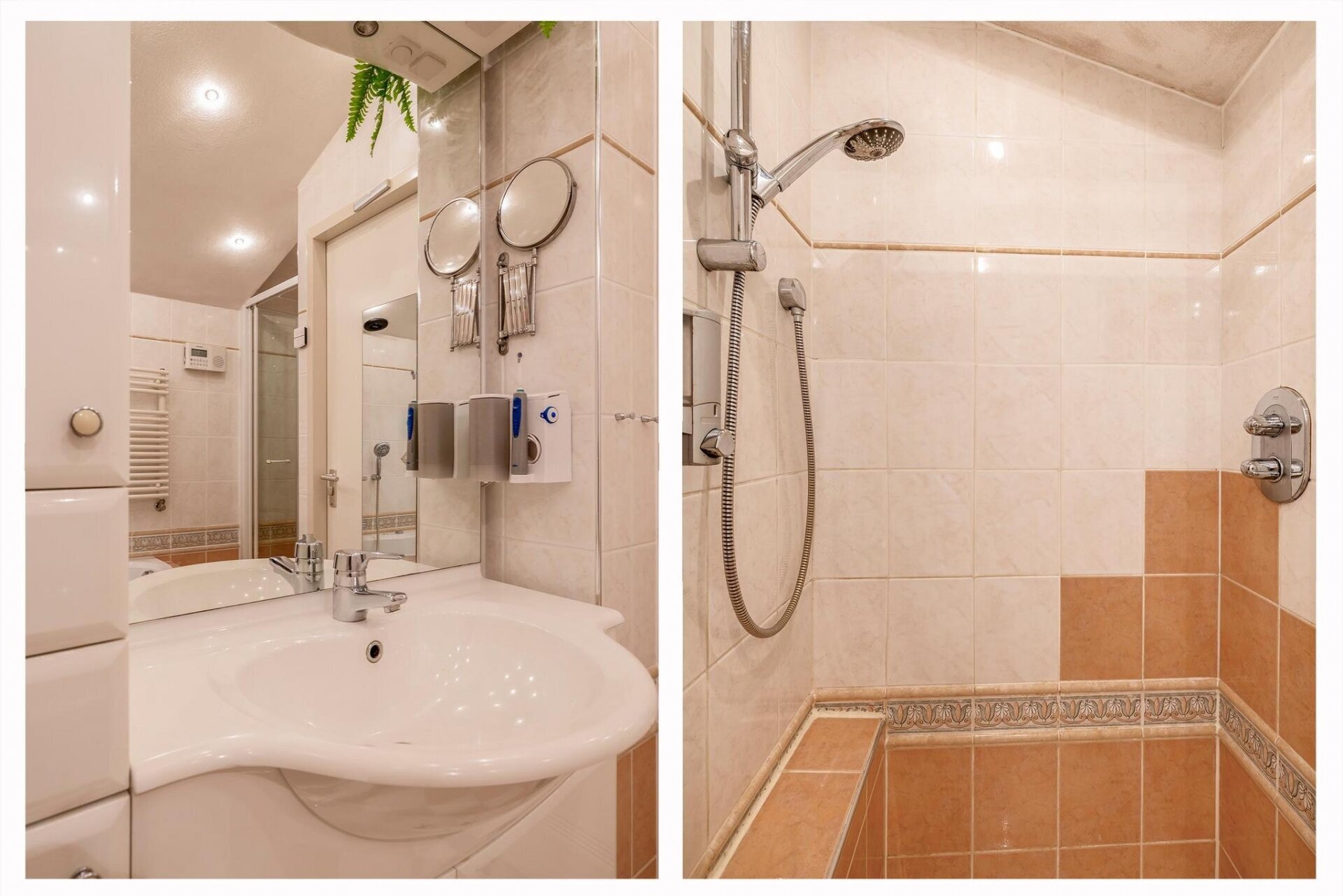 - Nette badkamer met ligbad (jacuzzi), douche, toilet en wastafelmeubel