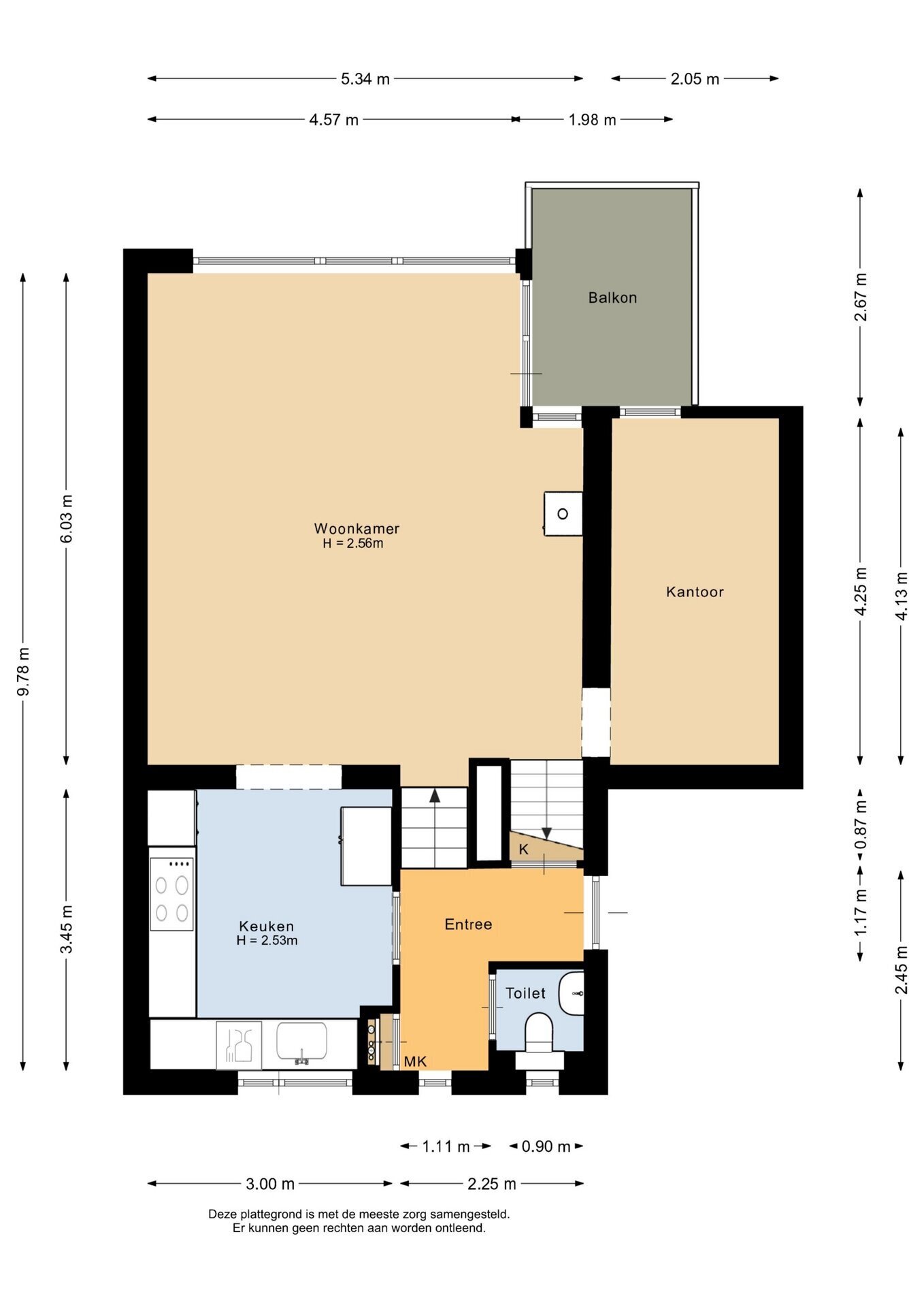 “Deze informatie is door ons met de nodige zorgvuldigheid samengesteld. Onzerzijds wordt echter geen enkele aansprakelijkheid aanvaard voor enige onvolledigheid, onjuistheid of anderszins, dan wel de gevolgen daarvan. Alle opgegeven maten en oppervlakten zijn indicatief.”