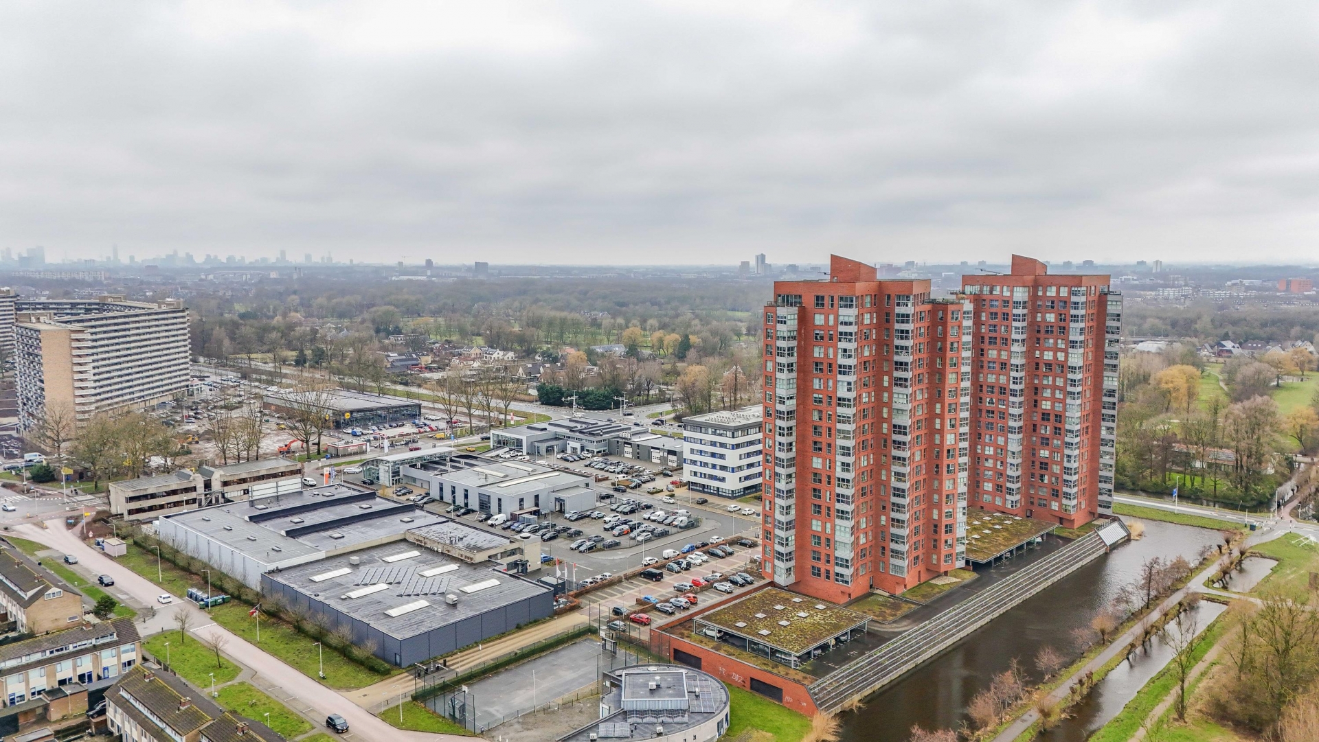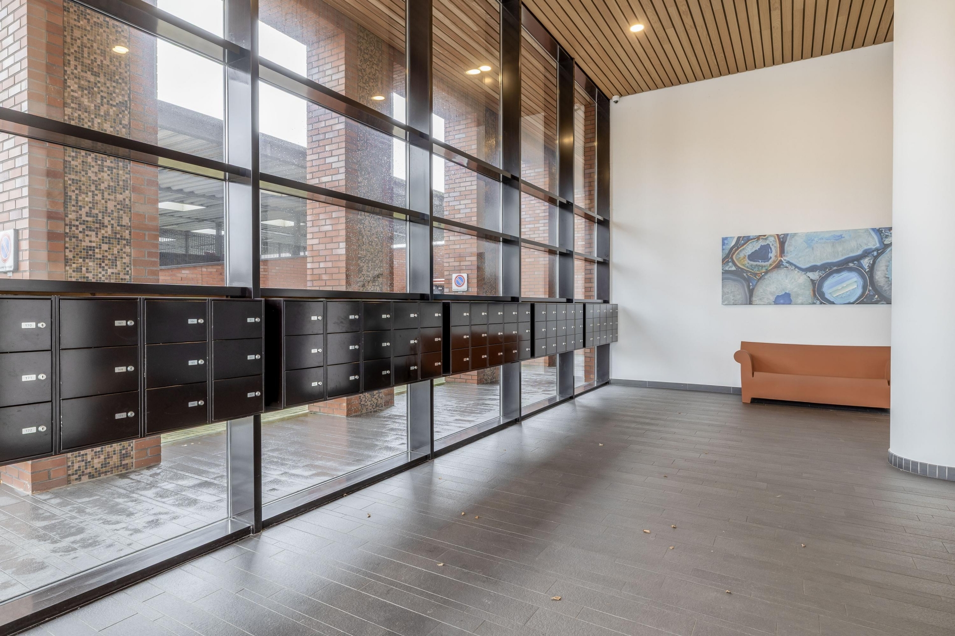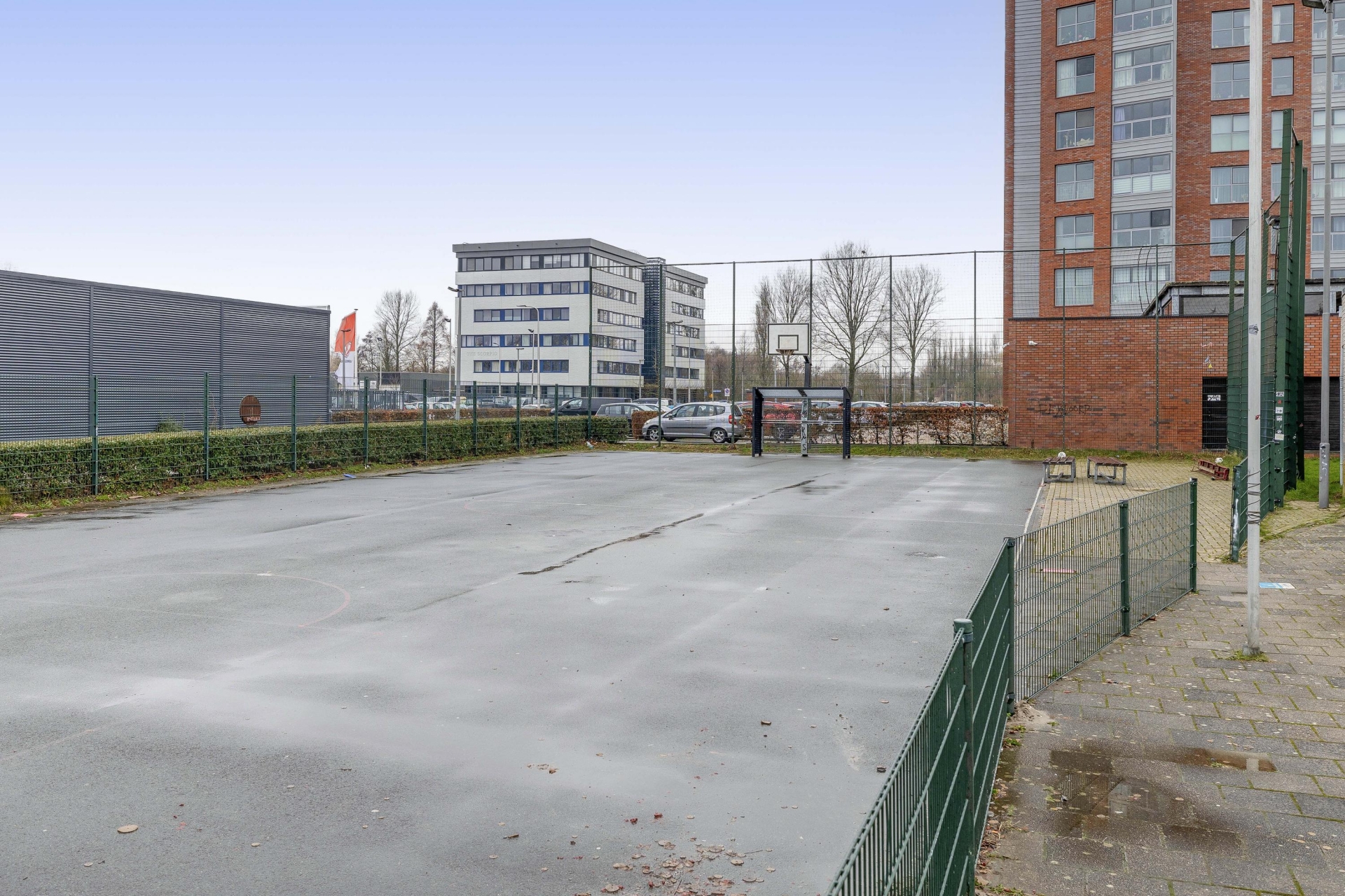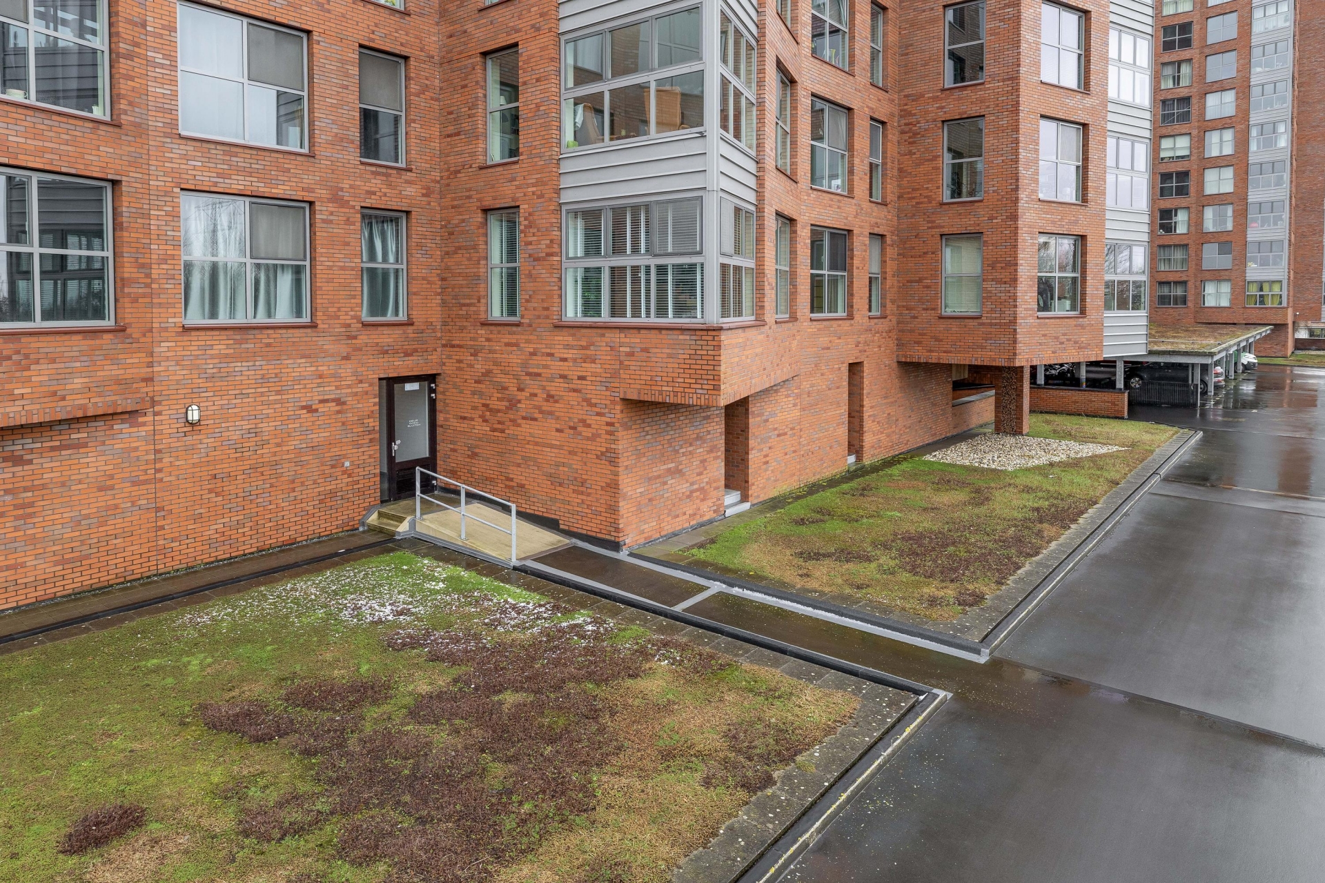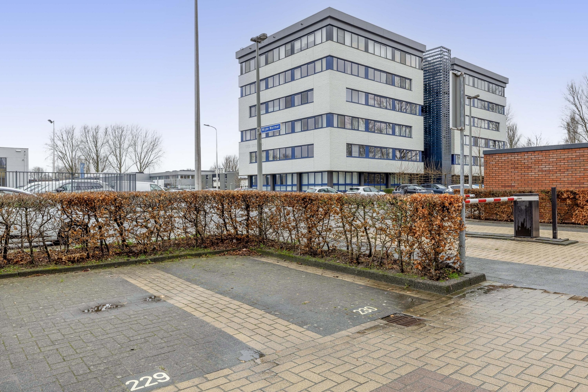 Via het afgesloten parkeerterrein is er parkeergelegenheid voor bezoek. Op dit parkeerterrein bevindt zicht tevens de parkeerplaats die bij het appartement hoort (nummer 230). Afgesloten entree, centrale hal met toegang tot de trappenhuizen en liften. Tevens is er vanaf hier toegang tot de privé berging.