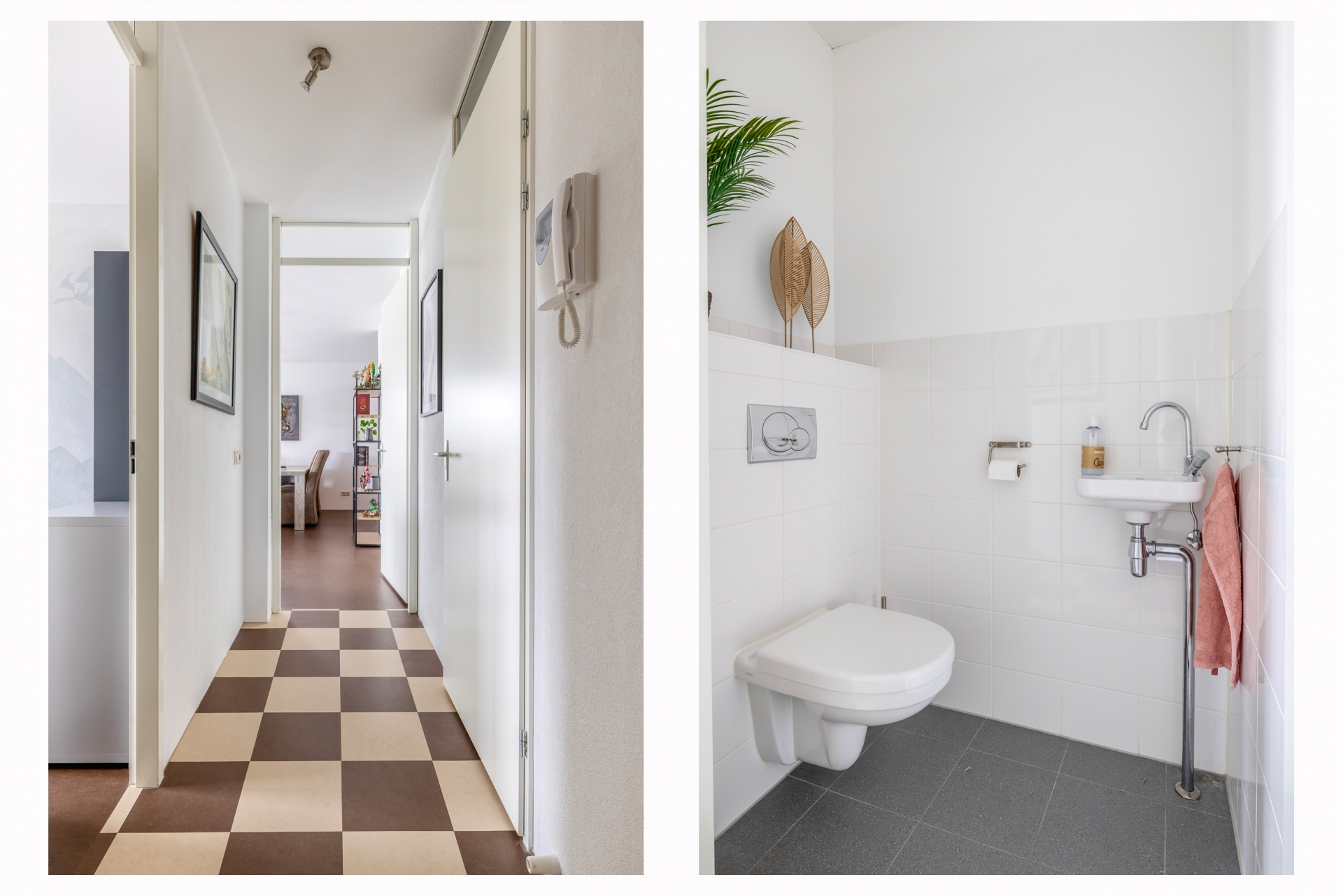 Entree/hal met videofoon en de meterkast. Vanuit de hal is er verder toegang tot het toilet, de meterkast, de badkamer en de 2 slaapkamers. De badkamer is volledig betegeld en voorzien van een 2e toilet, een douche en een wastafel met meubel. De aanwezige slaapkamers hebben een oppervlakte van circa 9 en 13 m². Zodra je de woonkamer binnenstapt, valt direct het adembenemende panoramische uitzicht en de overvloedige lichtinval op. Dankzij de volledig te openen ramen kun je volop van de zon genieten, wat zorgt voor een uniek ‘balkongevoel’ en een fijne verbinding met buiten. De open keuken is uitgerust met diverse inbouwapparaten, zodat het u aan niets ontbreekt. Naast de keuken is er een inpandige berging met de wasmachine-aansluiting en een kast met de WTW-unit.