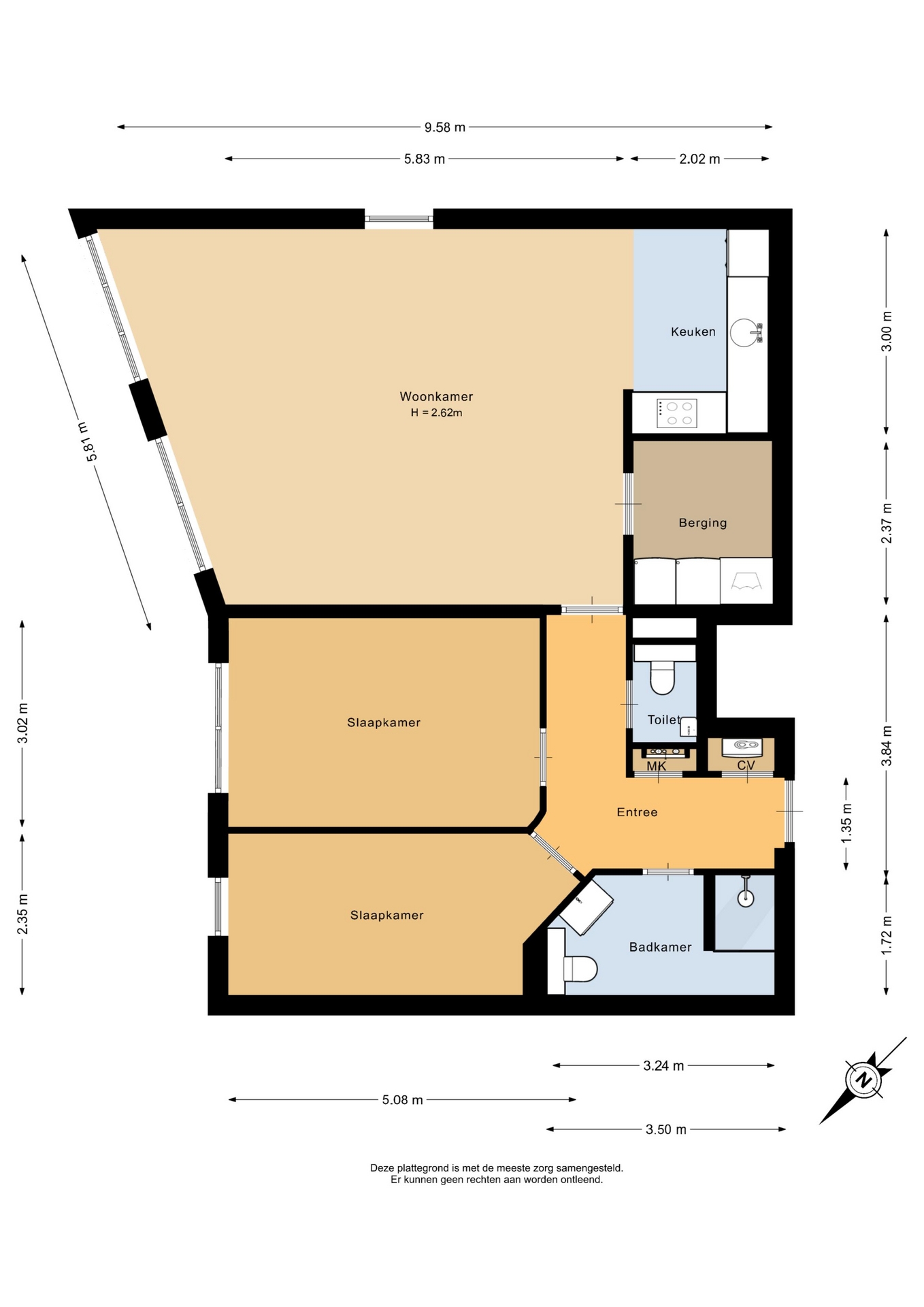“Deze informatie is door ons met de nodige zorgvuldigheid samengesteld. Onzerzijds wordt echter geen enkele aansprakelijkheid aanvaard voor enige onvolledigheid, onjuistheid of anderszins, dan wel de gevolgen daarvan. Alle opgegeven maten en oppervlakten zijn indicatief.”