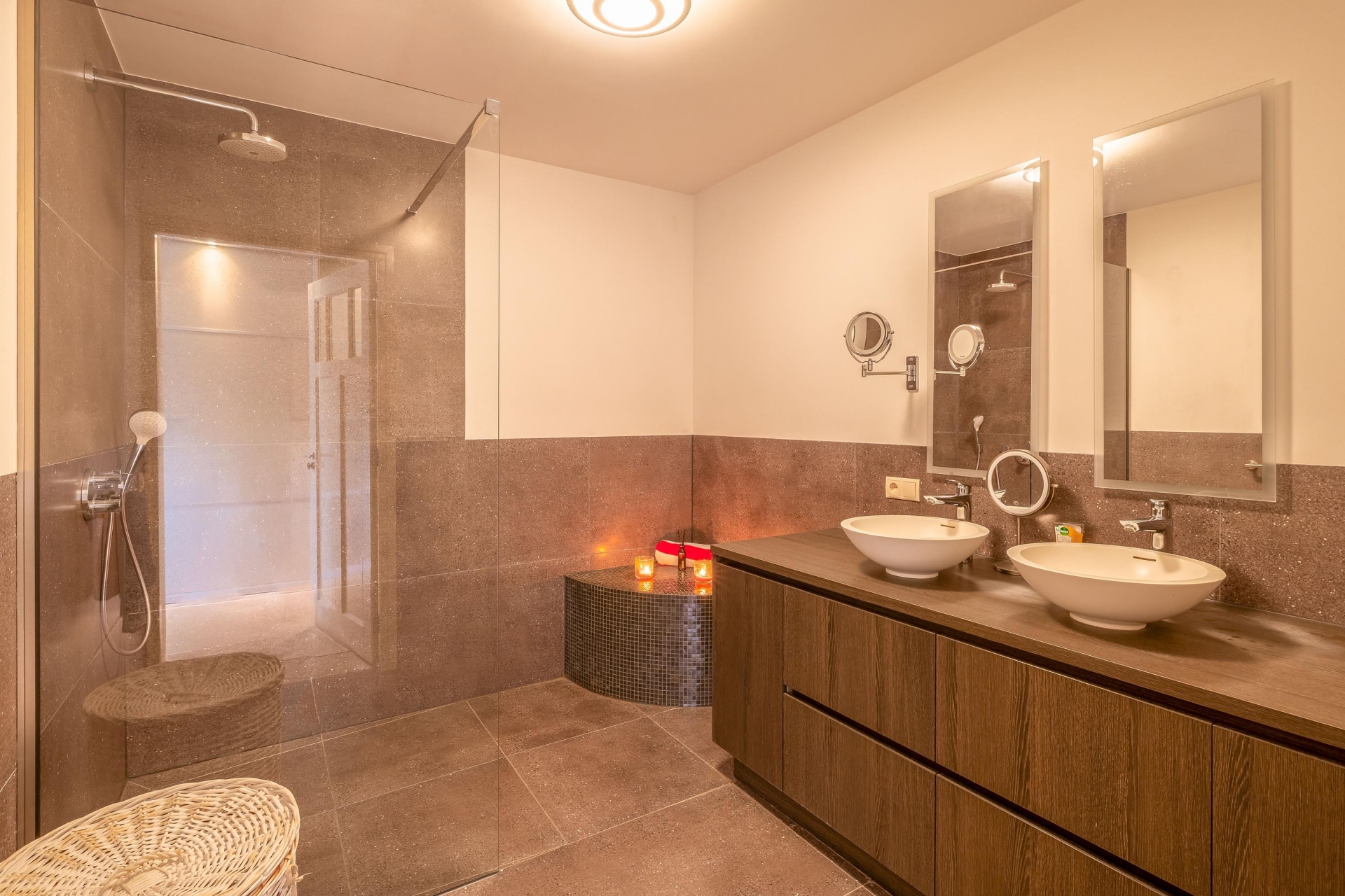 Ook qua comfort is aan alles gedacht. Het penthouse beschikt over twee badkamers die allebei vier jaar geleden zijn vernieuwd in dezelfde luxe stijl. Denk aan moderne tegels, dubbele wastafels en ruime inloopdouches. De tweede badkamer is extra bijzonder, want die beschikt over een eigen sauna. Ideaal om na een lange werkdag even volledig tot rust te komen.