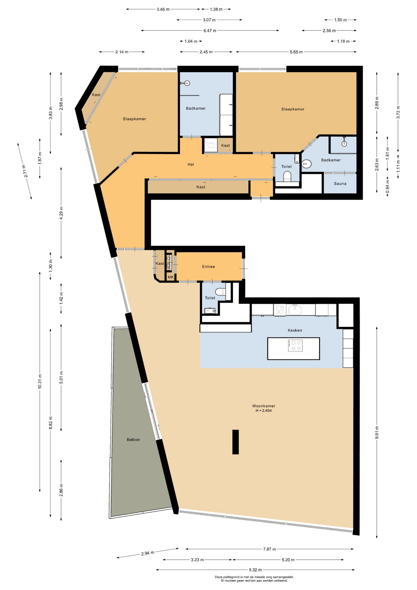 “Deze informatie is door ons met de nodige zorgvuldigheid samengesteld. Onzerzijds wordt echter geen enkele aansprakelijkheid aanvaard voor enige onvolledigheid, onjuistheid of anderszins, dan wel de gevolgen daarvan. Alle opgegeven maten en oppervlakten zijn indicatief.”