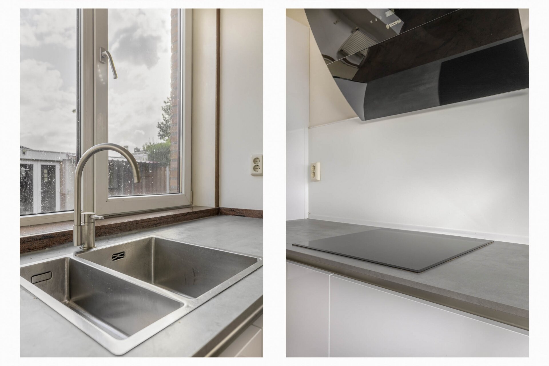Wat direct opvalt, is de royale aanbouw aan de zijkant van het huis. Deze aanbouw van 28 m² is compleet ingericht met een moderne keuken v.v. diverse inbouwapparatuur, badkamer met lichtkoepel én een ruime slaapkamer. Hiermee is het huis perfect levensloopbestendig: slapen en douchen op de begane grond is hier gewoon mogelijk. Ook ideaal voor mantelzorg, een inwonende ouder of als zelfstandige studio voor een ouder kind. De doorzon woonkamer met veel lichtinval en een gezellige open haard biedt uitzicht op de diepe voortuin en ruime achtertuin. De originele keuken is in de aanbouw geplaatst, waardoor er extra ruimte is ontstaan. De badkamer op de begane grond is netjes betegeld en voorzien van een douche, wastafel met meubel en wasmachine aansluiting. Ook het toilet beneden is separaat bereikbaar.