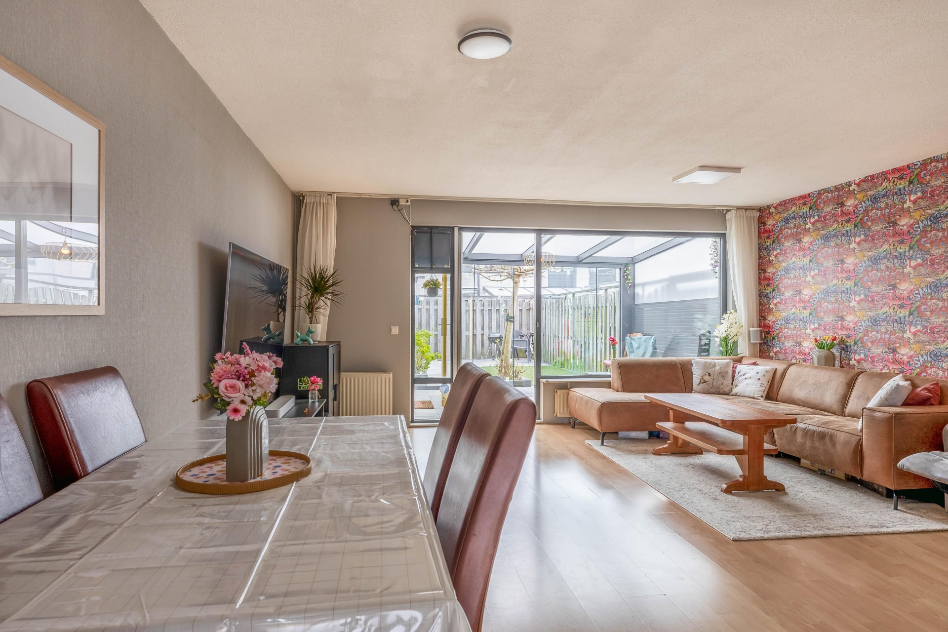 Zodra je binnenkomt valt direct de lichte en open sfeer op. De woonkamer is ruim opgezet en dankzij de grote raampartijen aan de achterzijde komt het daglicht mooi naar binnen. Er is meer dan genoeg plek voor een gezellige zithoek en een royale eettafel waar je met vrienden of familie samenkomt. De verbinding met buiten is hier echt een pluspunt. Zo loop je zo de serre in, die een verlengstuk vormt van de woonkamer. Dit is zo’n plek waar je al vroeg in het voorjaar zit en tot laat in het najaar nog gebruik van maakt. Vanuit de serre kijk je uit op de verzorgde achtertuin, gelegen op het oosten. Een fijne plek om de dag te starten met een kop koffie in de zon.
