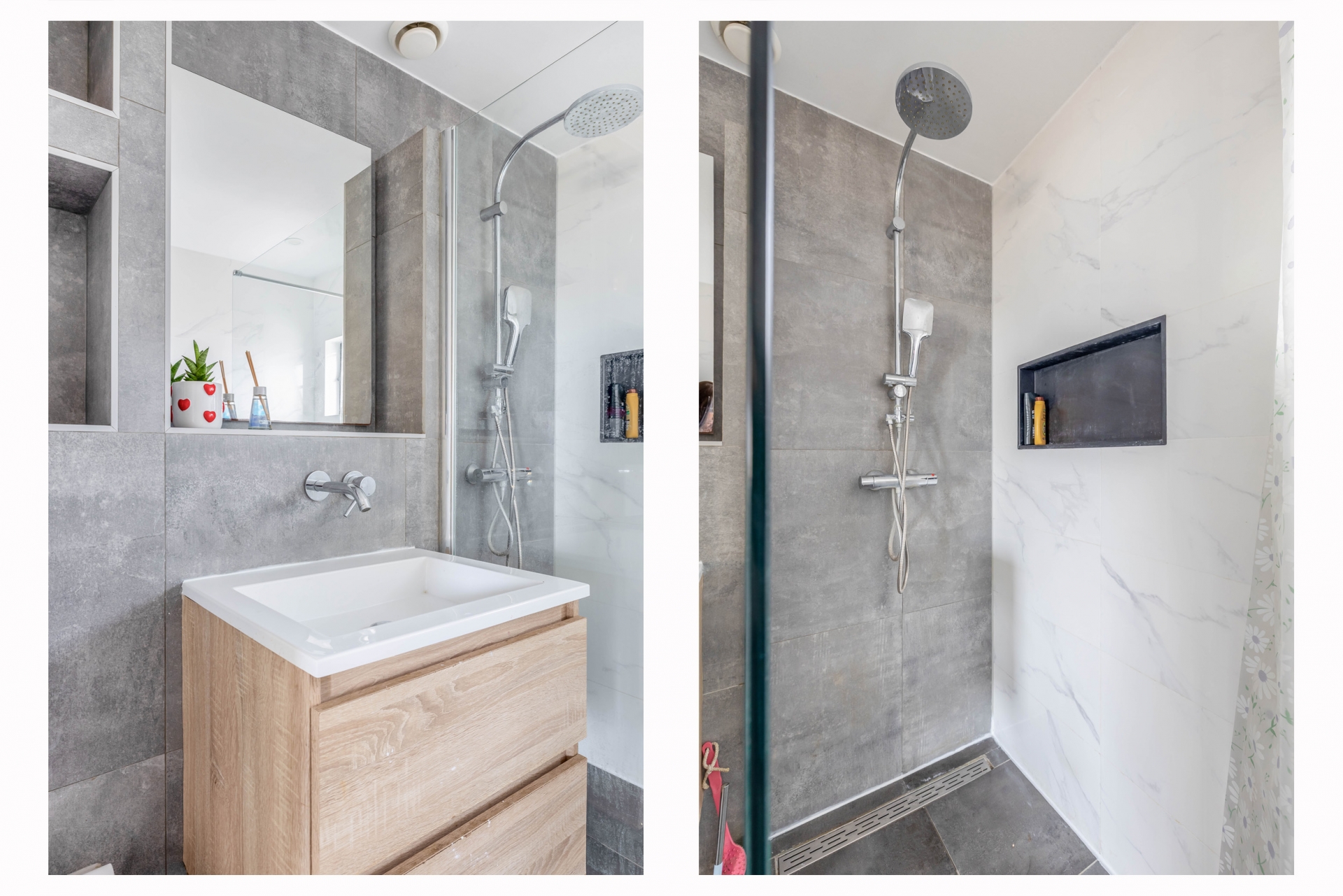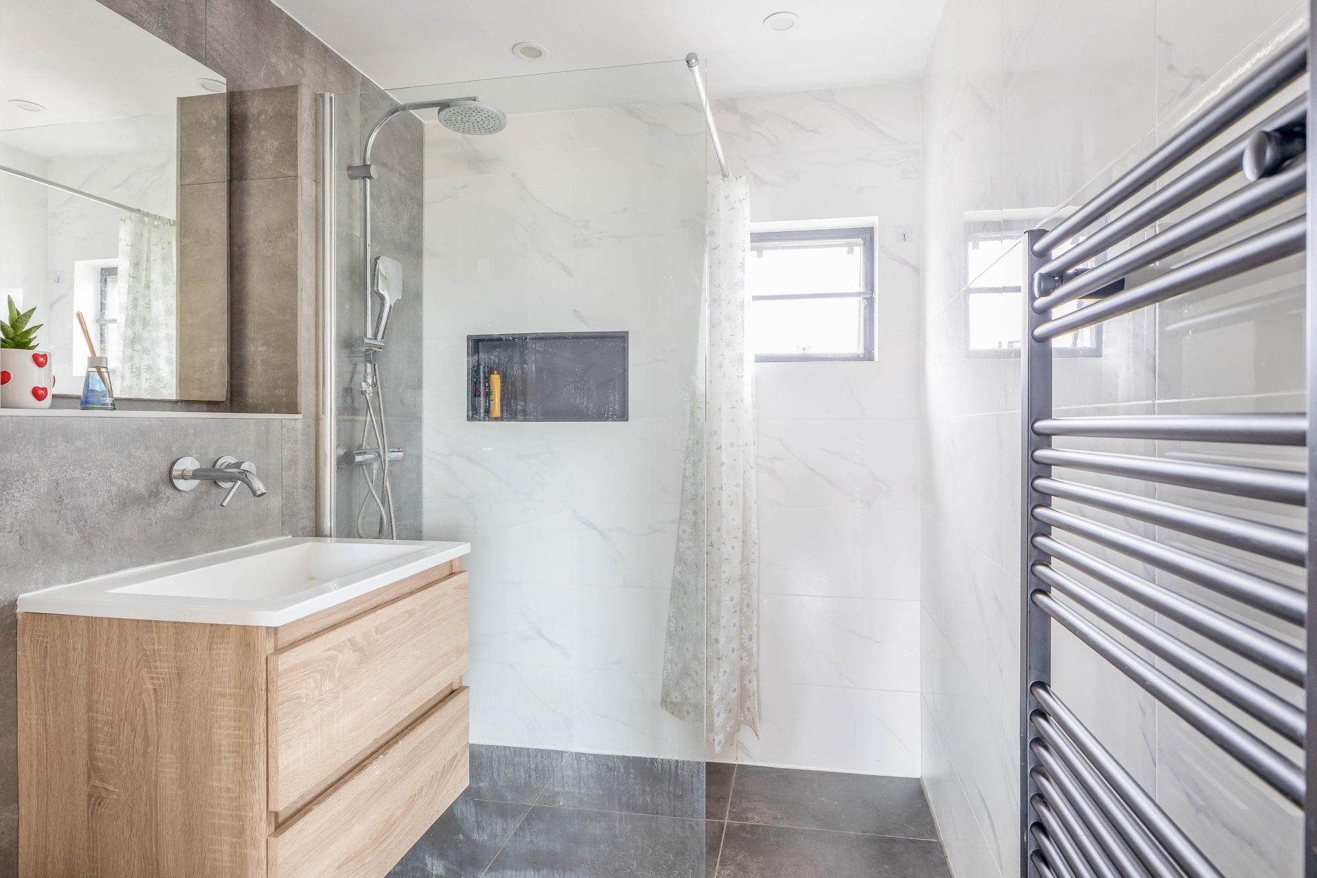 Op de eerste verdieping vind je drie volwaardige slaapkamers. De grootste slaapkamer biedt alle ruimte voor een tweepersoonsbed en een kledingkast. De andere kamers zijn perfect in te richten als kinderkamer, werkkamer of logeerkamer. Dit maakt het huis flexibel en geschikt voor verschillende levensfasen. De badkamer is modern uitgevoerd en straalt rust uit. Je beschikt hier over een ruime inloopdouche, een wastafelmeubel en een handdoekradiator. Dankzij het raam komt er prettig daglicht binnen en kun je goed ventileren. Tevens is er een praktische berging met wasmachine aansluiting.