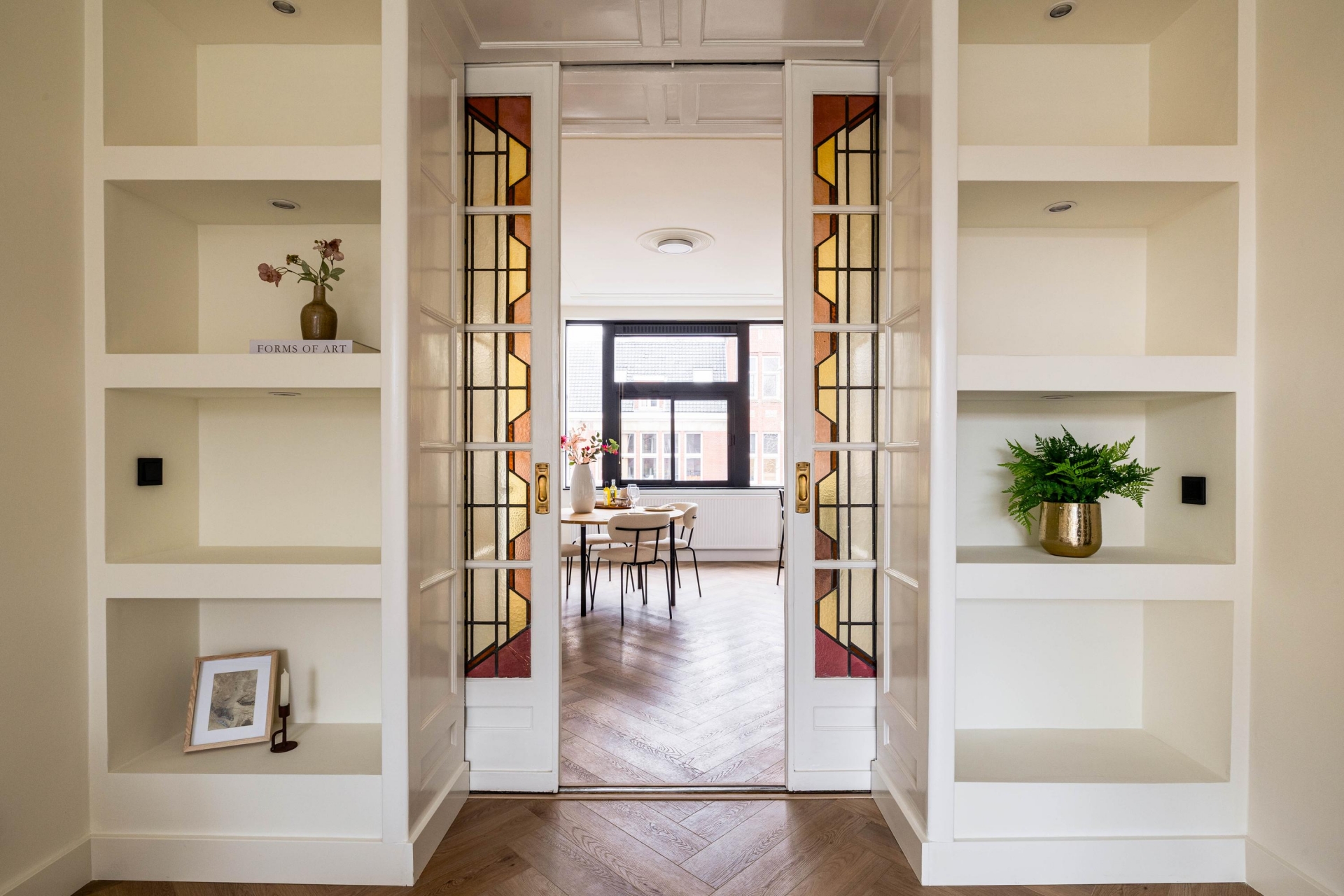 Vanaf het eerste moment voelt dit appartement solide en doordacht. De hoge plafonds, royale raampartijen en strakke afwerking zorgen voor rust en ruimte. Door het hele appartement ligt een pvc visgraatvloer die warmte, luxe en eenheid brengt. Elk detail is zorgvuldig gekozen, met als resultaat een woning die niet alleen mooi oogt, maar ook logisch en prettig aanvoelt.