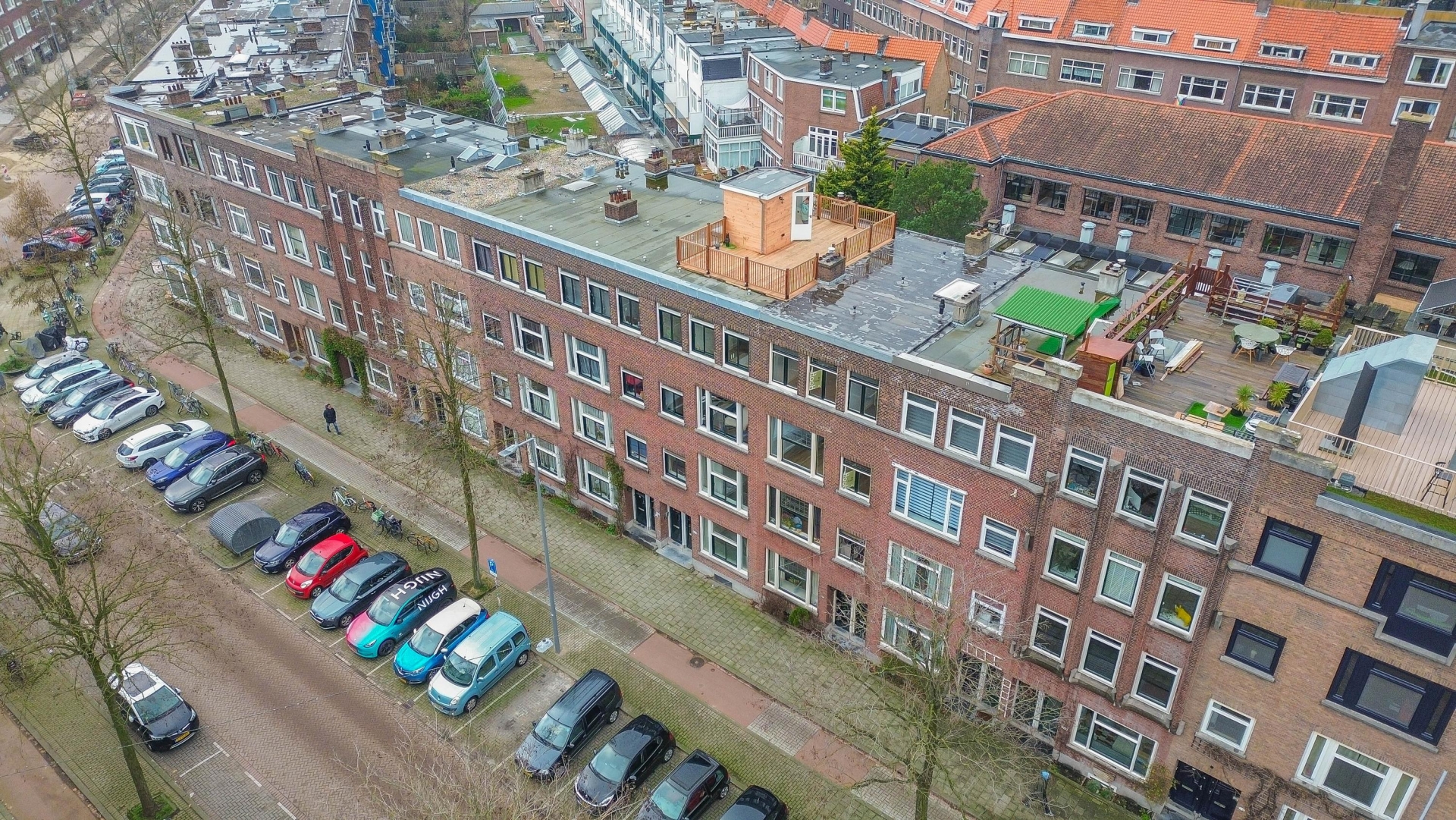 Als absoluut hoogtepunt beschikt dit appartement over een royaal dakterras op het zuiden. Een heerlijke buitenruimte waar je vanaf het vroege voorjaar tot laat in de avond van de zon kunt genieten. Of je nu kiest voor een loungeset, een grote eettafel of een combinatie van beide: hier creëer je moeiteloos je eigen oase midden in de stad. Het dakterras biedt verrassend veel privacy en voelt echt als een verlengstuk van de woning.