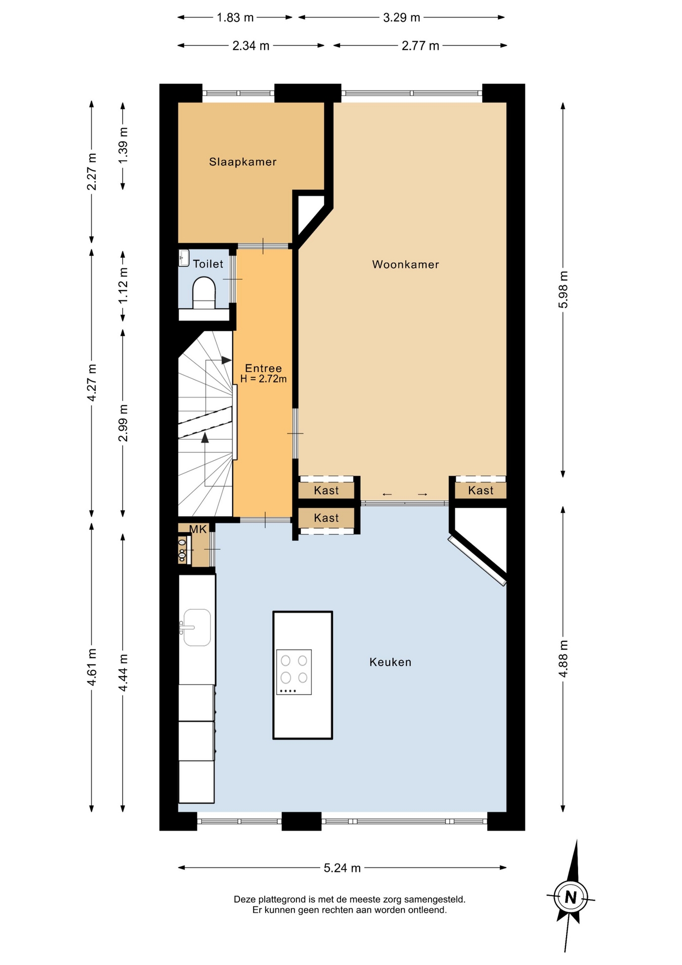 “Deze informatie is door ons met de nodige zorgvuldigheid samengesteld. Onzerzijds wordt echter geen enkele aansprakelijkheid aanvaard voor enige onvolledigheid, onjuistheid of anderszins, dan wel de gevolgen daarvan. Alle opgegeven maten en oppervlakten zijn indicatief.”