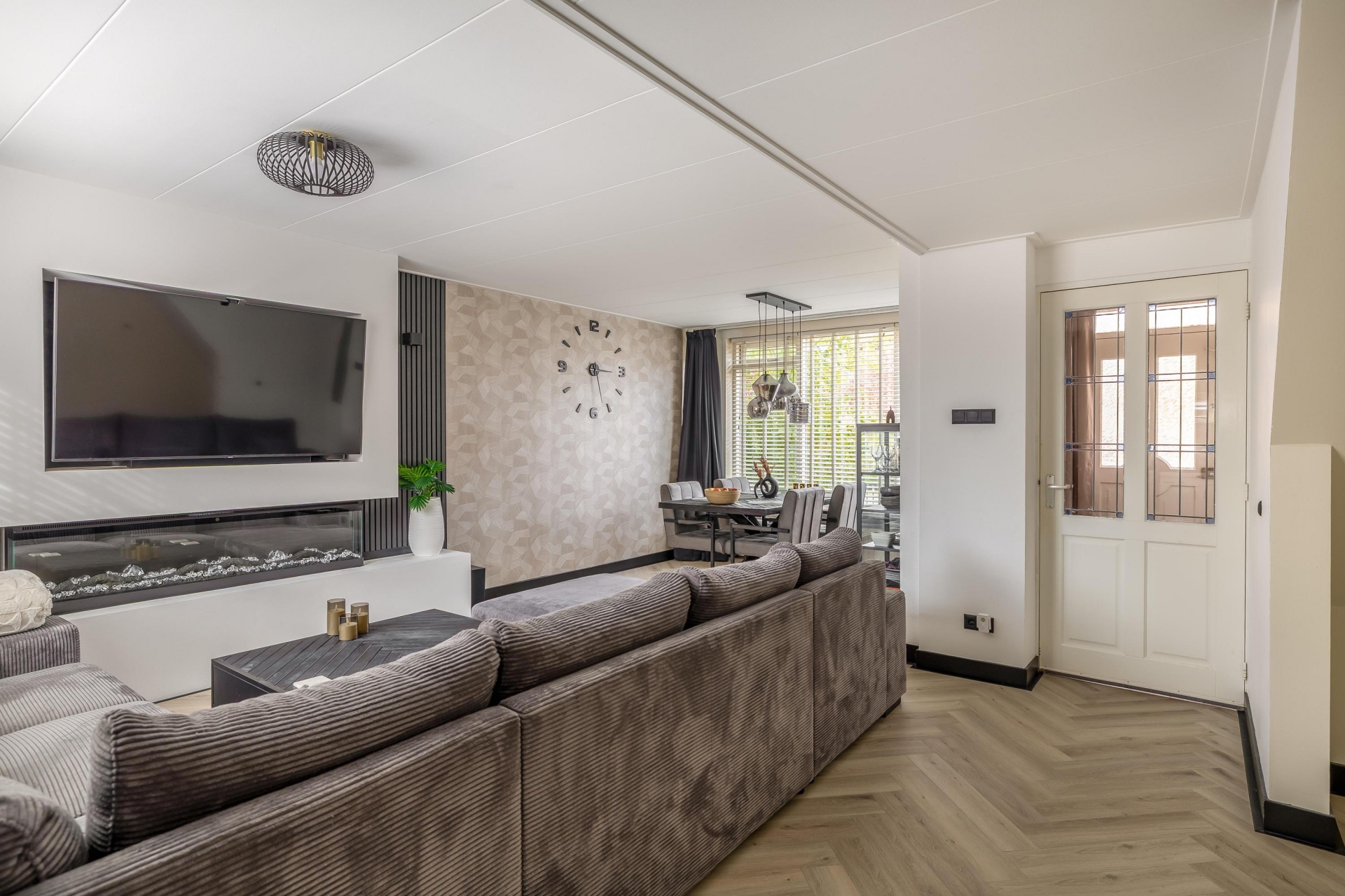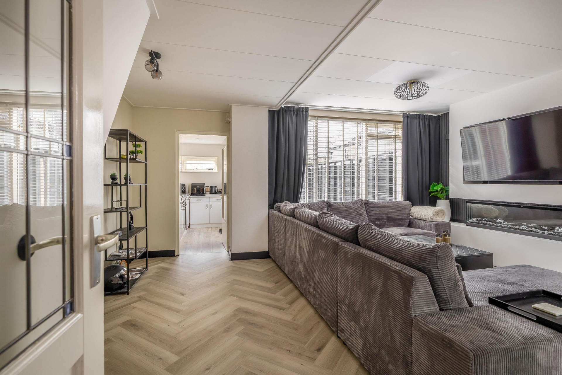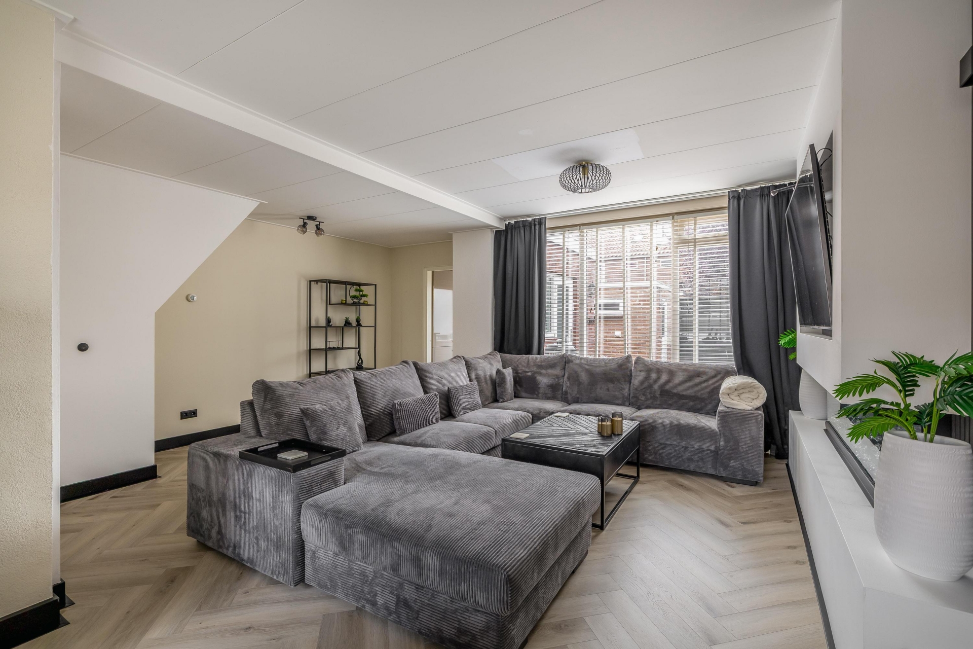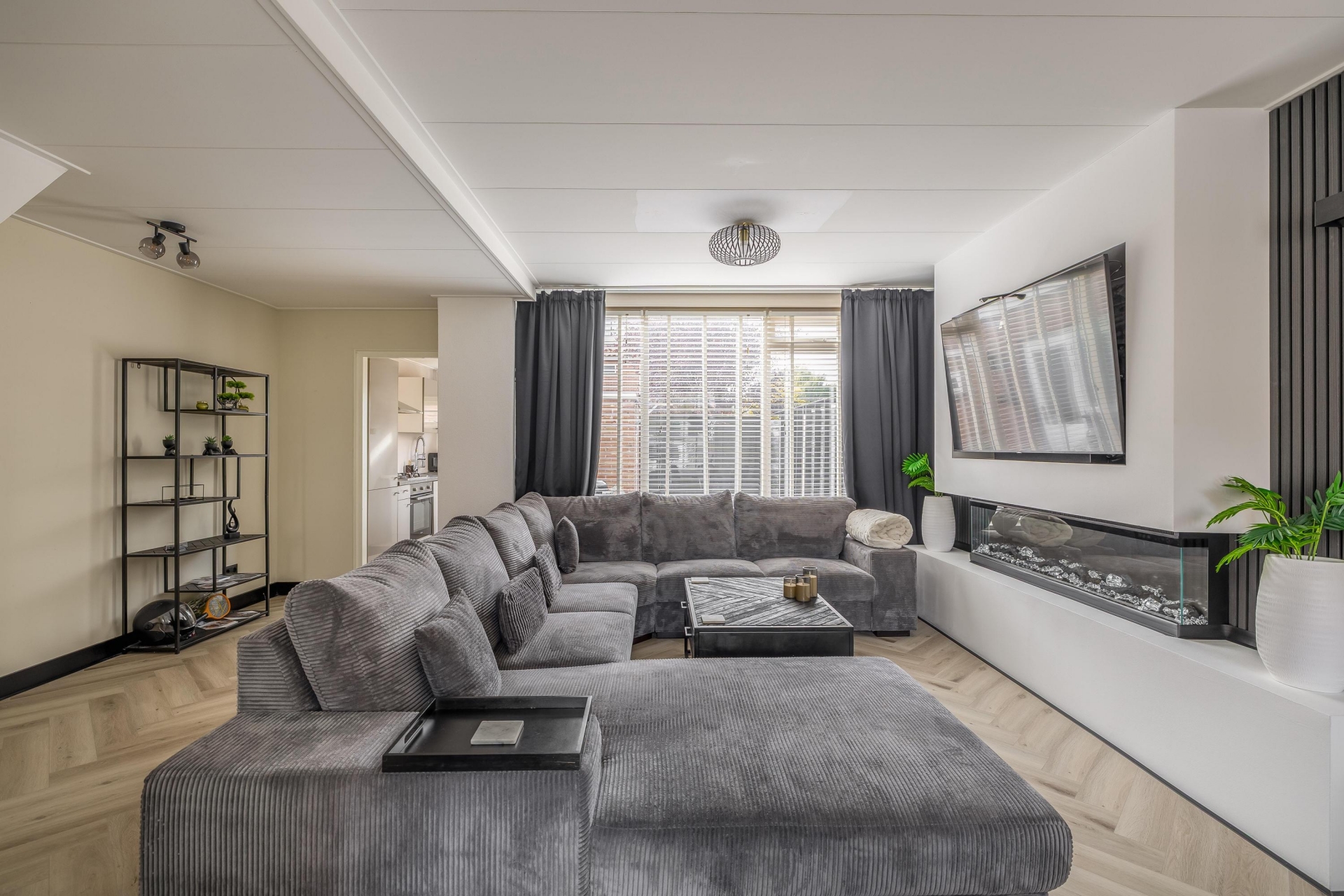 Bij binnenkomst valt meteen op hoe strak en verzorgd alles is afgewerkt. Op de begane grond ligt een moderne visgraatvloer – een stijlvolle en onderhoudsvriendelijke basis. De woonkamer is met z’n 32m² ruim opgezet en voorzien van een gezellige cinewall met elektrische haard, wat zorgt voor een knusse sfeer én een strak geheel. Door de grote ramen aan de voorzijde komt er veel natuurlijk licht binnen. Aan de achterzijde is het huis uitgebouwd; hier vind je de de keuken met directe toegang tot de tuin via een loopdeur. Alles voelt licht, ruim en eigentijds aan.