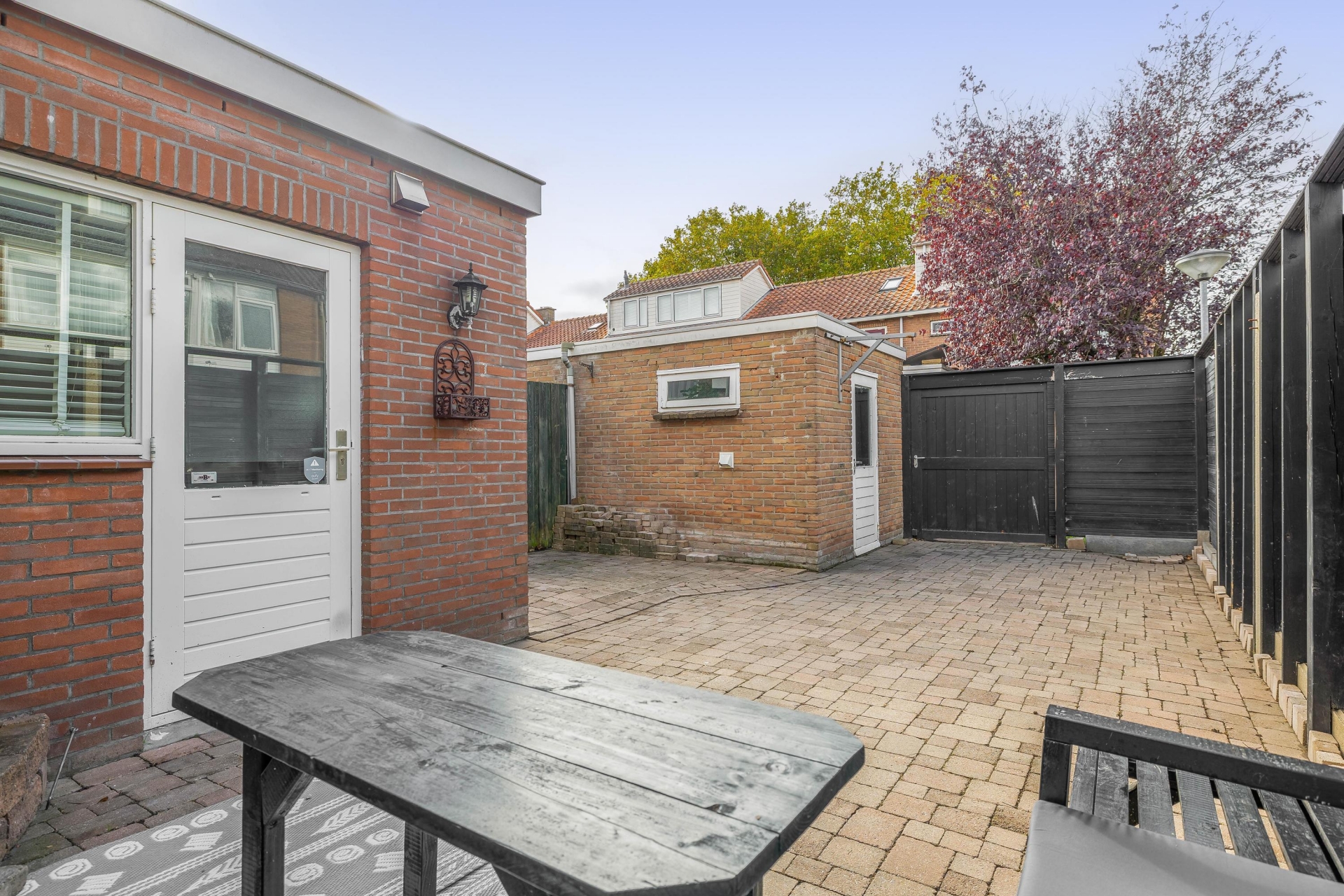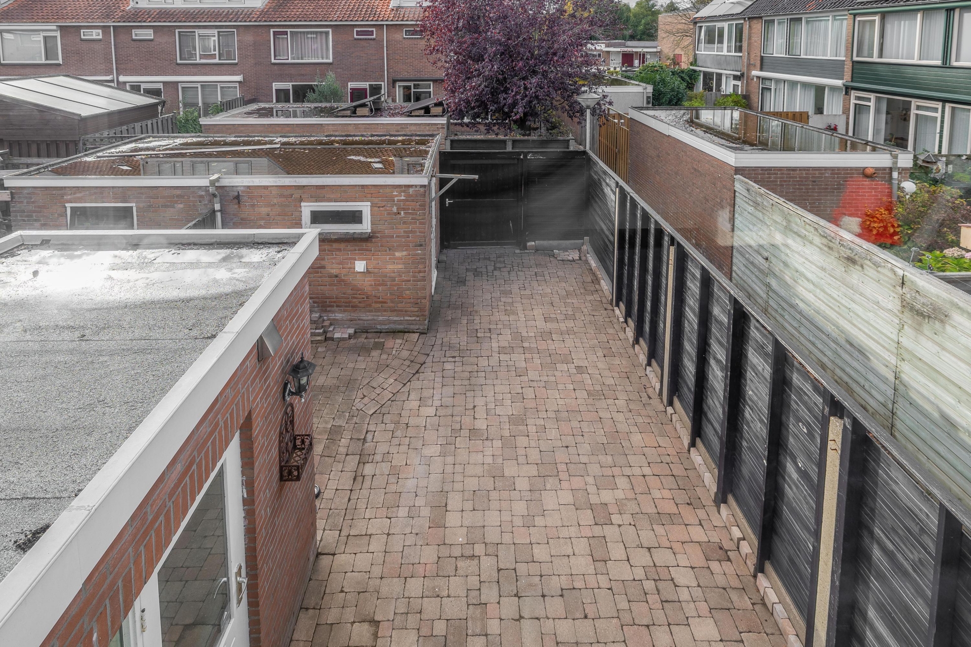 De achtertuin ligt op het westen en is grotendeels bestraat, wat het onderhoud lekker makkelijk maakt. Een grote poort aan de achterzijde biedt toegang tot de achterom – ideaal voor fietsen of een motor. Achterin de tuin staat een stenen berging met elektra. Dankzij de ligging op het westen geniet je hier vanaf de middag tot in de avond van de zon. Verder is het een rustige straat in een fijne woonwijk, met in de directe omgeving meerdere speeltuinen, basisscholen, supermarkten en openbaar vervoer. Binnen een paar minuten zit je op de N57 of rijd je richting het winkelcentrum.