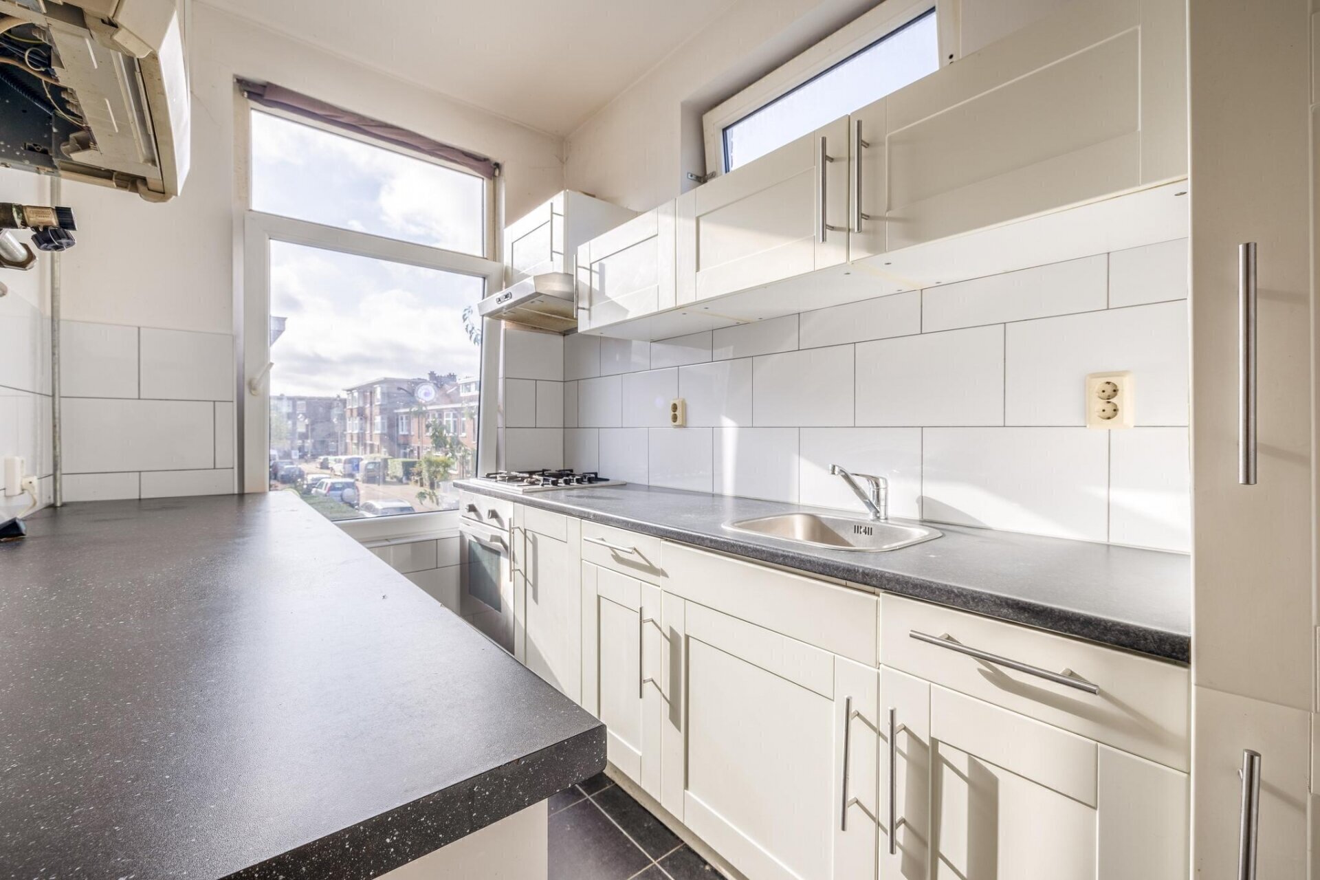 OP DE HOEK VAN DE WITHUYSSTRAAT EN DE VAN DER HOOPSTRAAT LIGT DIT LICHTE, 2-KAMER- HOEKAPPARTEMENT (VOORMALIG 3 KAMERS) OP DE 1E ETAGE MET LEUK UITZICHT OVER HET AAN DE VOORZIJDE GELEGEN SPORTVELD. INDELING: Open portiek met trap naar de eerste etage; entree van de woning middels hal met vaste kast en meterkast; toilet; woonkamer met suiteseparatie en 2 vaste kasten;…