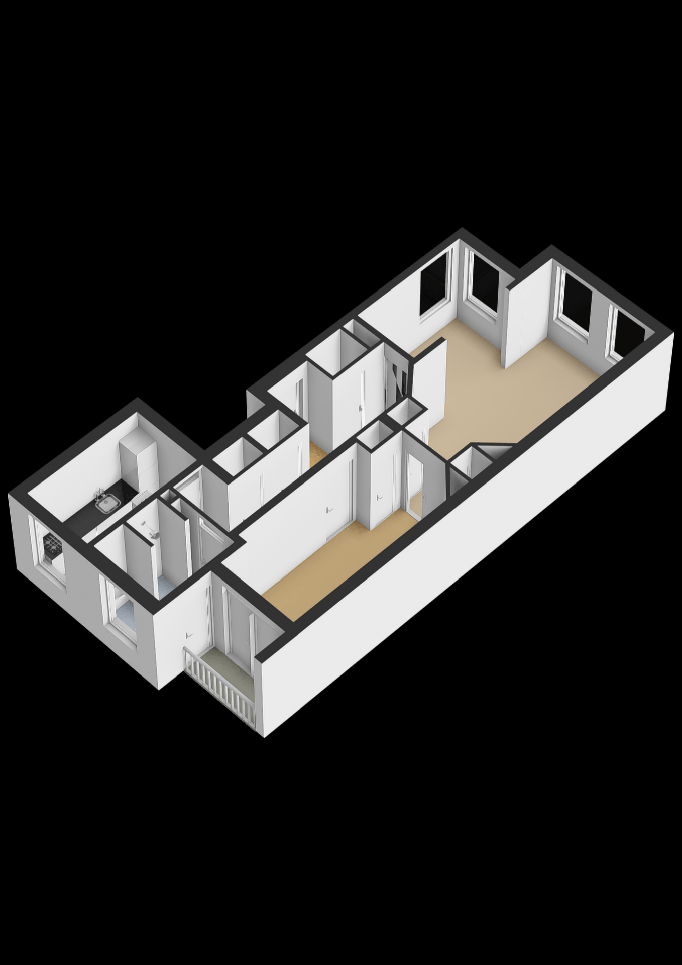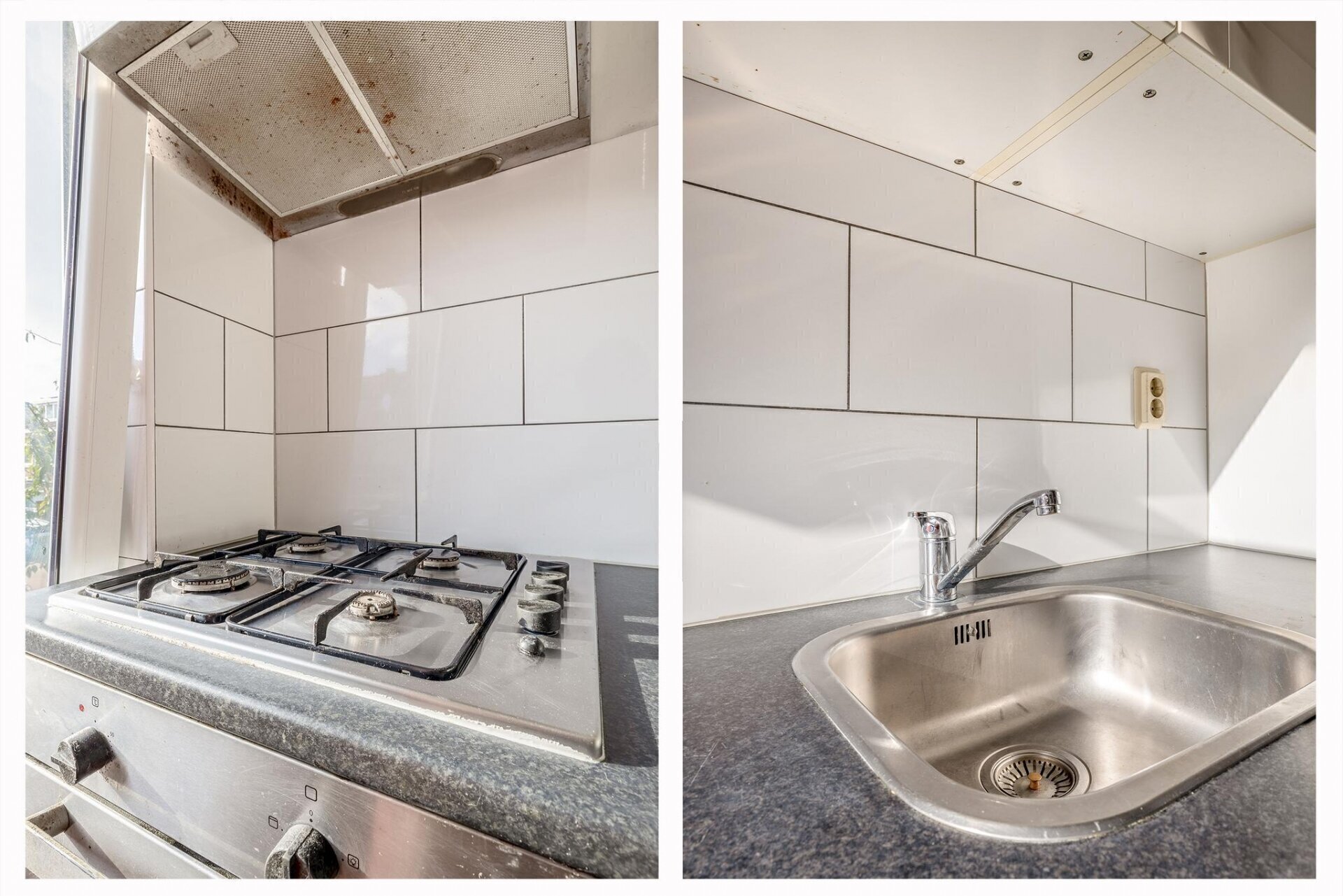 Open portiek met trap naar de eerste etage; entree van de woning middels hal met vaste kast en meterkast; toilet; woonkamer met suiteseparatie en 2 vaste kasten; slaapkamer met vaste kast en toegang tot het achterbalkon; keuken met koel-/vriescombinatie, gaskookplaat, oven, afzuigkap, wasmachine-aansluiting en opstelplaats c.v.-ketel; badkamer met wastafel en douche.