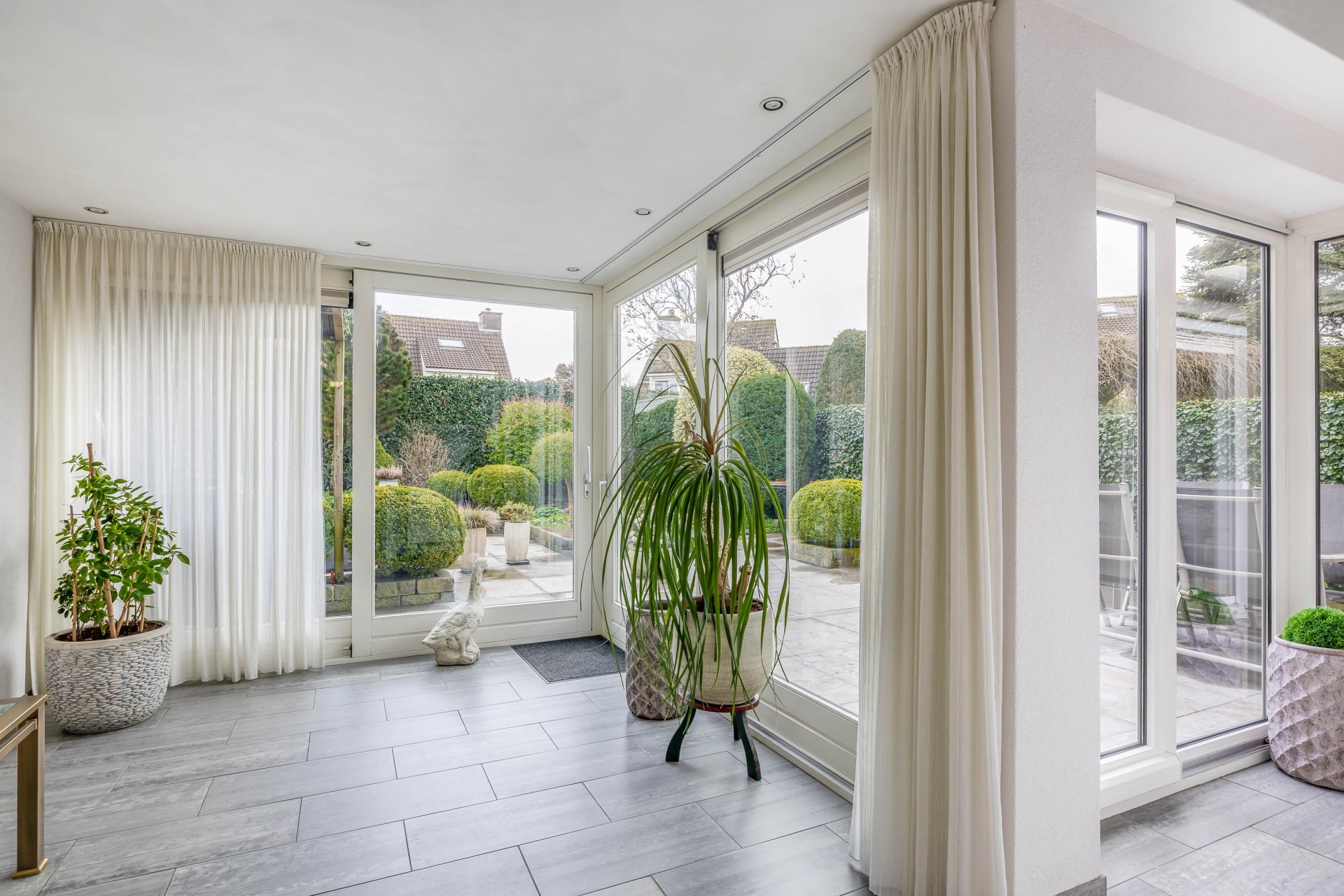 De serre is aangebouwd en een heerlijke plek om te ontspannen. De beide schuifdeuren kunnen open waardoor je deze ruimte helemaal bij de tuin kunt betrekken. Dit is ook een ideale plek als speelkamer voor de kinderen!
