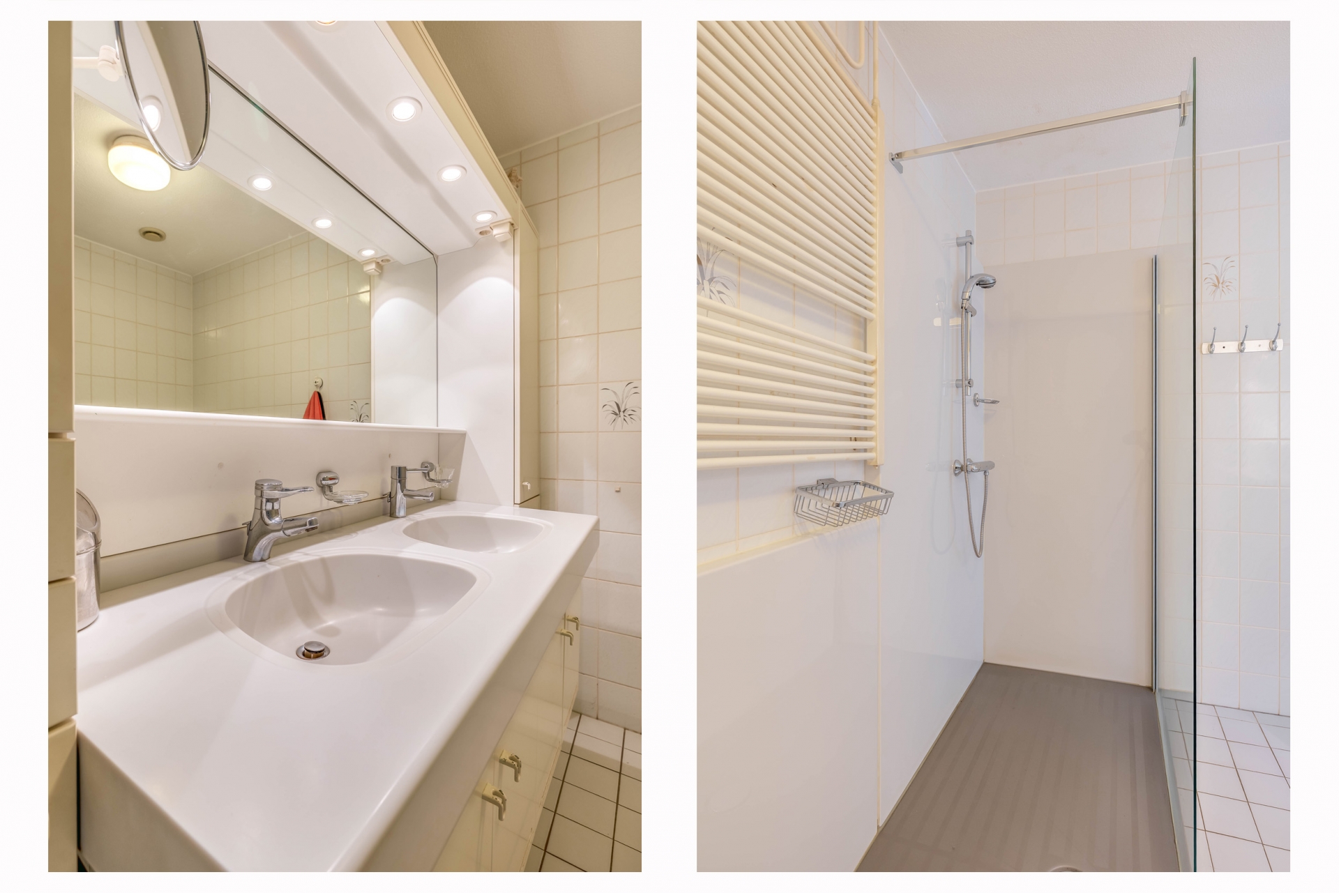 De badkamer is ruim opgezet en voorzien van een dubbele wastafel en een inloopdouche. Alles is netjes onderhouden en functioneel, met voldoende ruimte om hier eventueel een eigentijdse draai aan te geven. De tweede verdieping biedt extra ruimte, bijvoorbeeld voor een vierde slaapkamer of een combinatie van werken en opbergen. Dankzij de kapconstructie voelt deze verdieping ruim aan.