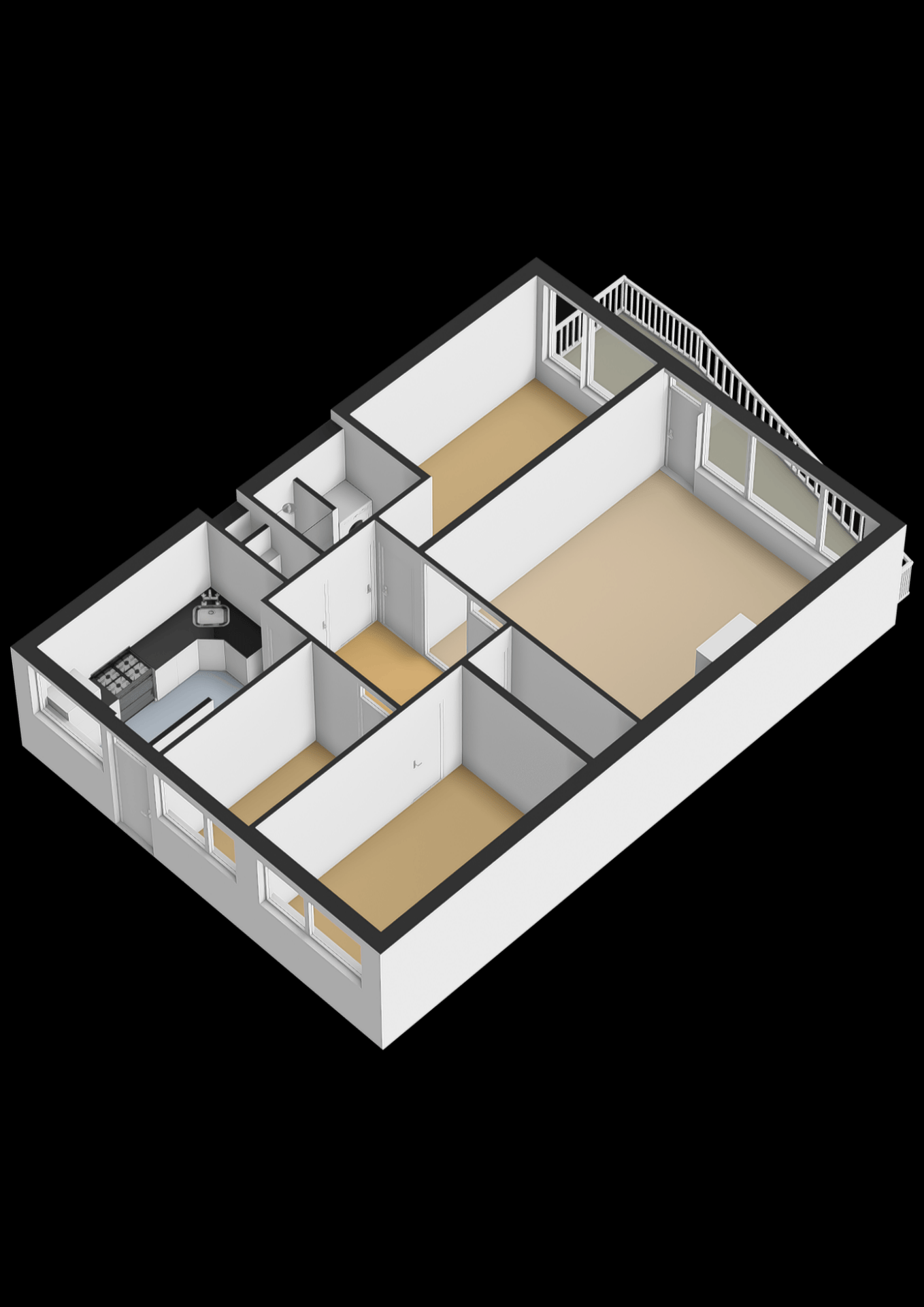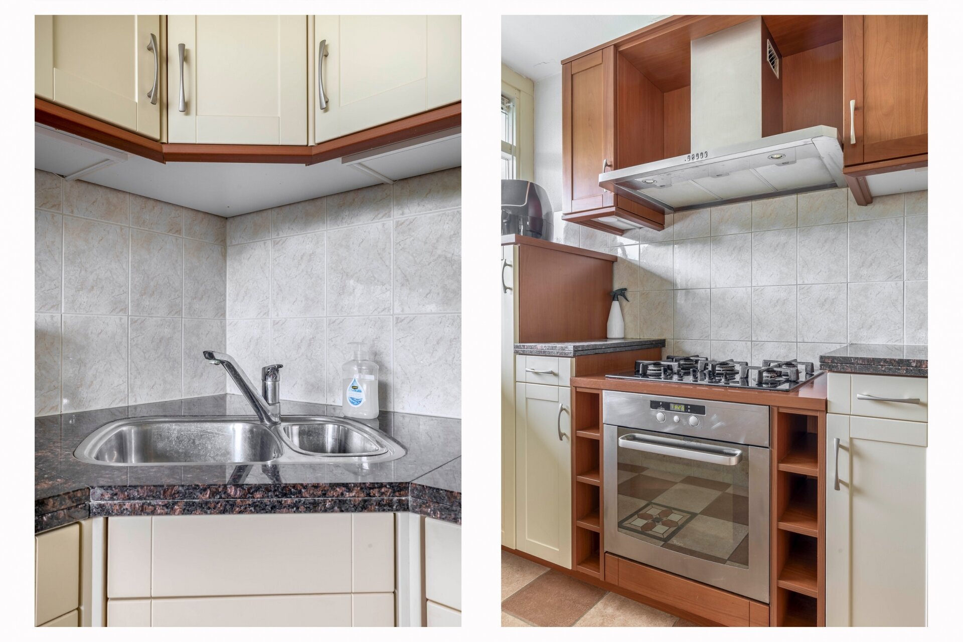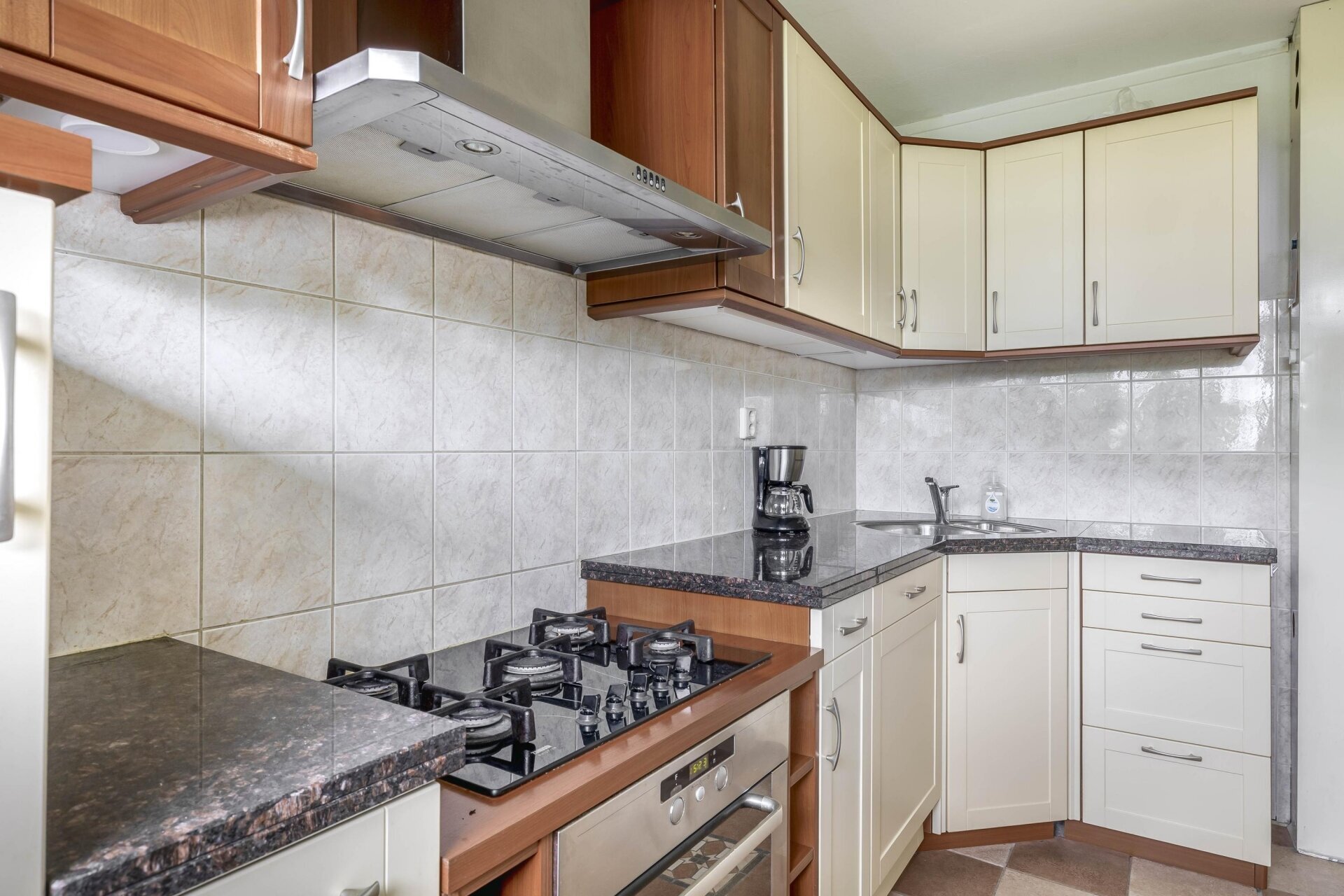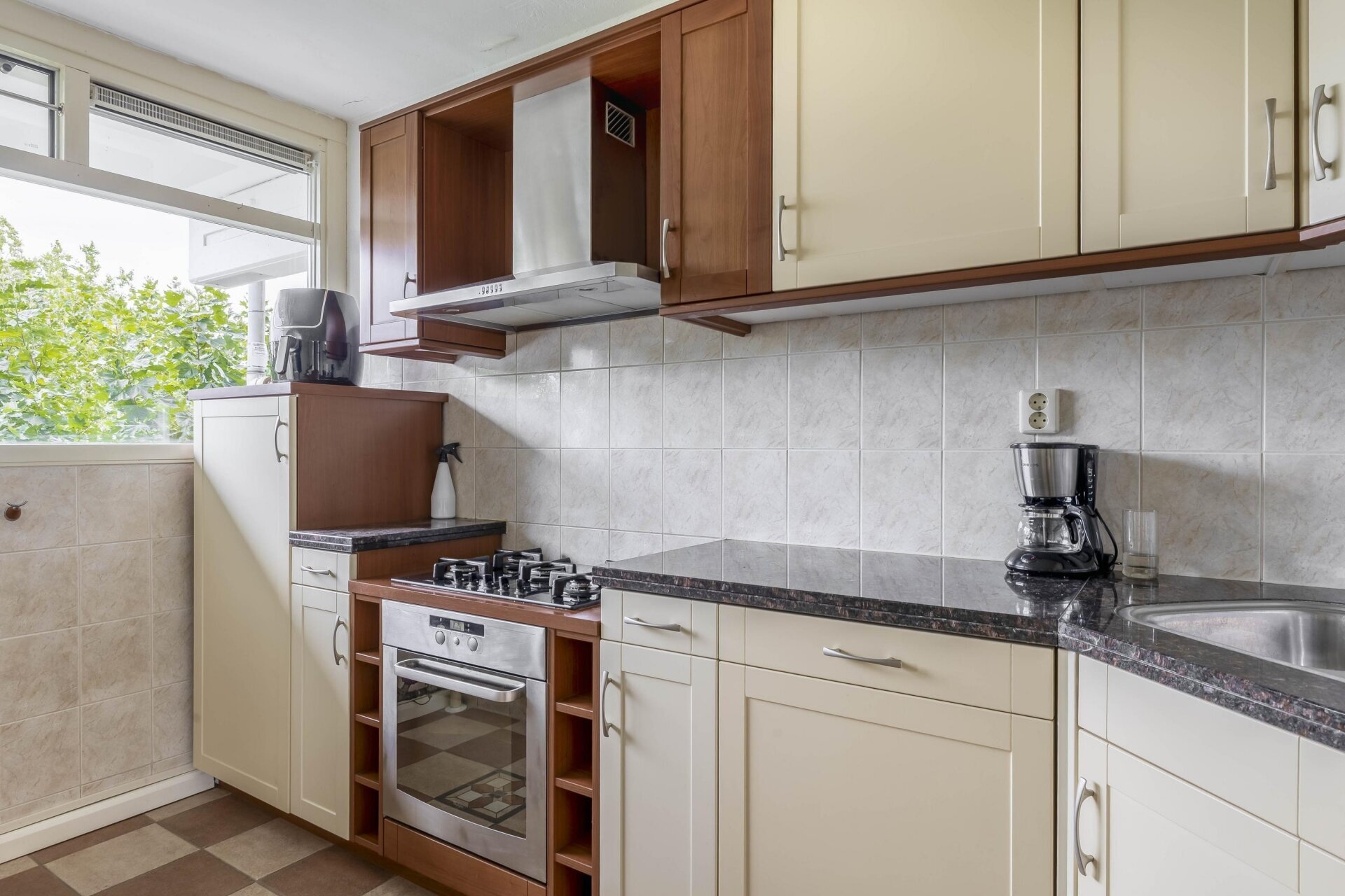 Het appartement zelf is netjes afgewerkt en beschikt over een dichte keuken in hoekopstelling, voorzien van diverse inbouwapparatuur. De badkamer is praktisch ingericht met een douche, wastafel en een wasmachineaansluiting. Dankzij de slimme indeling profiteer je van veel lichtinval en prettige leefruimtes, waaronder een ruime woonkamer en drie goed bemeten slaapkamers.