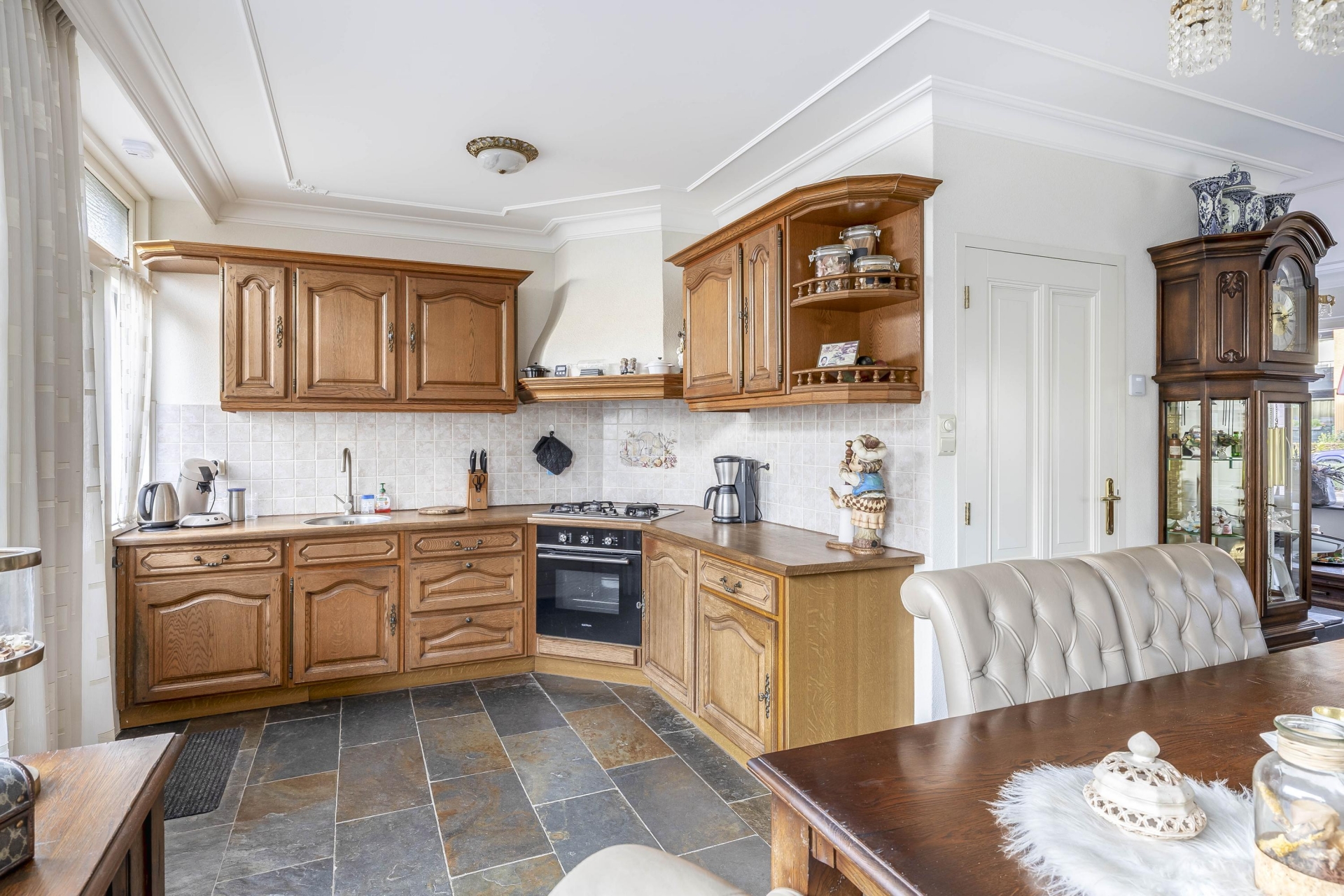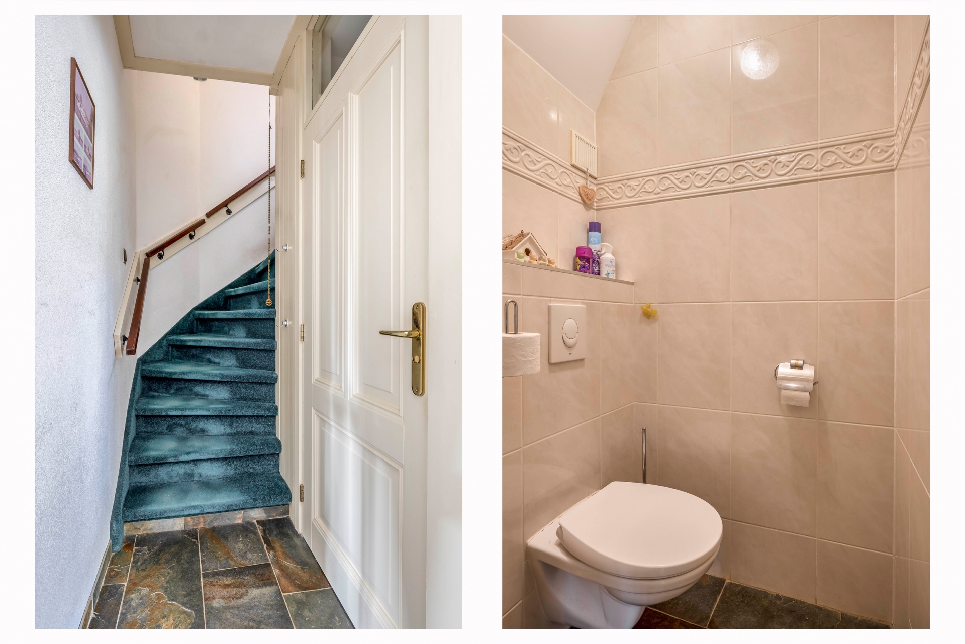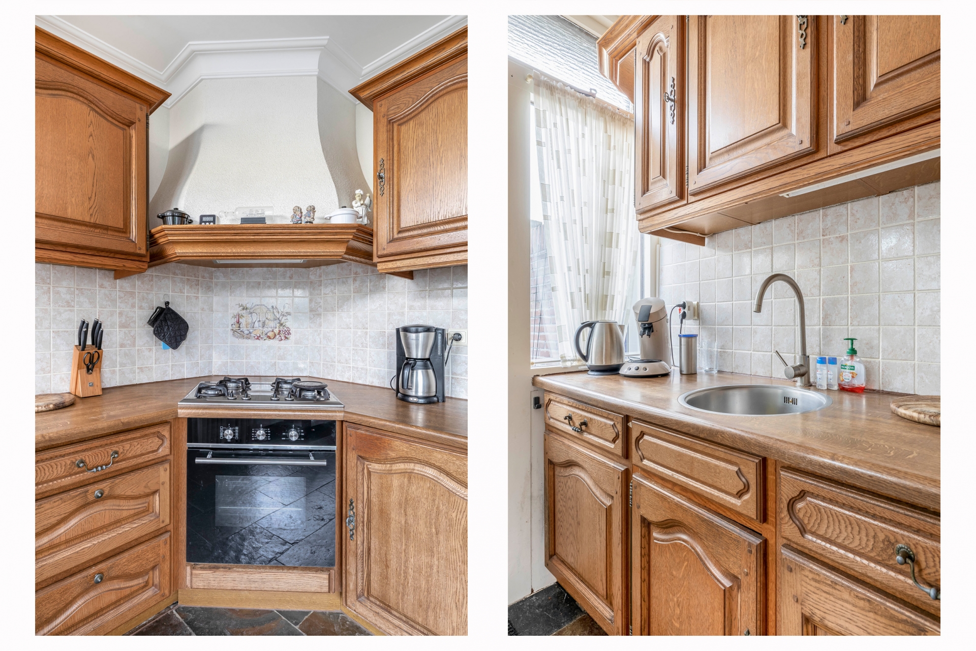 Zodra je binnenkomt, valt het licht je meteen op. Dankzij de hoekligging en grote ramen is de woonkamer heerlijk licht en voelt deze groter aan. De afwerking is wat gedateerd, maar alles is netjes onderhouden – een perfecte basis om mee aan de slag te gaan. De woonkamer loopt over in de open keuken. Deze klassieke keuken is functioneel en biedt voldoende kastruimte, maar wie zin heeft om te moderniseren kan hier iets heel eigens van maken. Op de begane grond ligt een karaktervolle natuurstenen vloer en vanuit de woonkamer kijk je uit op het groen van de zij- en achtertuin.