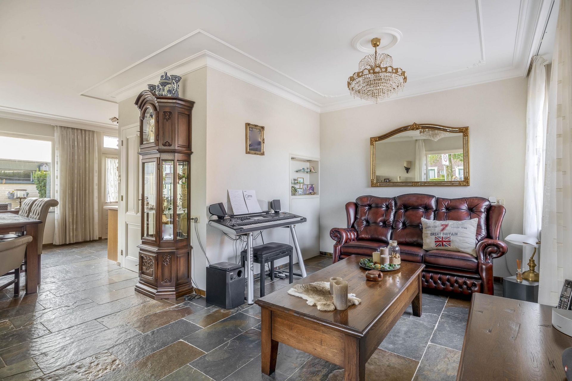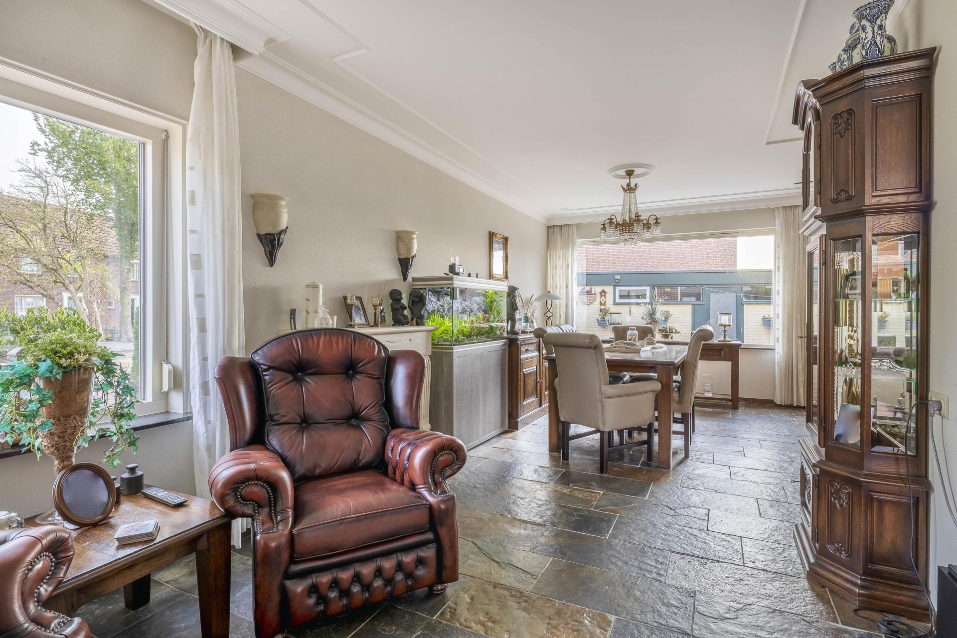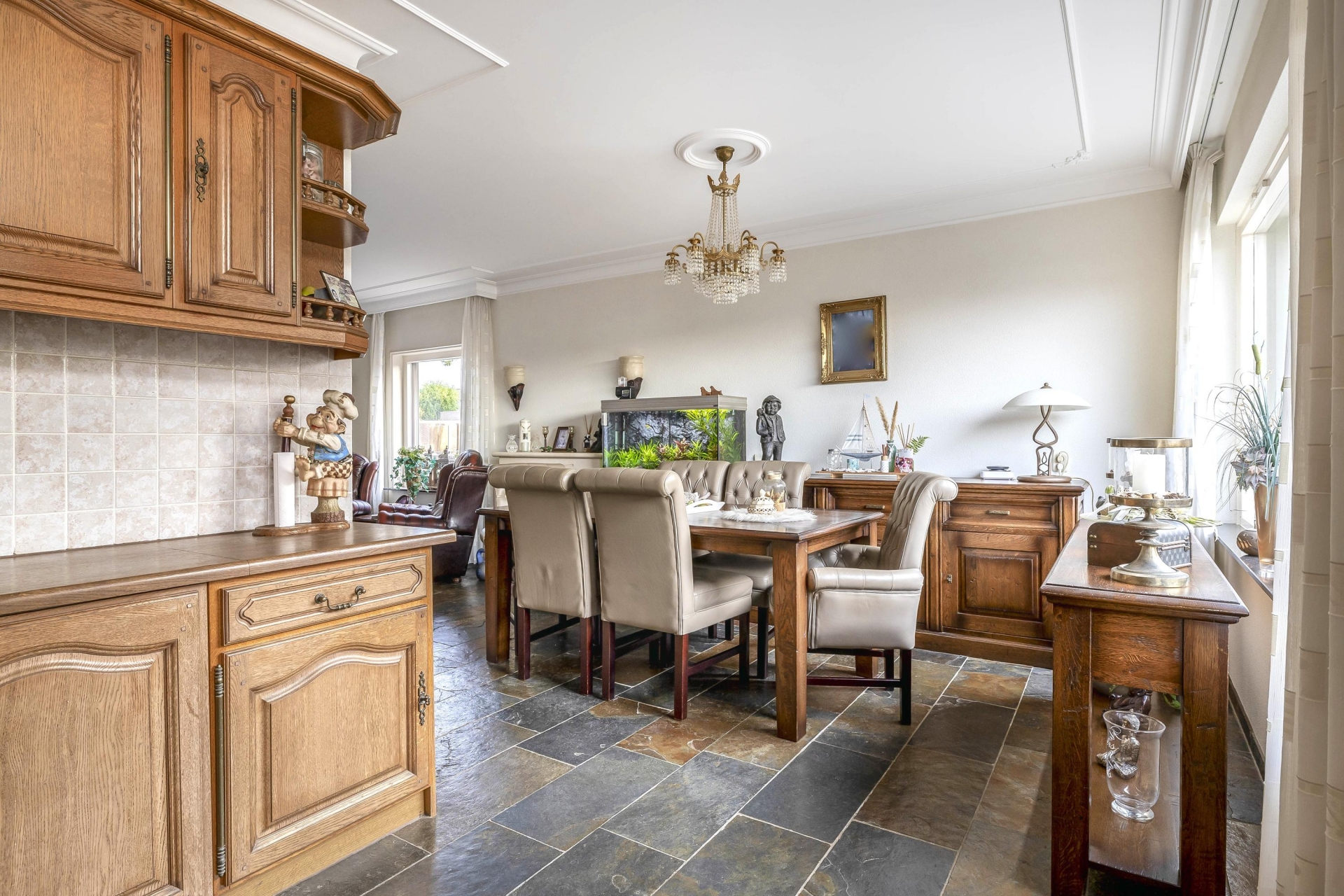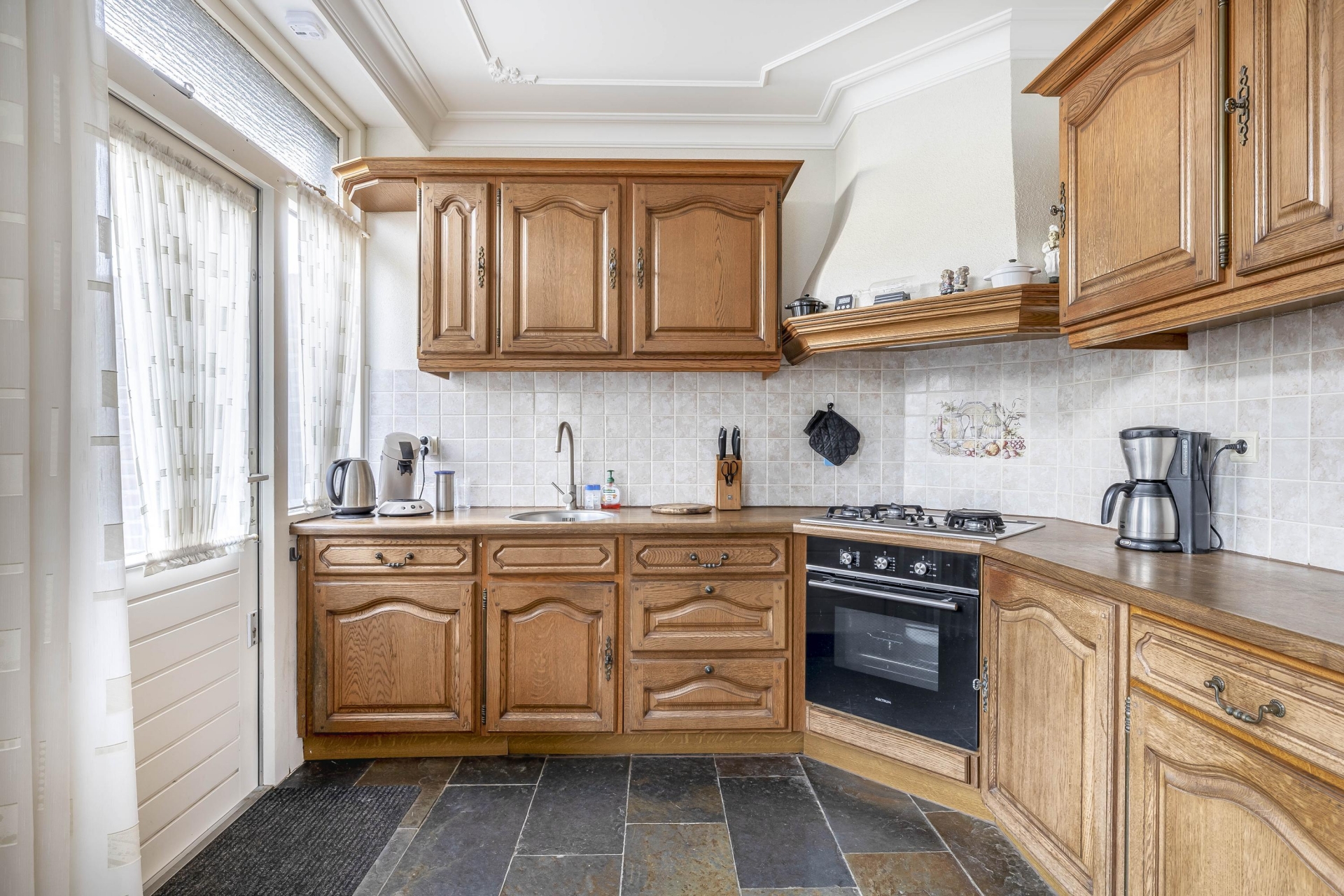 Zodra je binnenkomt, valt het licht je meteen op. Dankzij de hoekligging en grote ramen is de woonkamer heerlijk licht en voelt deze groter aan. De afwerking is wat gedateerd, maar alles is netjes onderhouden – een perfecte basis om mee aan de slag te gaan. De woonkamer loopt over in de open keuken. Deze klassieke keuken is functioneel en biedt voldoende kastruimte, maar wie zin heeft om te moderniseren kan hier iets heel eigens van maken. Op de begane grond ligt een karaktervolle natuurstenen vloer en vanuit de woonkamer kijk je uit op het groen van de zij- en achtertuin.